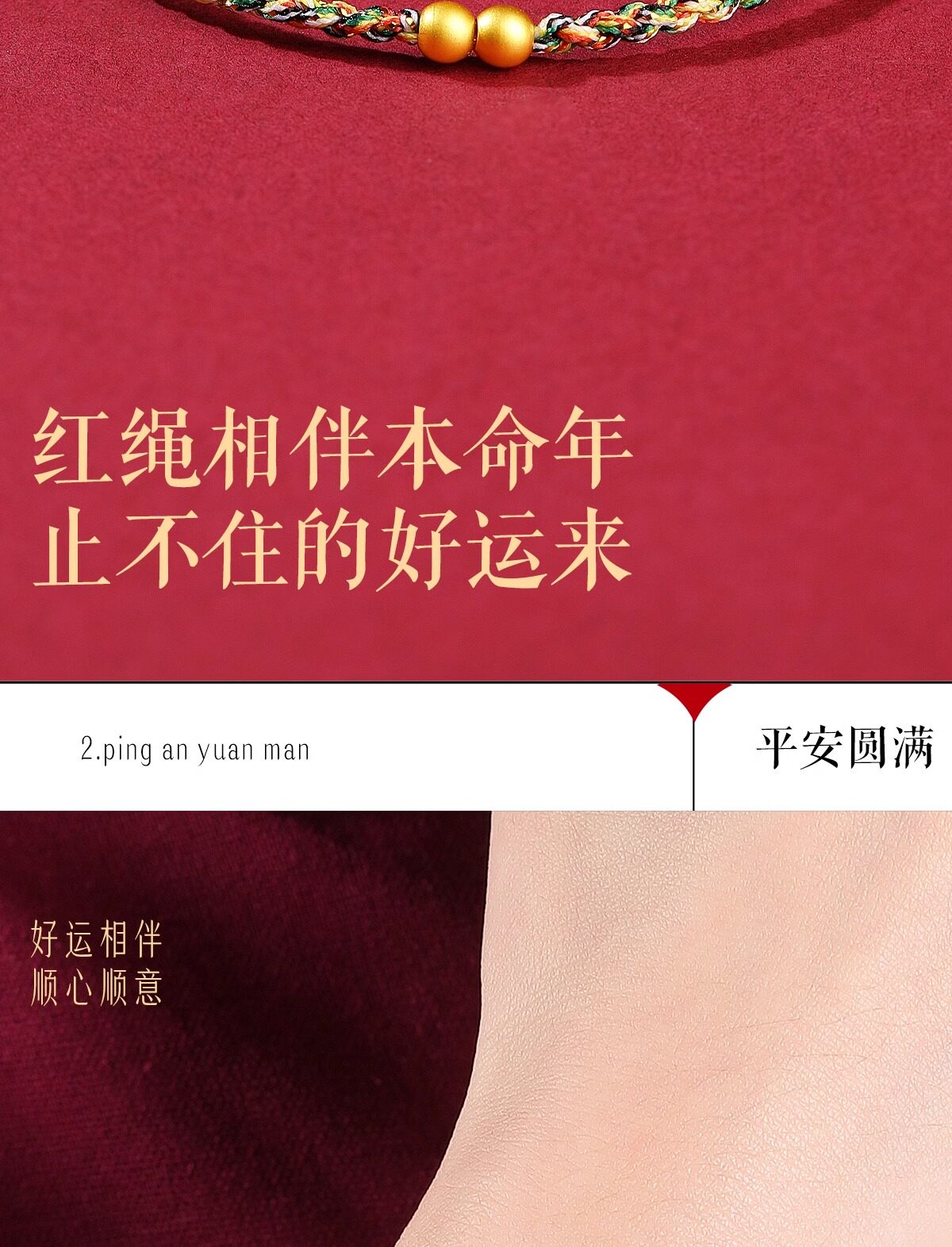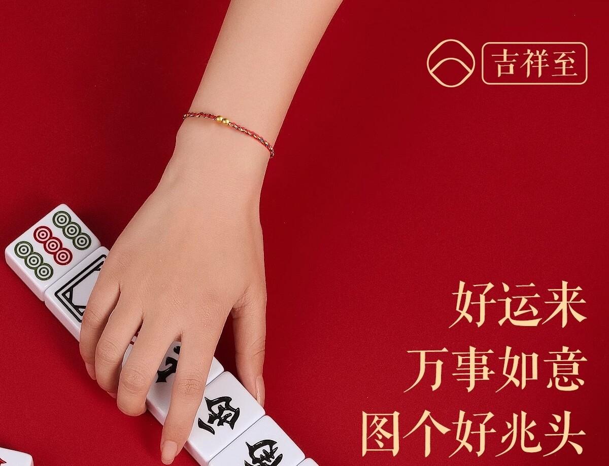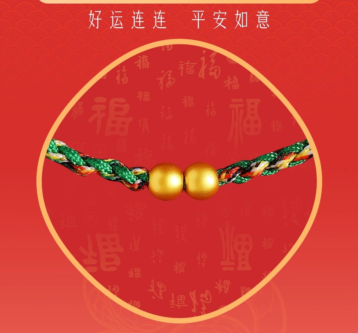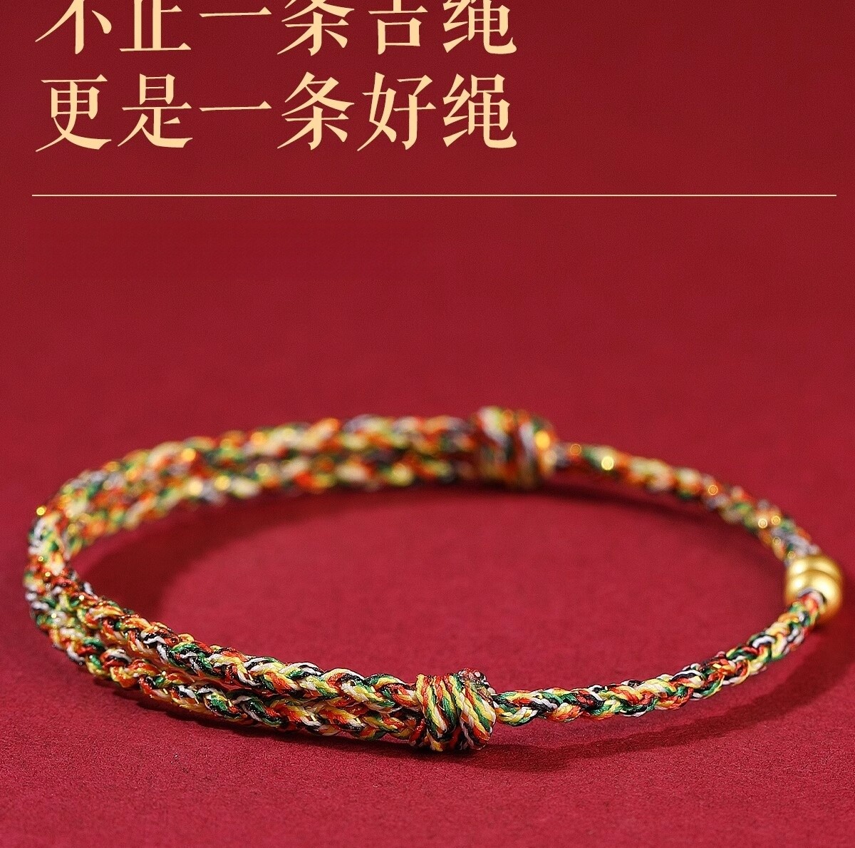 Putuo Mountain 2026 Year of the Horse 999 Pure Gold Red String Bracelet for Women with Gold Fortune Beads and Green Woven Cord