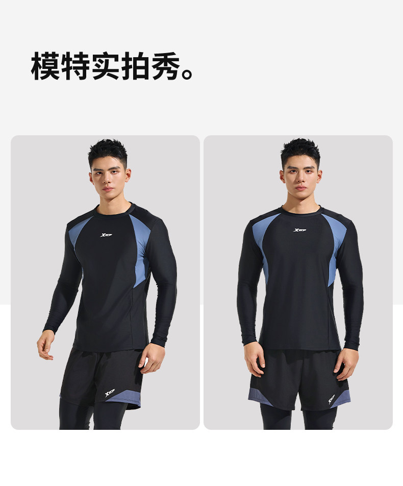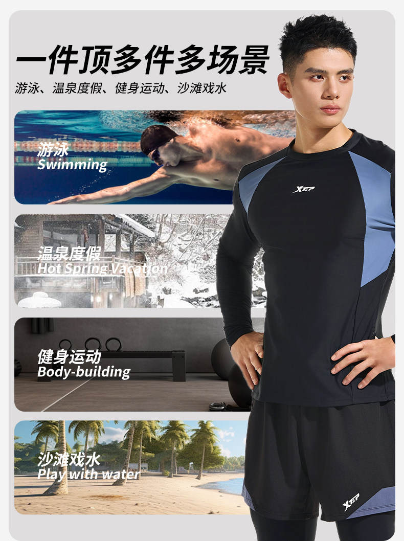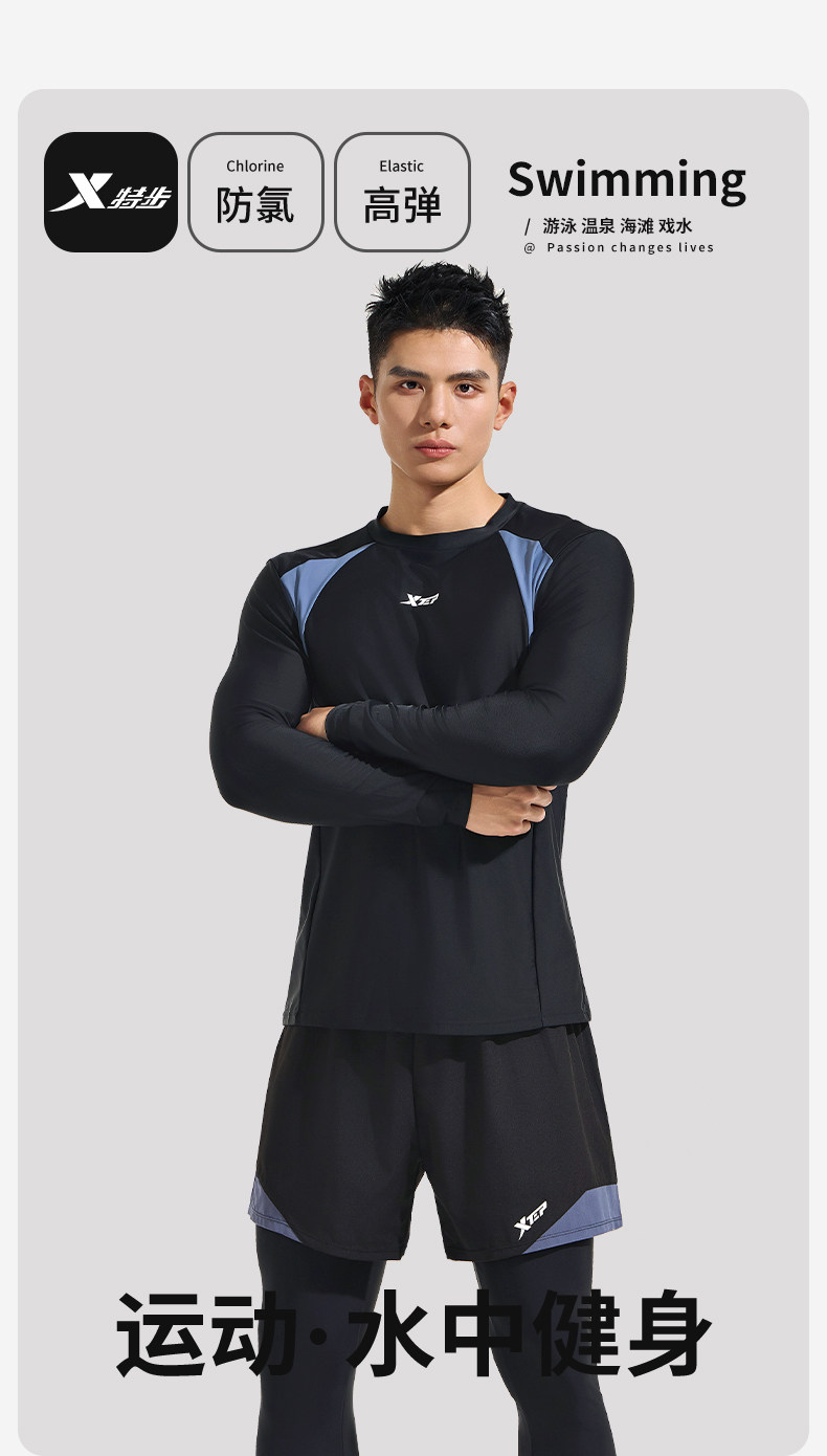 Xtep Men's Swimsuit for Hot Springs, Long-Sleeved Long Pants Set, Adult Rash Guard, Men's Sun Protection Swimwear, Swimming Top