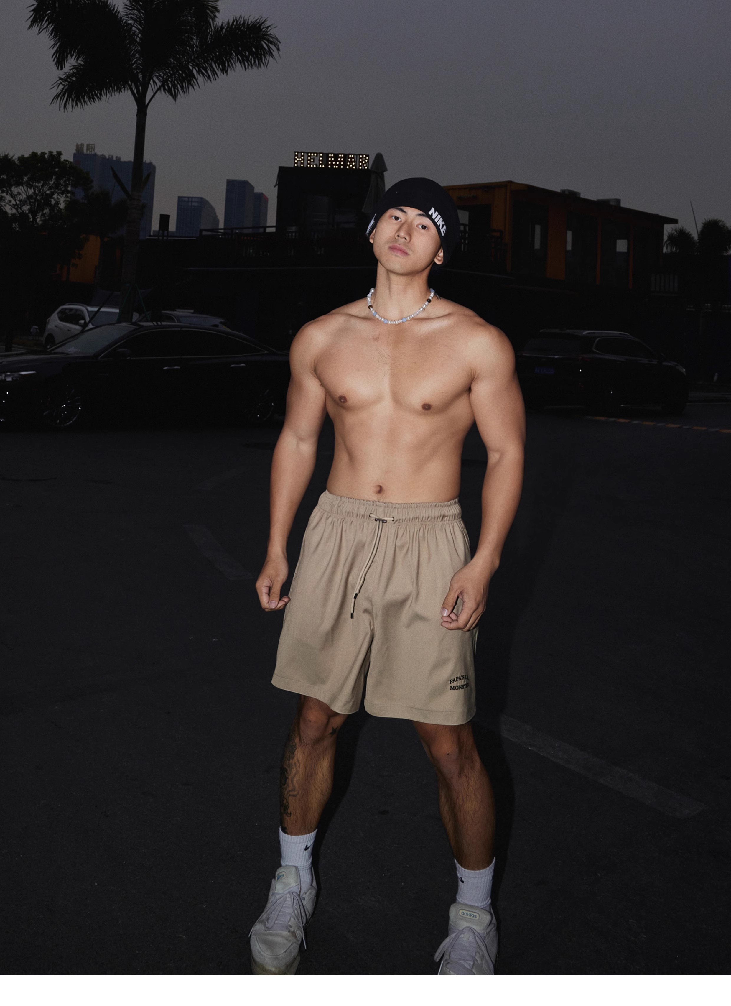 Papaslilmonster【Original】American Retro Logo Embroidered Sports Shorts Monsters, Let's Go!