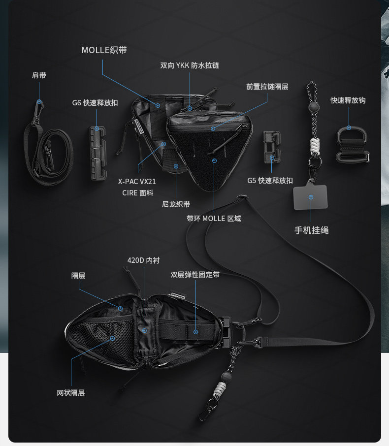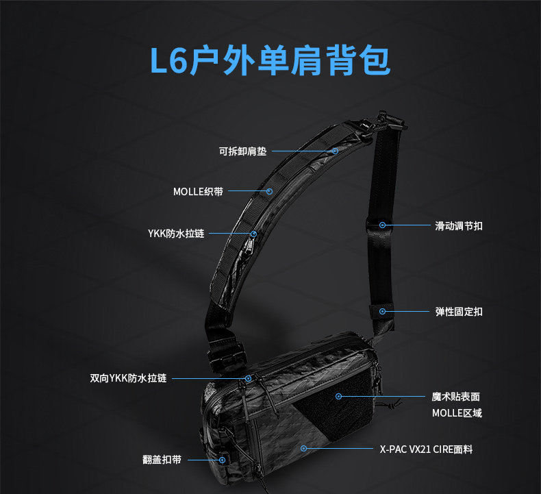 Tactical Geek K.Sys Functional Quick-Release Buckle Magnetic Buckle Multi-Functional Single Shoulder Crossbody Men's Chest Bag Commuter Shoulder Bag
