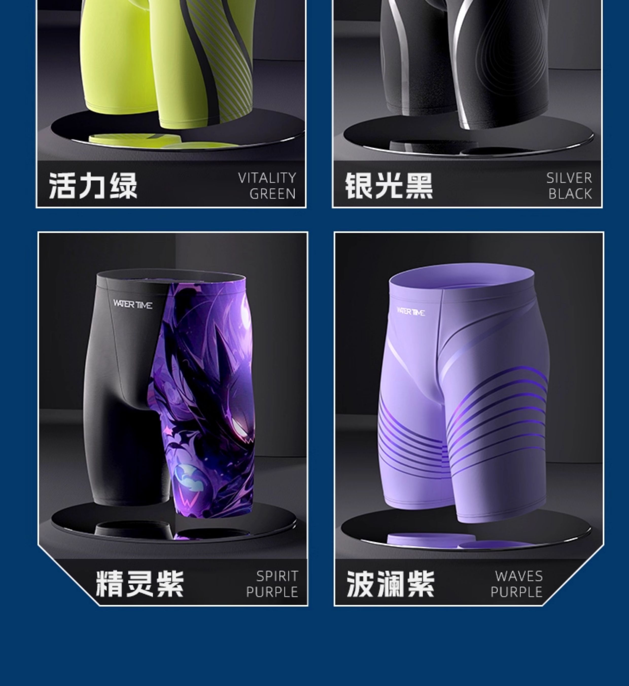 Watertime Men's Professional Racing Swim Trunks, Knee-Length, Quick-Drying, High-Elasticity, Anti-Embarrassment, 2025 New Model