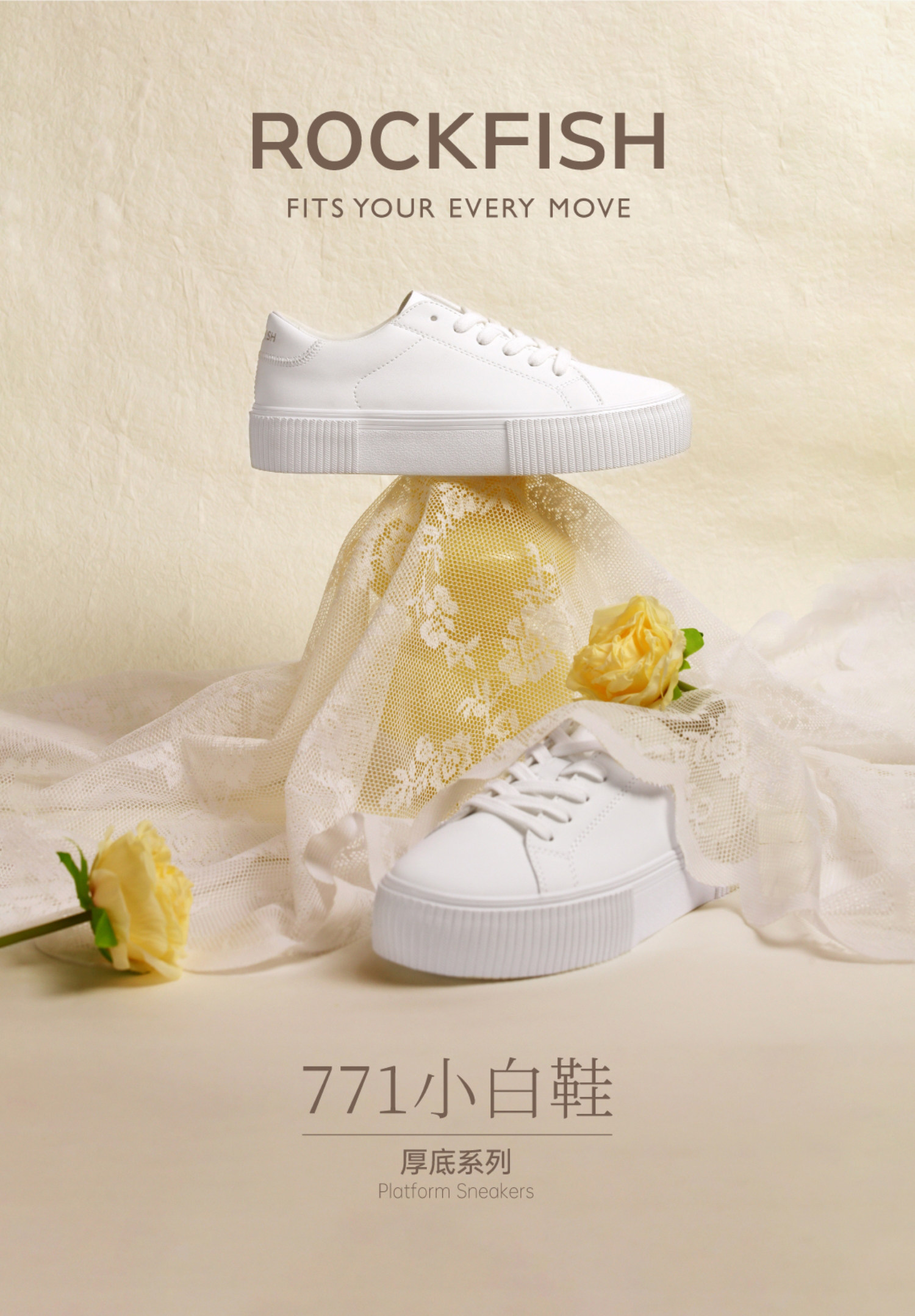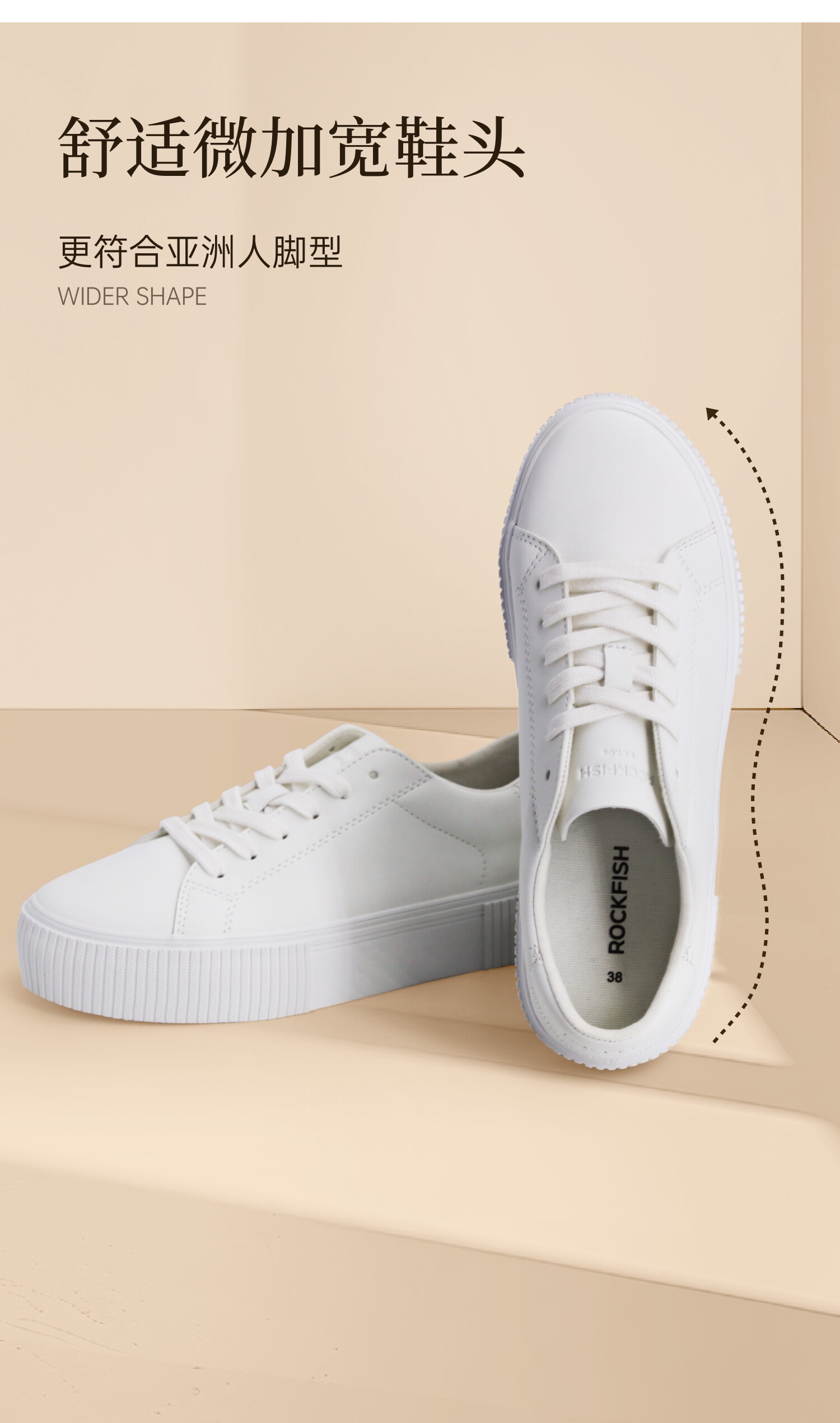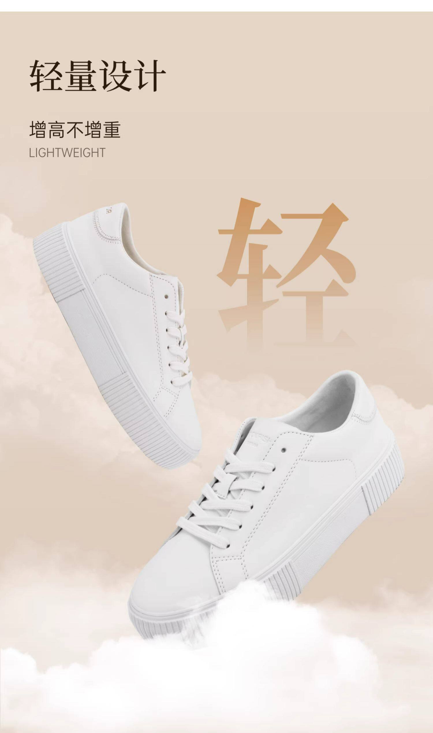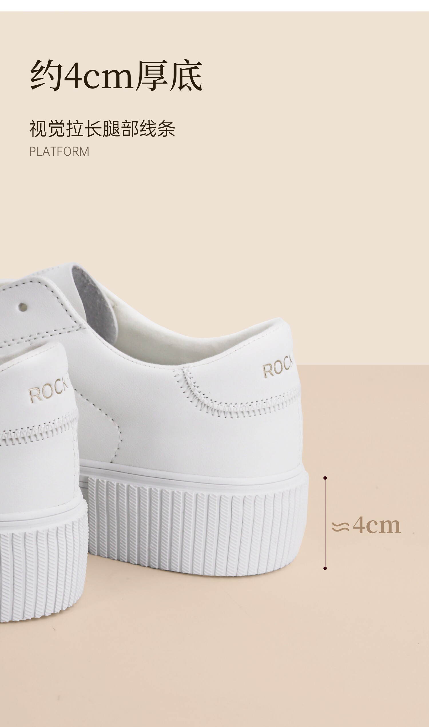 Rockfish Thick-Soled Height-Increasing Sneakers for Women 2025 New Casual Shoes Comfortable Breathable White Shoes Soft Biscuit Shoes