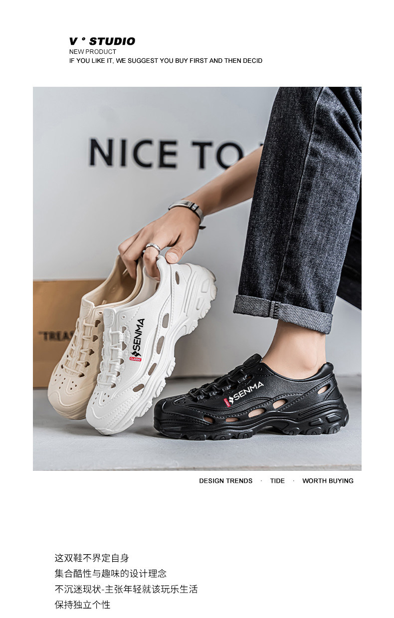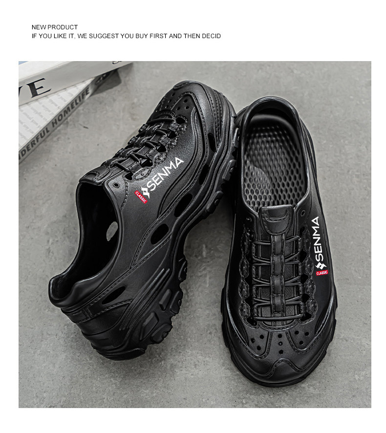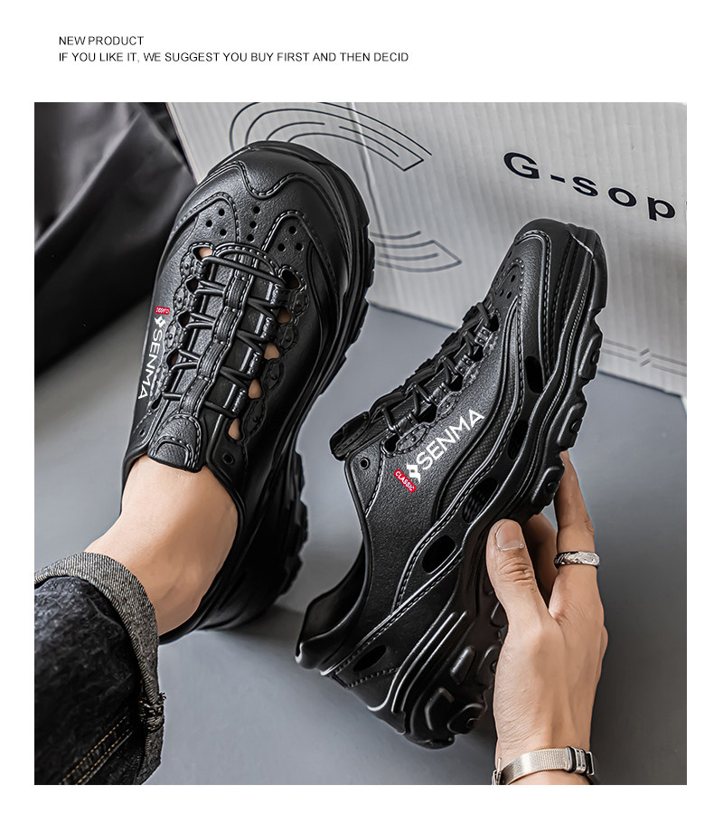 Semir Men's Summer Outdoor Clogs soft sole Thick-Soled Sports Sandals Outdoor Hollow Water-Resistant Beach Shoes