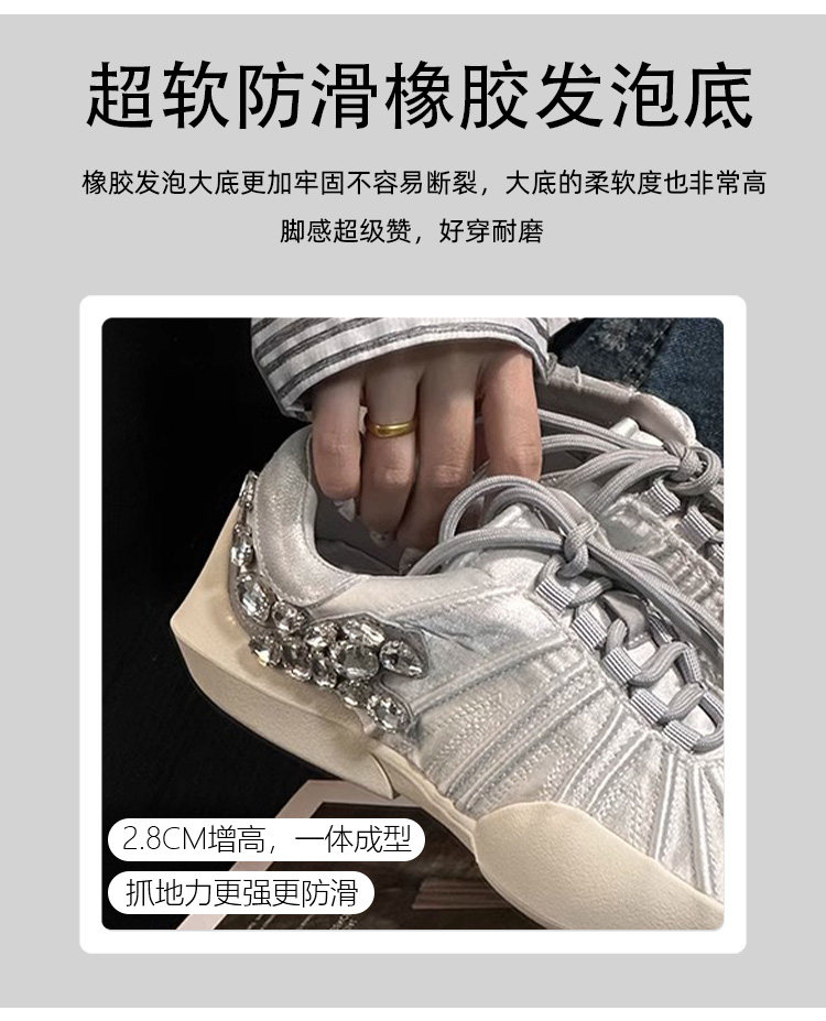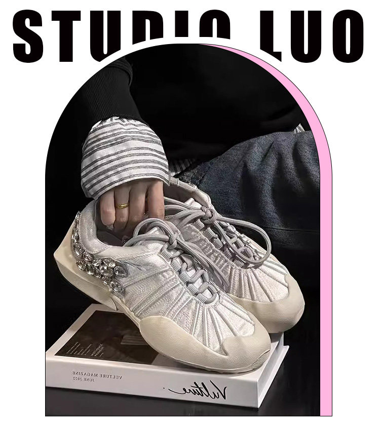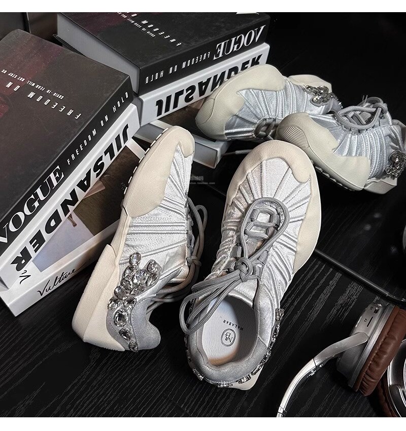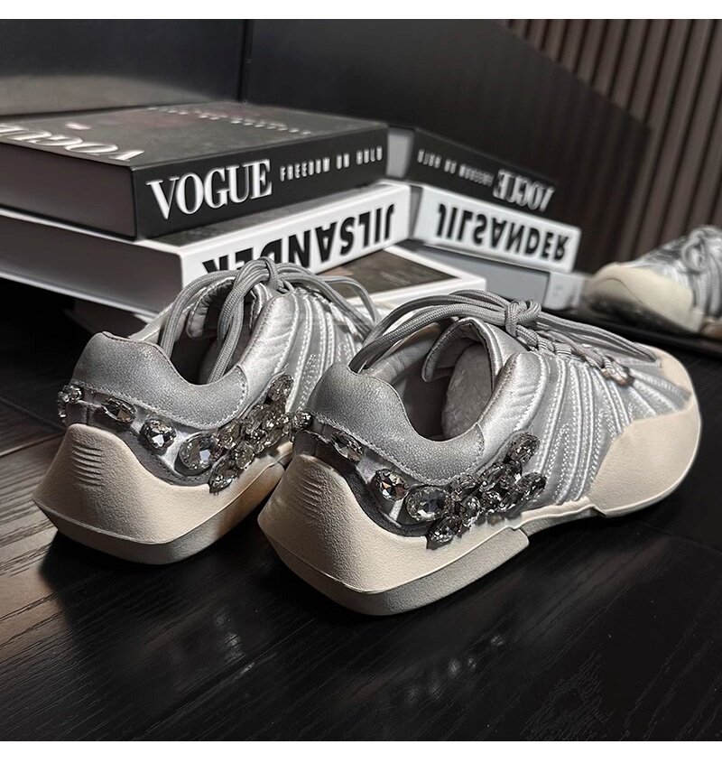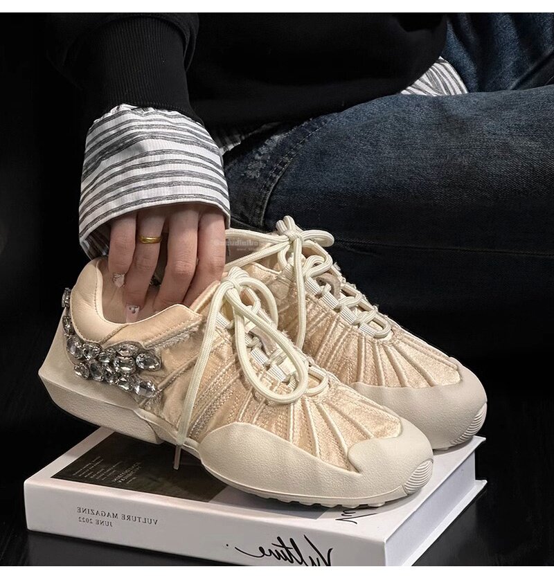 Hong Kong Rhinestone Lace-Up Flat Sneakers for Women 2026 Summer New Versatile Fashion German Training Shoes Casual Sports Shoes