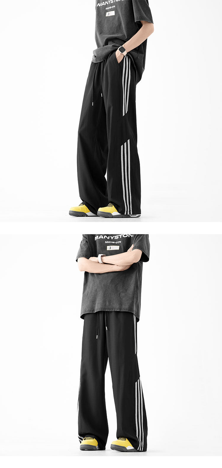 Drapey Striped Ice Silk Pants for Men and Women, Summer Plus Size Loose Fit, Youth Casual Pants, Thin Loose Paratrooper Sports Pants