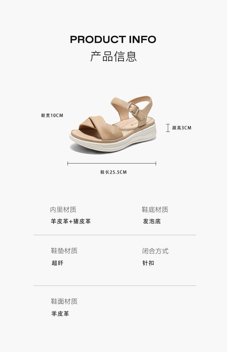 Belle Thick-Soled Casual Comfortable Women's Sandals 2025 Summer New Sheepskin Mom Shoes D6N2 D6N2Dbl5