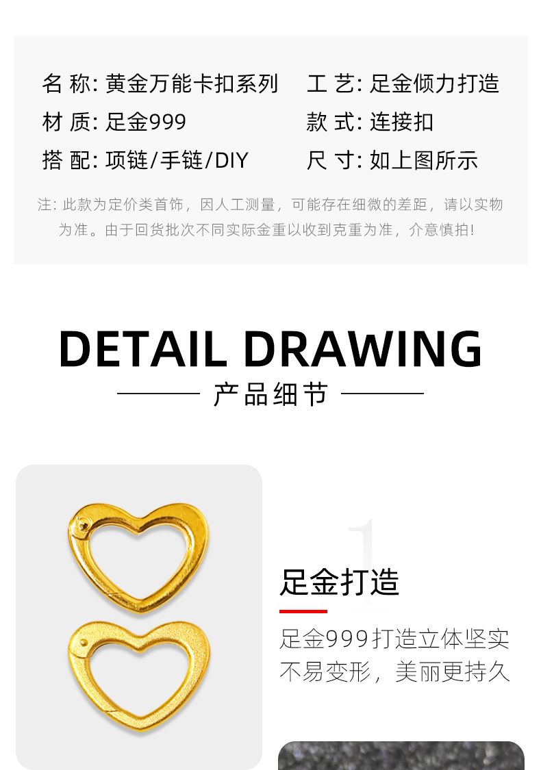 999 Gold Necklace Universal Clasp Pure Gold Pendant Connector Clasp DIY Jewelry Accessories Versatile Style