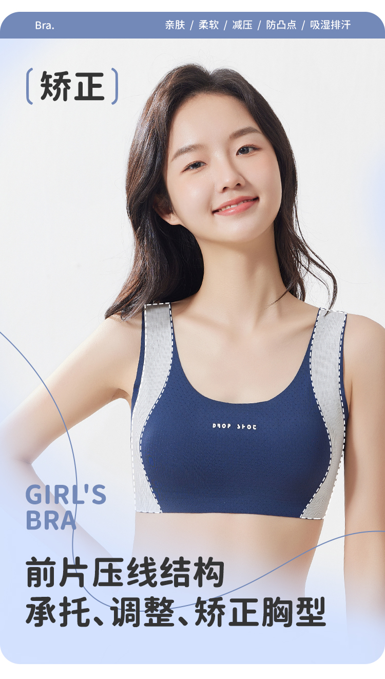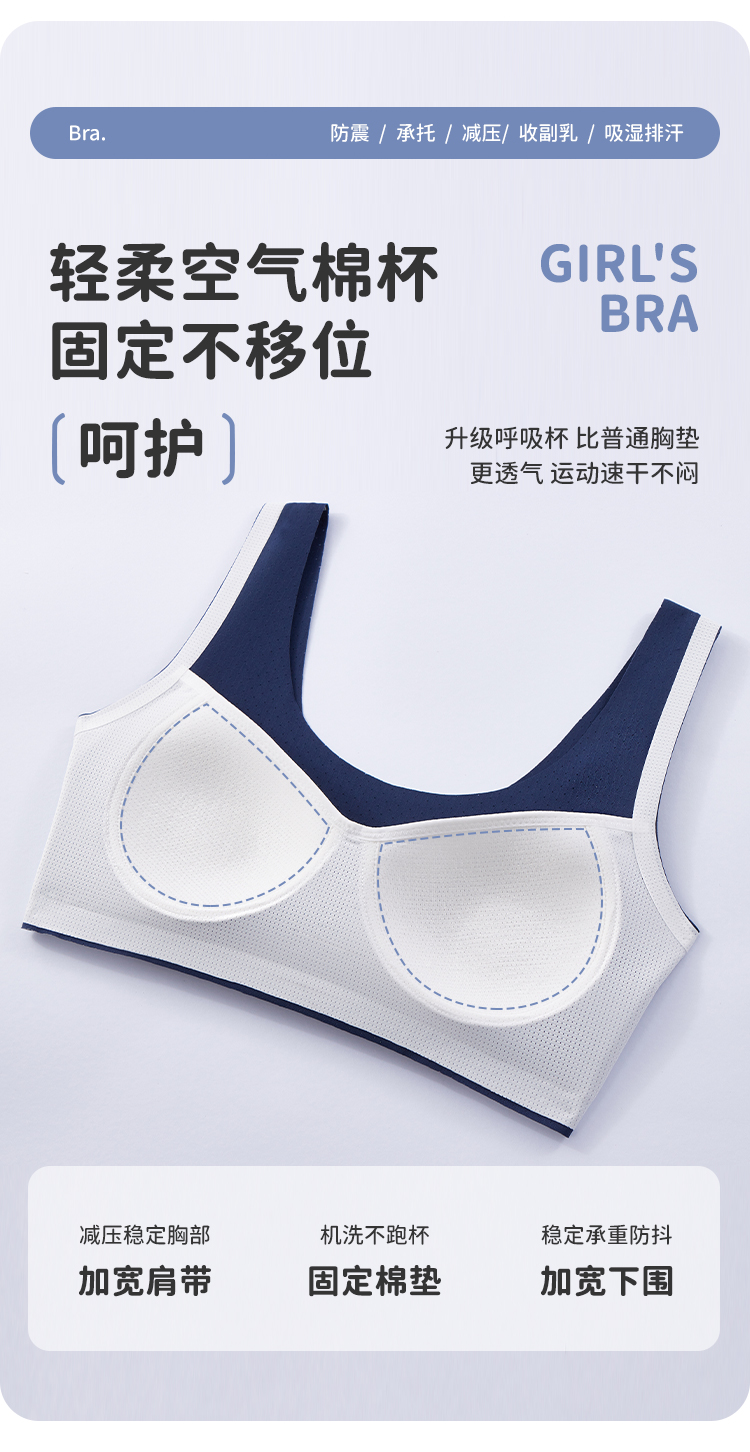 Tingmei [Silk Air Breathing Cup] Girls' Sports Shockproof Underwear for Middle School Development Period, Moisture-Wicking and Shaping