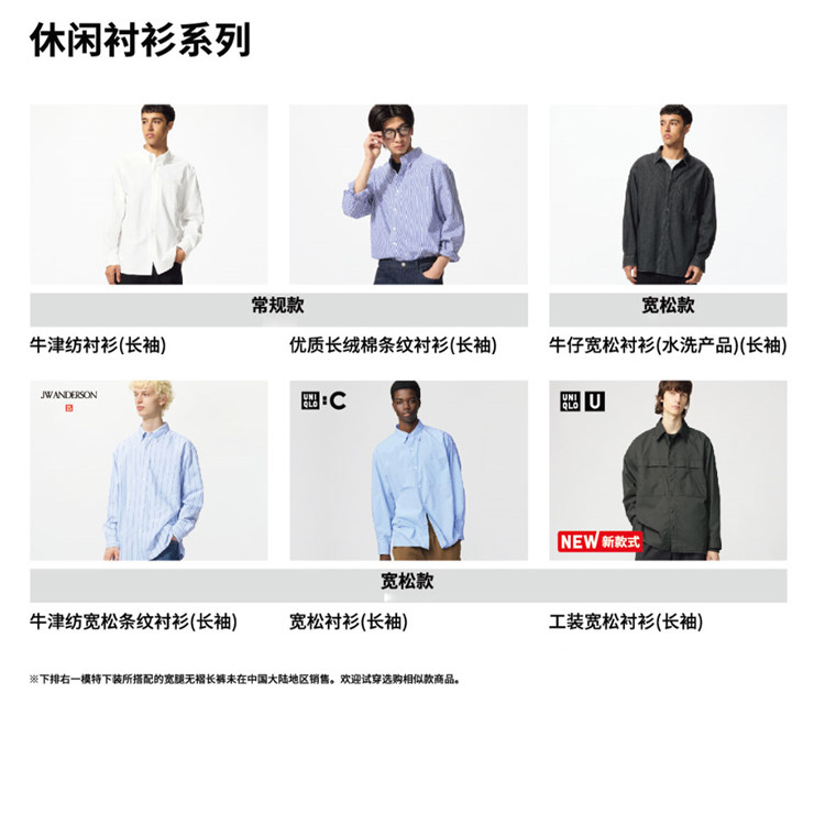 Uniqlo Men's and Women's Oxford Fabric Shirts Long-Sleeved Shirts Casual Plain Casual Commuting 478086 475998