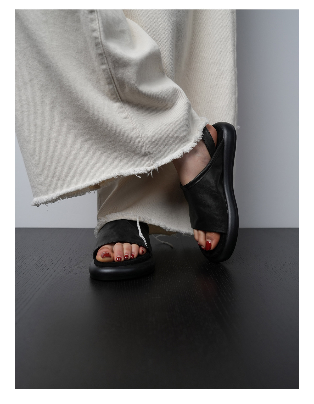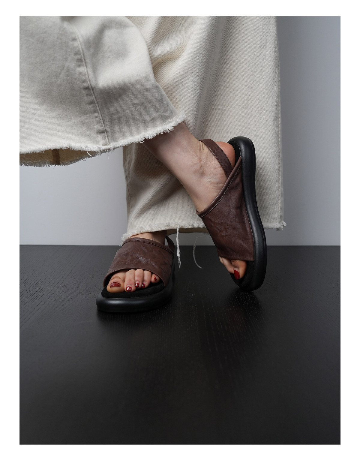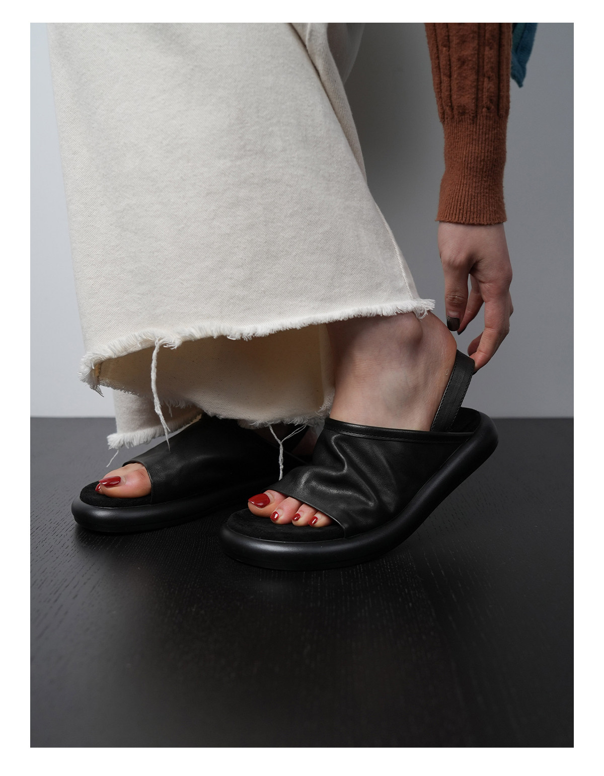 Fermina Cowhide Flat Casual Sandals for Women, Thick-Soled Summer New Style, Comfortable Open-Toe Beach Shoes for Vacation Travel