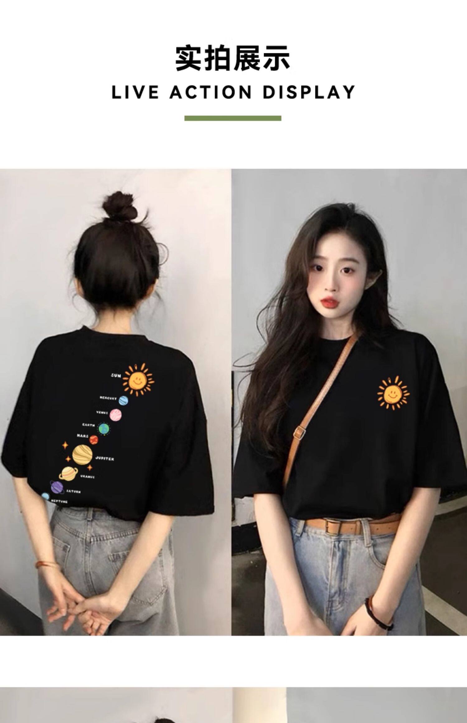 Pure Cotton Black Short-Sleeved T-Shirt for Women 2026 New Popular Summer Design Niche Top Loose Large Size T-Shirt