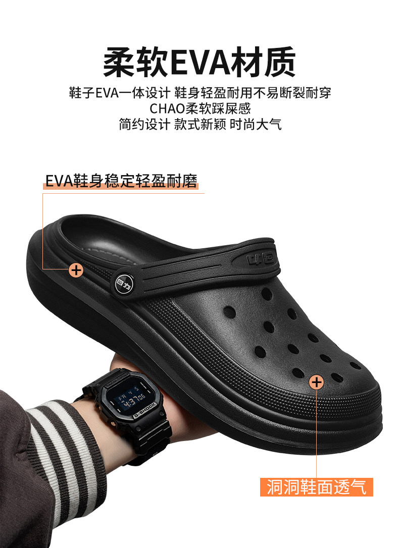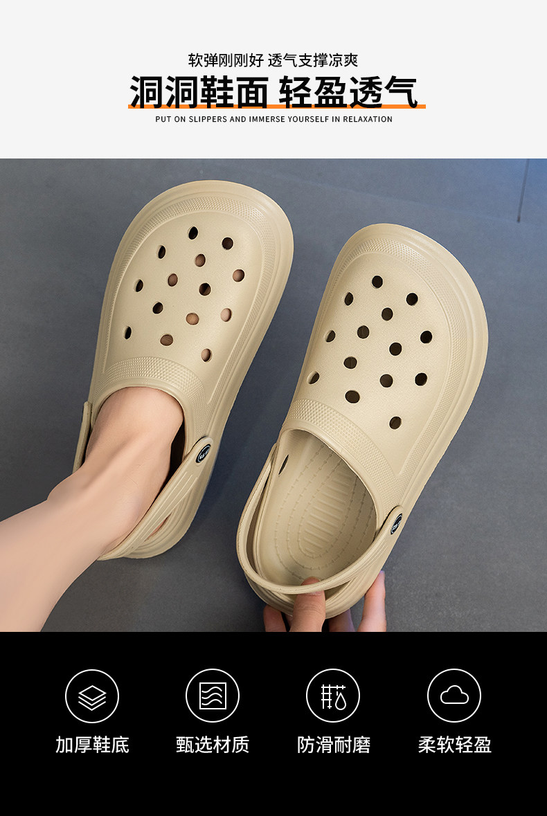 Pull-Back Clogs for Men, 2025 Summer New Style, Thick-Soled Closed-Toe Slippers for Outdoor Wear, Couple Style, Large Size Beach Shoes for Women, Summer