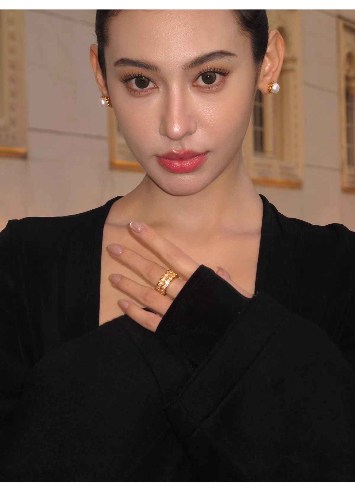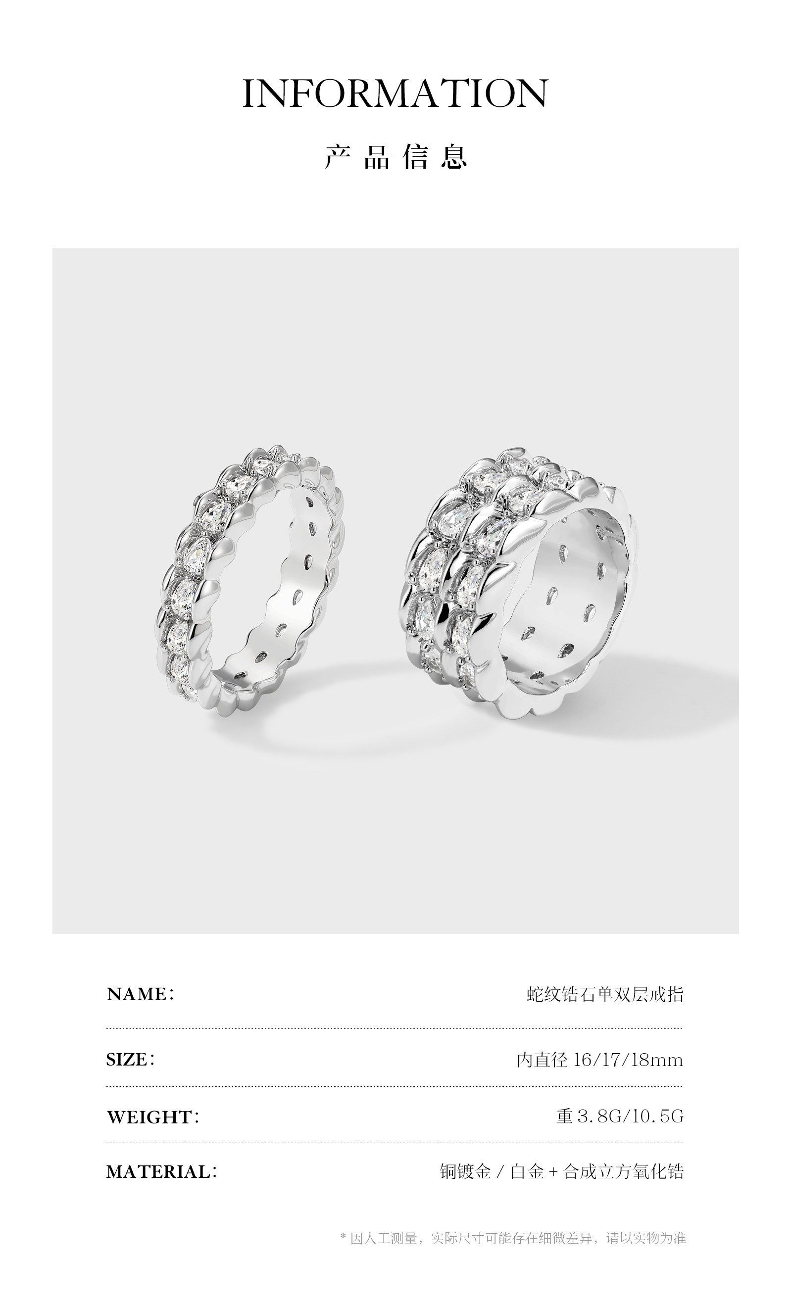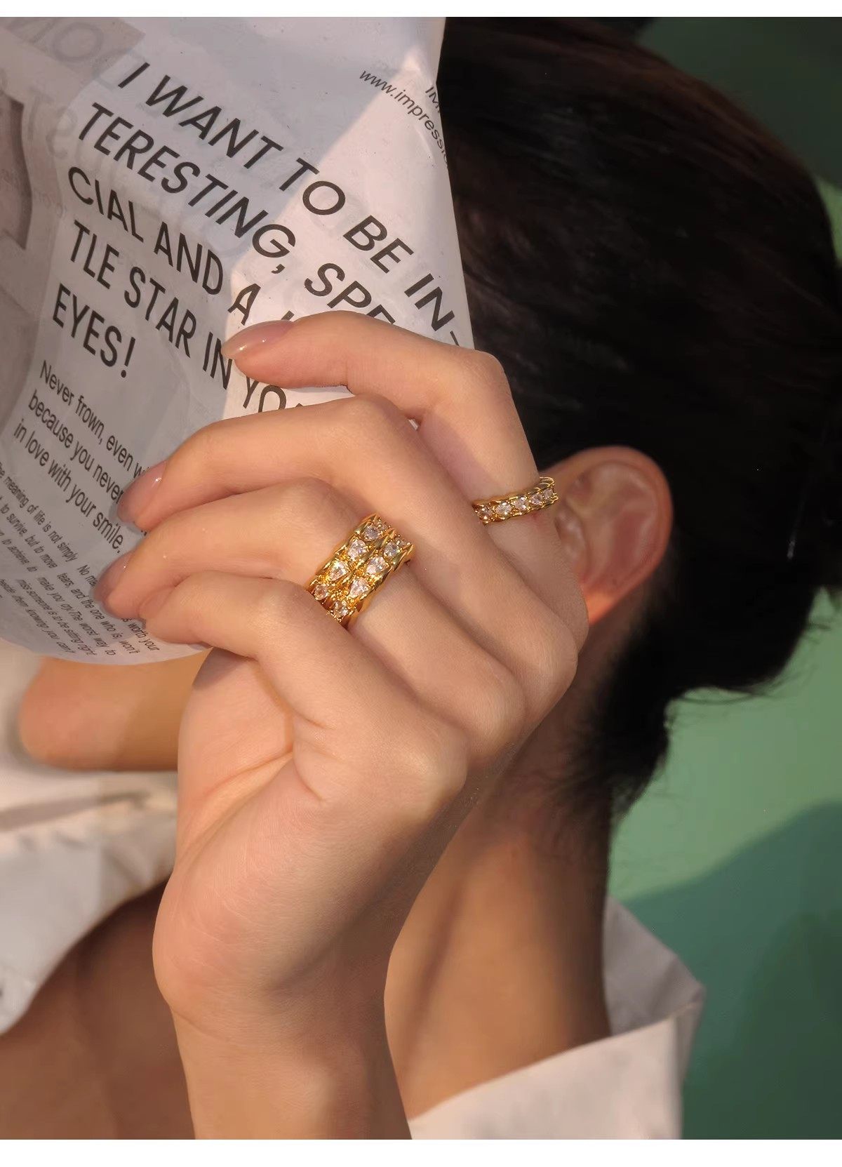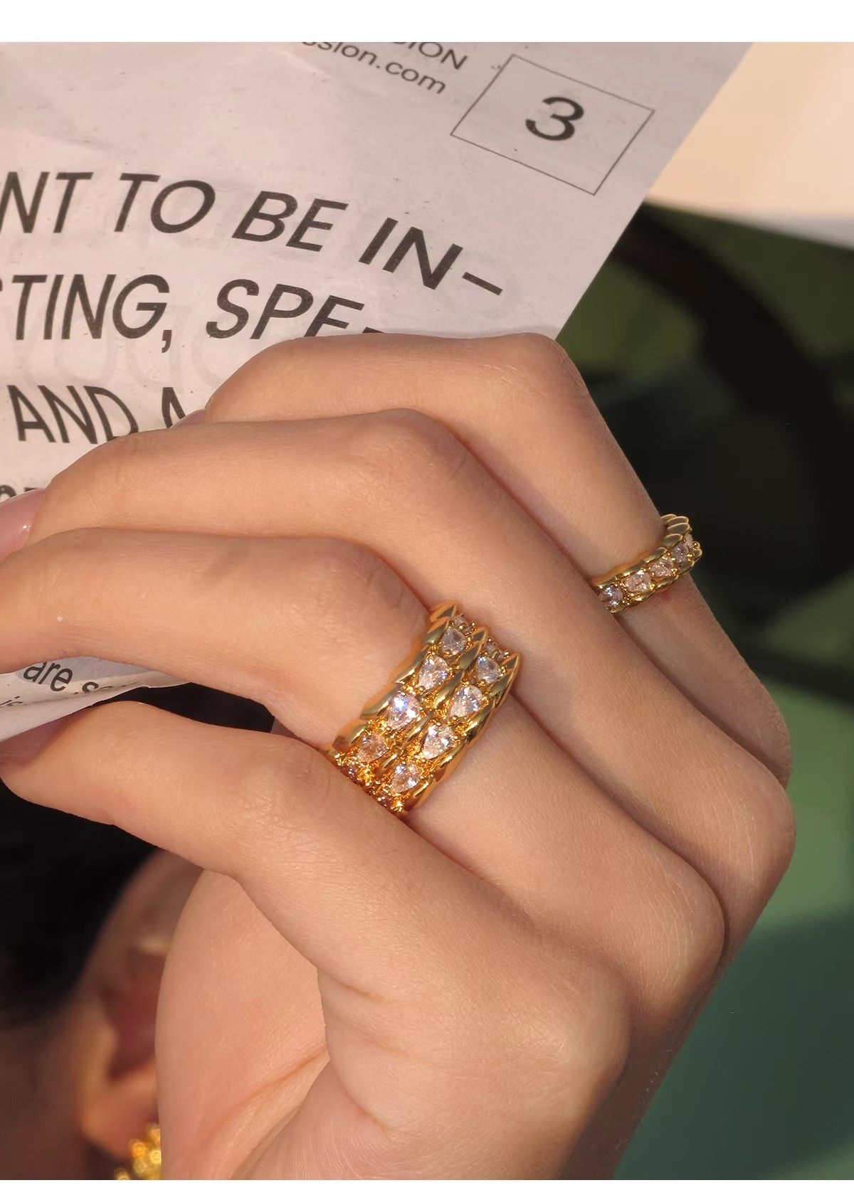 Boonee Alus Snake Pattern Zircon Ring for Women, Gold Color, Light Luxury, High-End Feel, Niche Design, Exaggerated Index Finger Ring