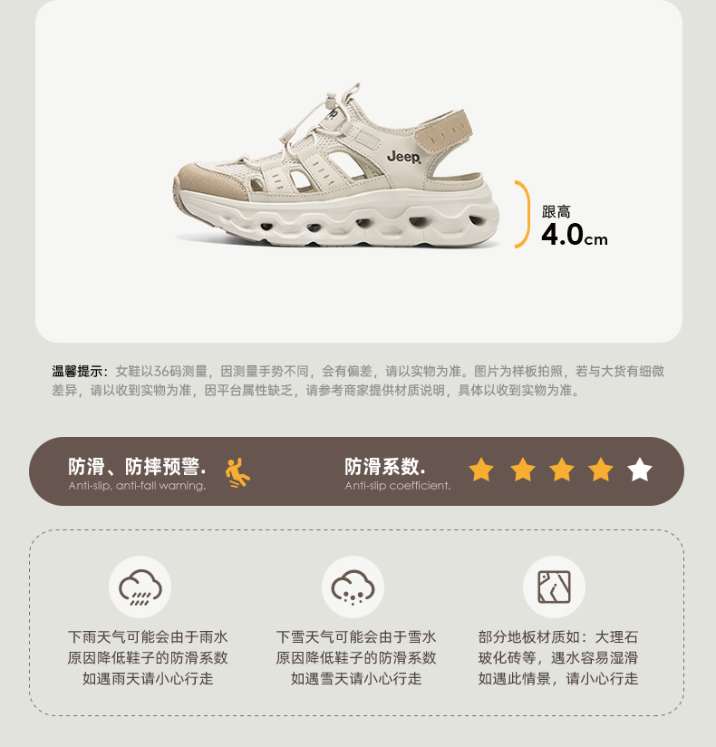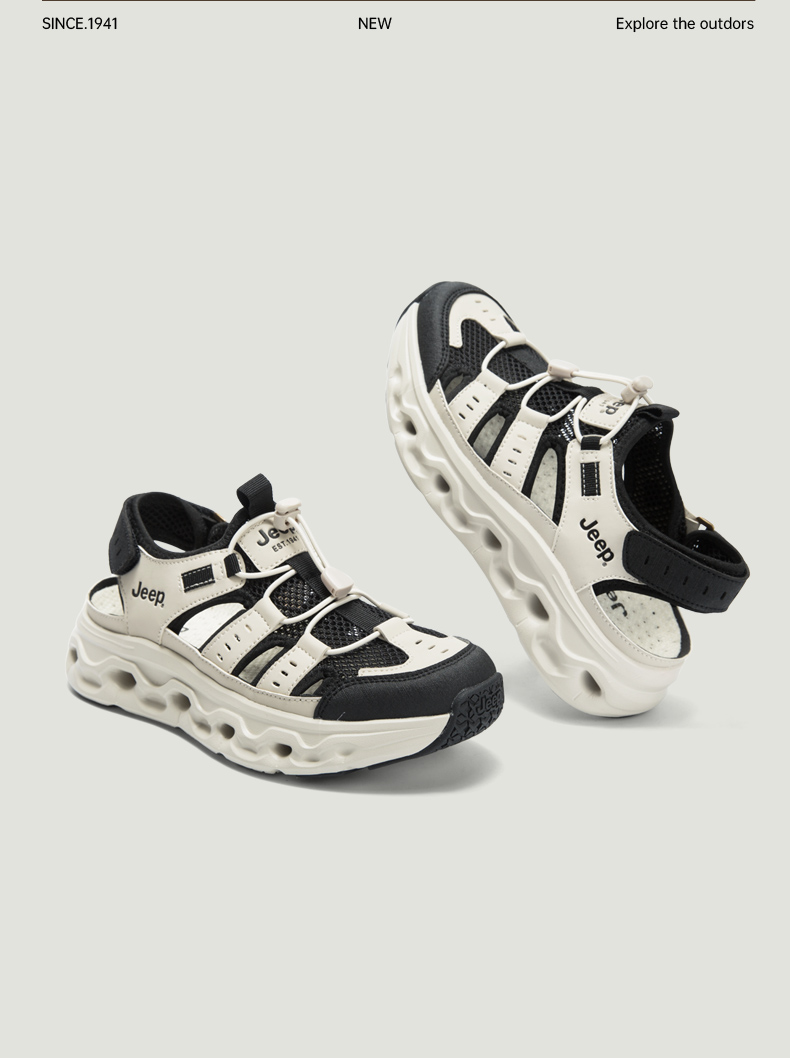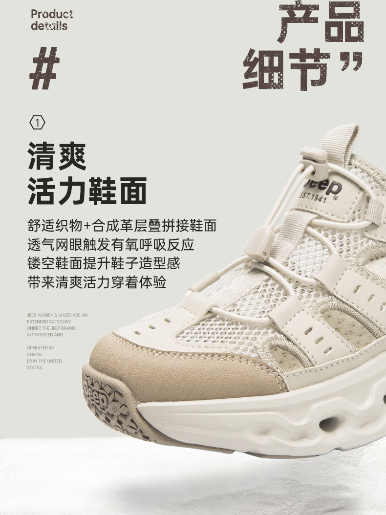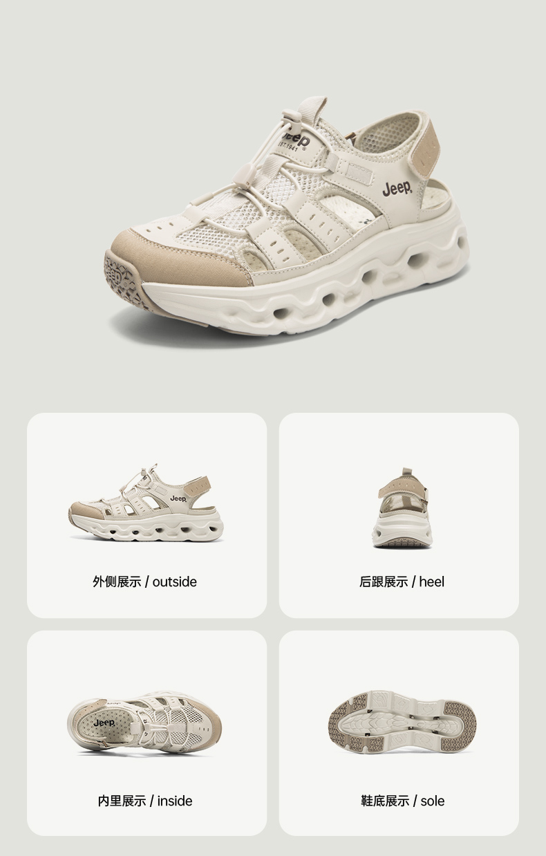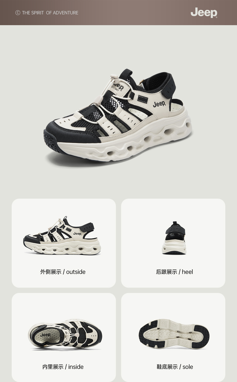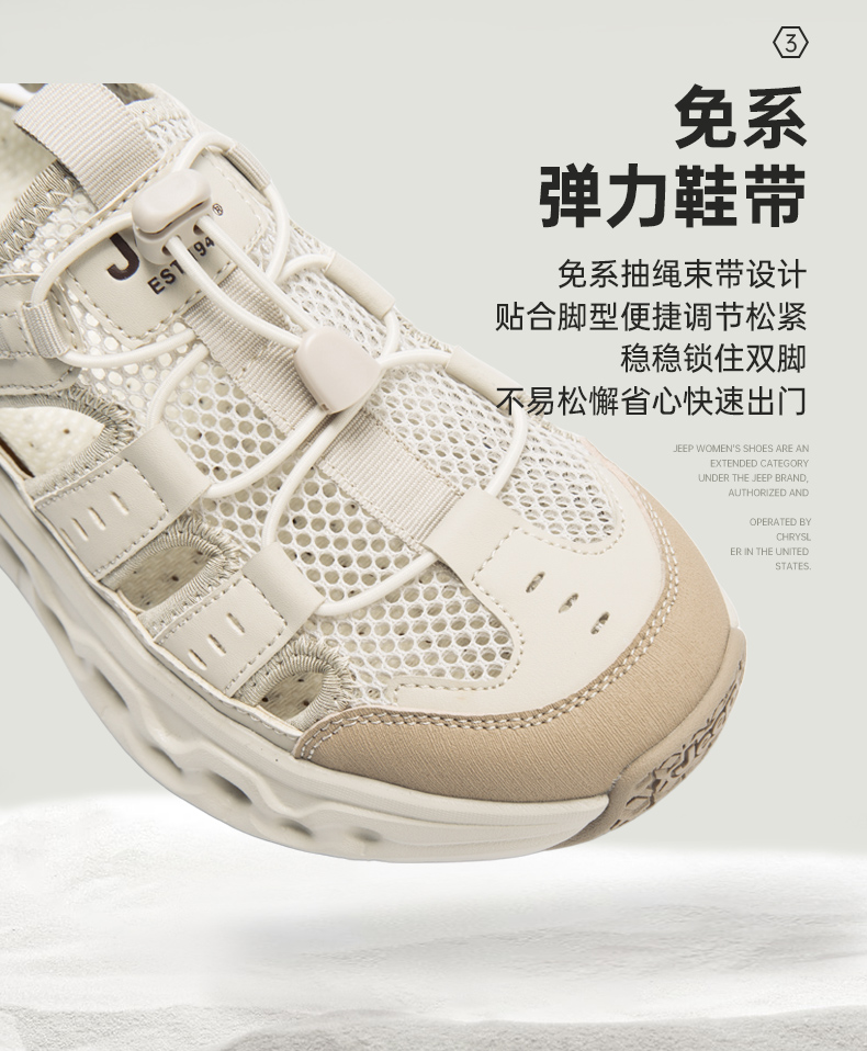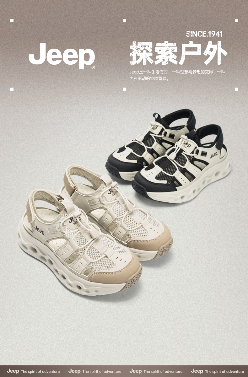 Jeep Sports Casual Sandals for Women 2025 Summer New Non-Slip Soft-Soled Wading Shoes Breathable Thick-Soled Closed-Toe Sandals