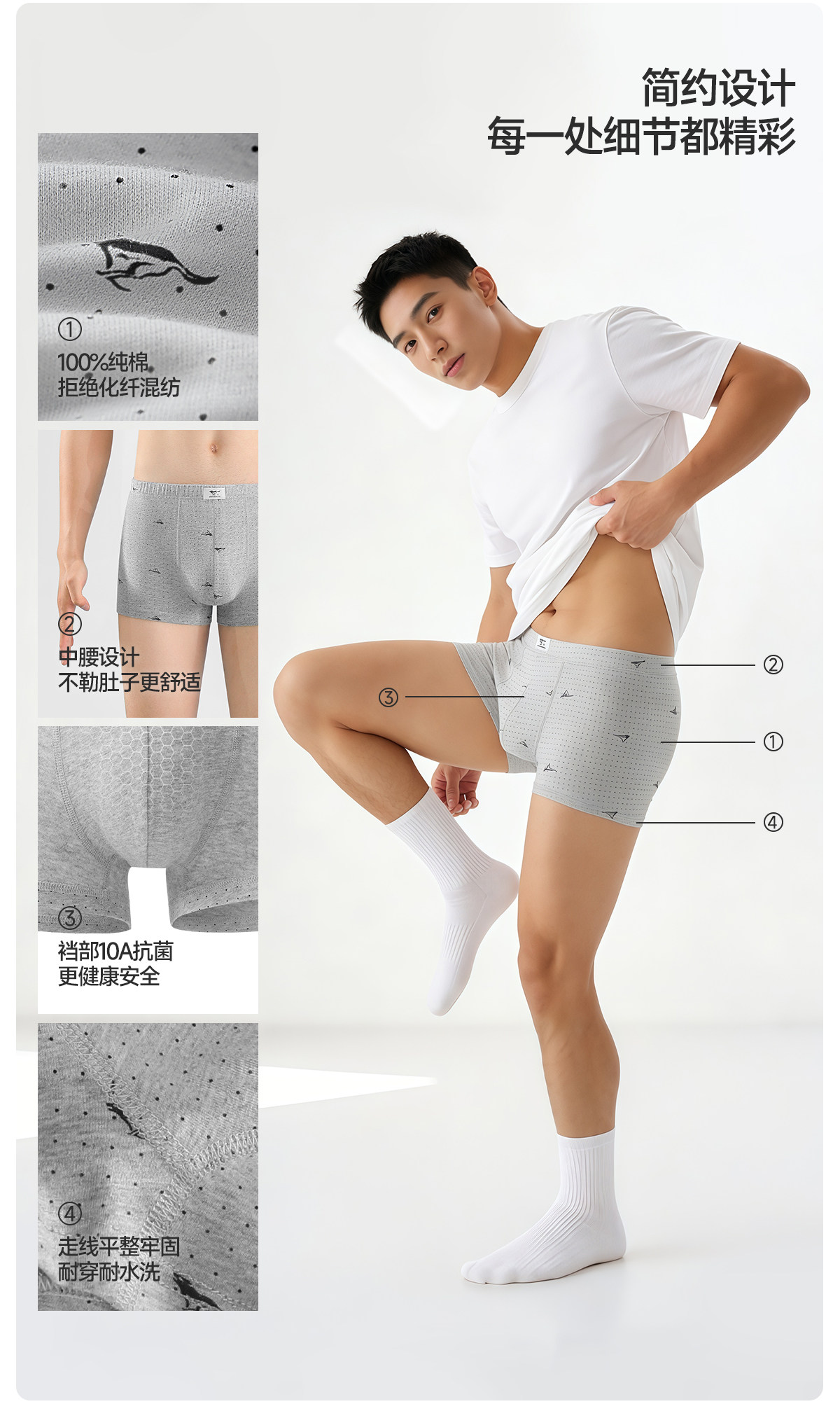 Septwolves Men's Underwear Pure Cotton Boys' 2026 New Style 100% Cotton Men's Boxer Shorts Men's Boxer Briefs