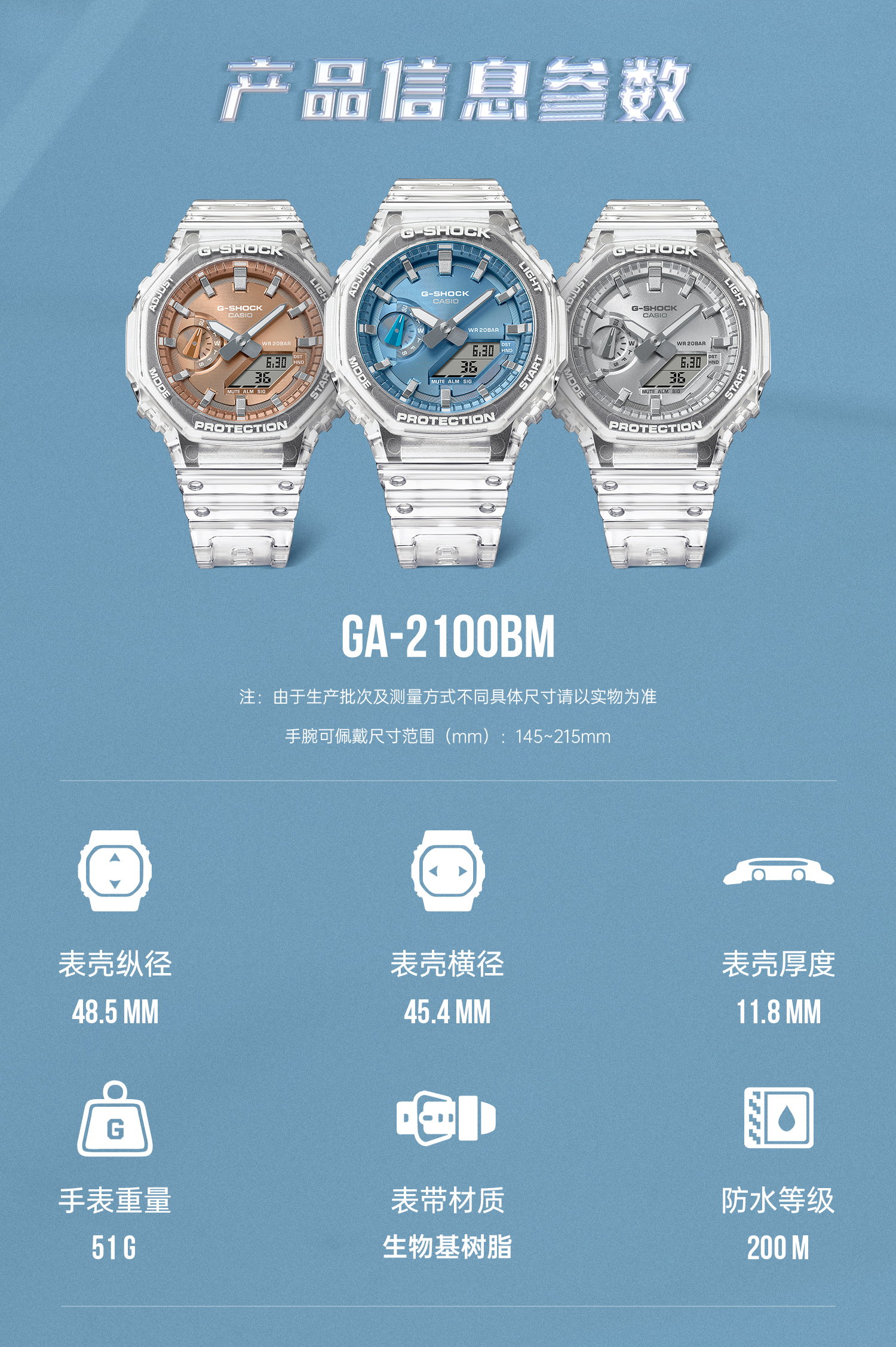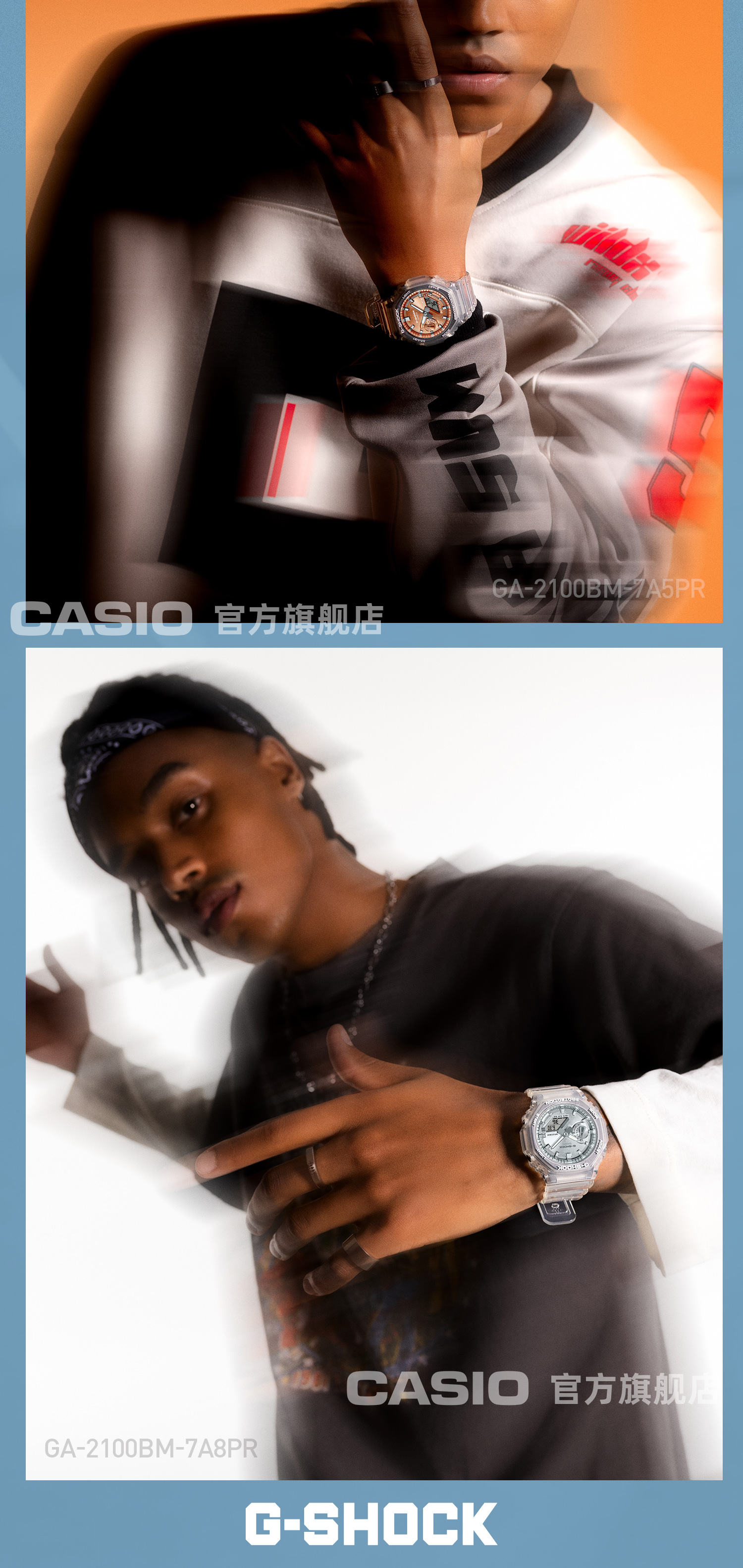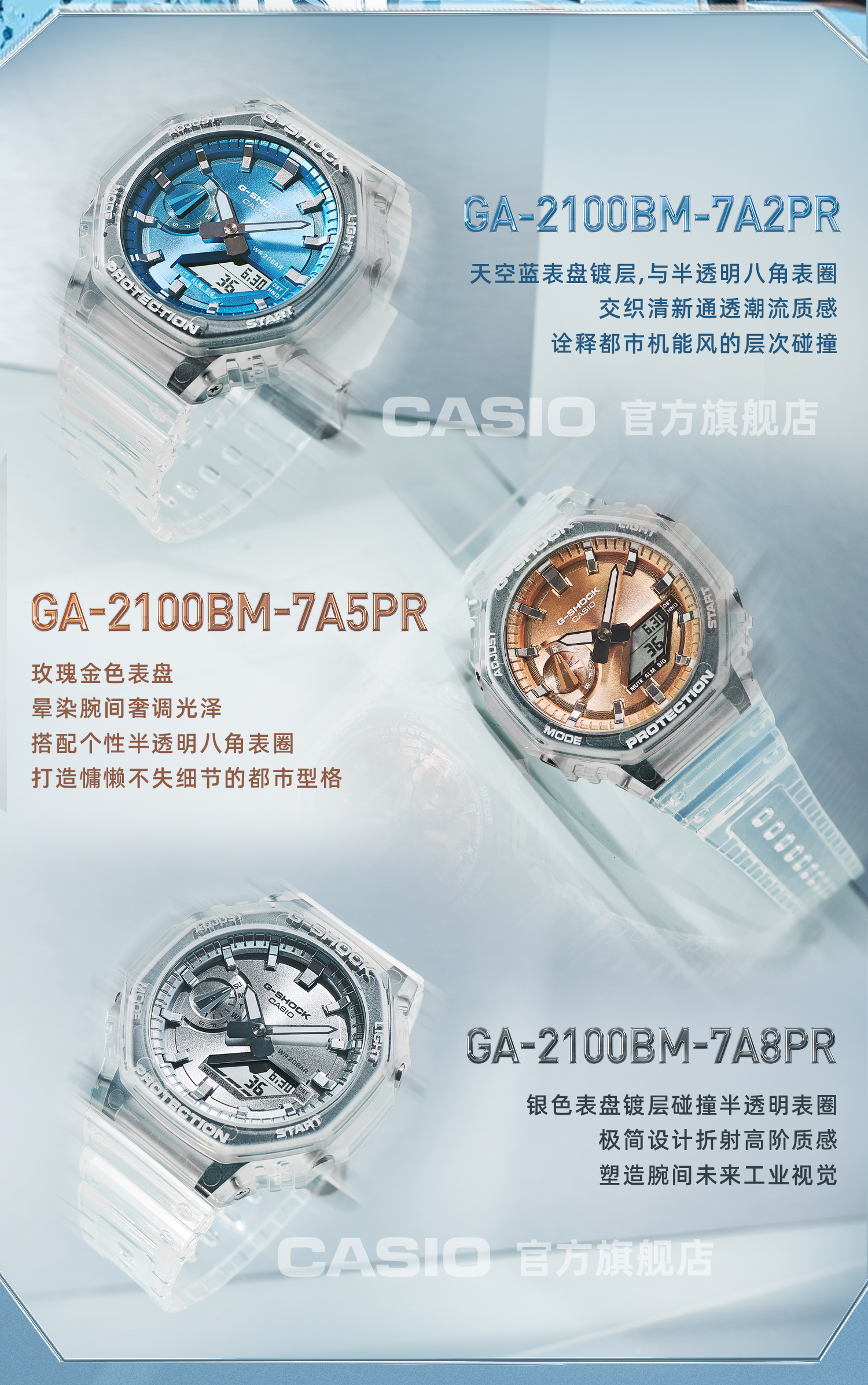 Casio Official Flagship Store Ga-2100Bm Octagonal Metal Transparent Men's and Women's Waterproof and Shockproof Watch G-Shock