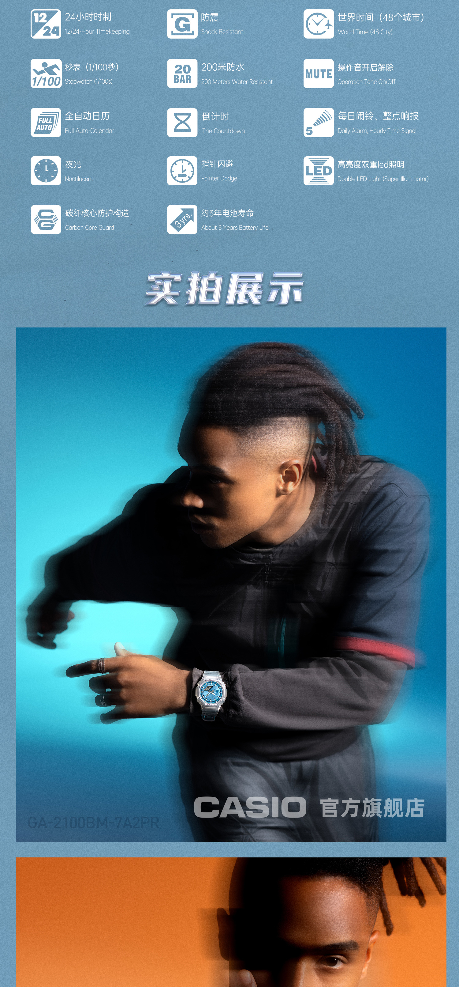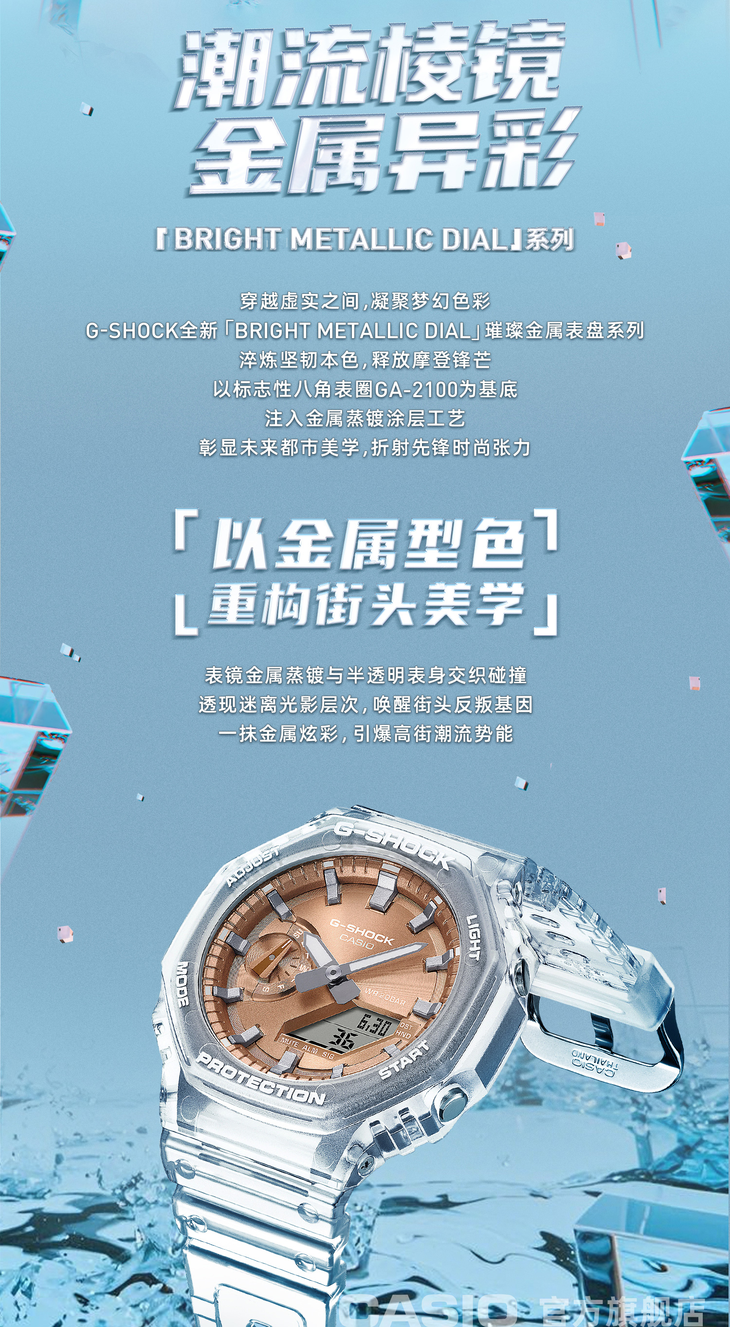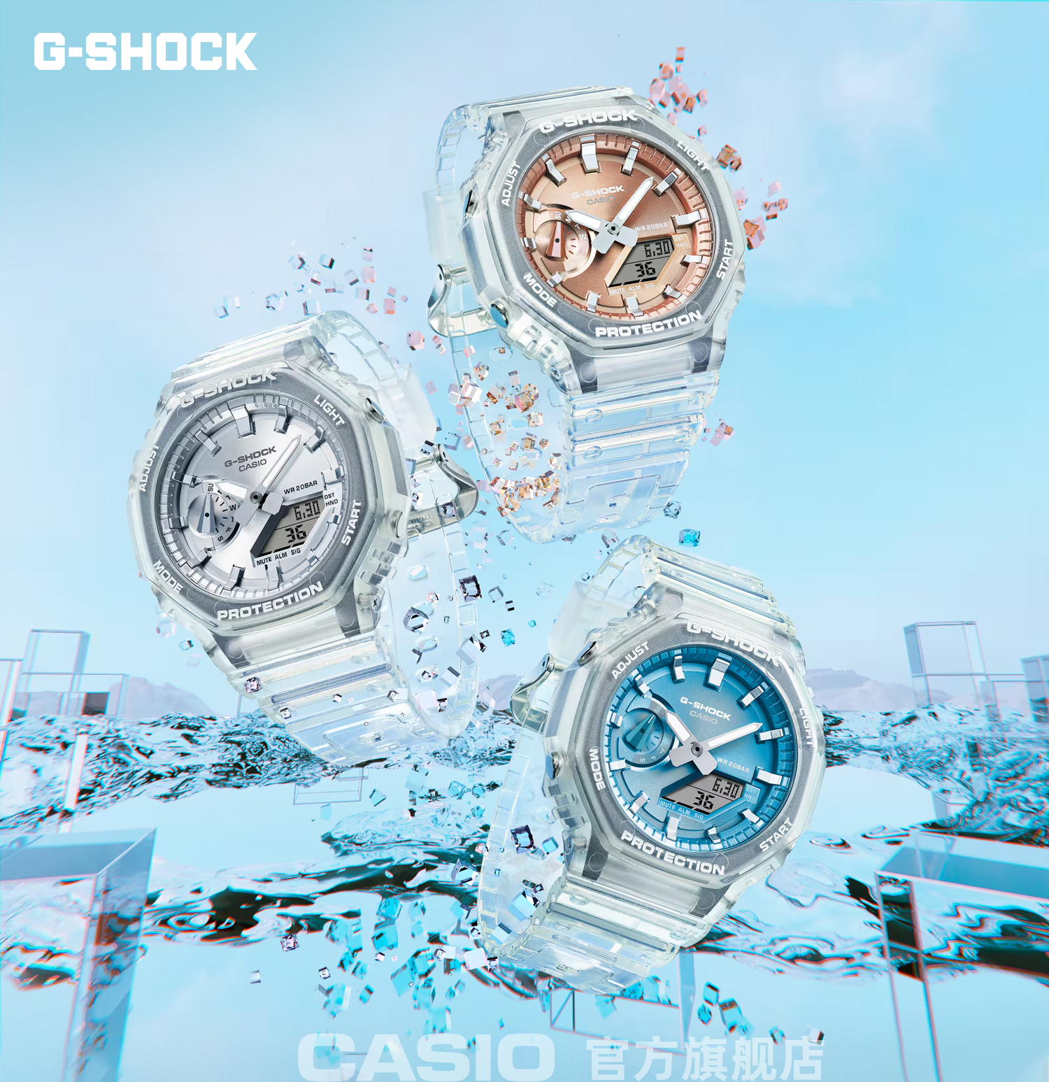 Casio Official Flagship Store Ga-2100Bm Octagonal Metal Transparent Men's and Women's Waterproof and Shockproof Watch G-Shock