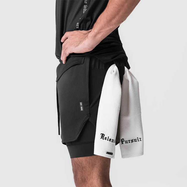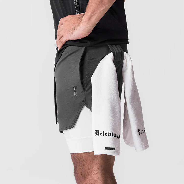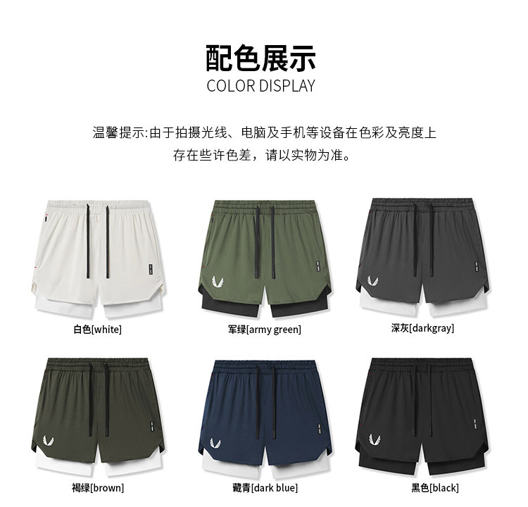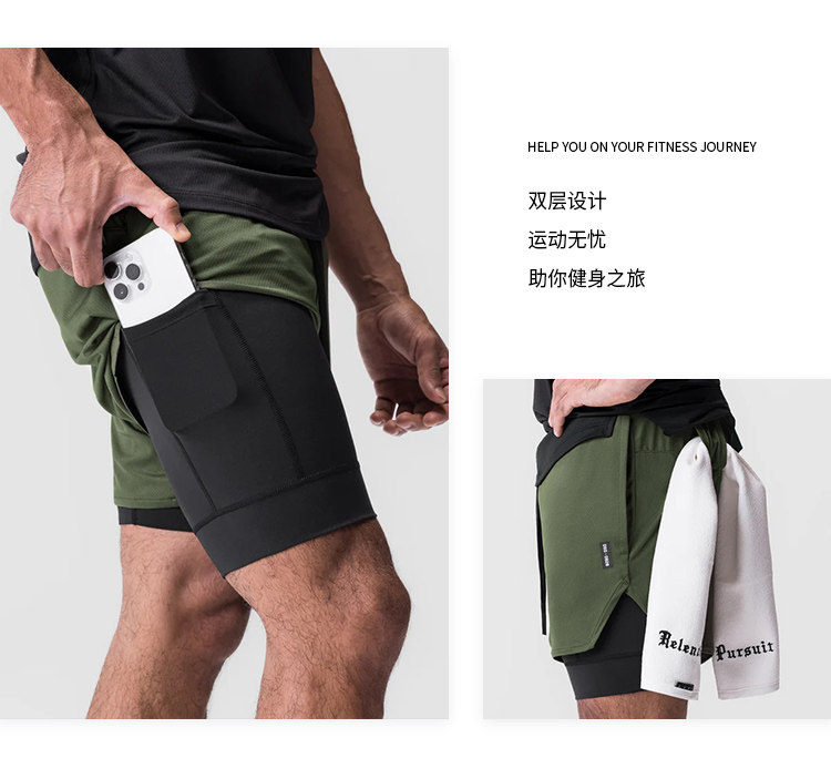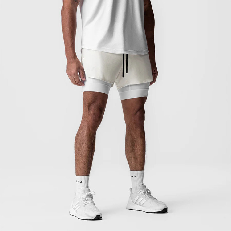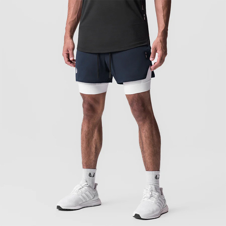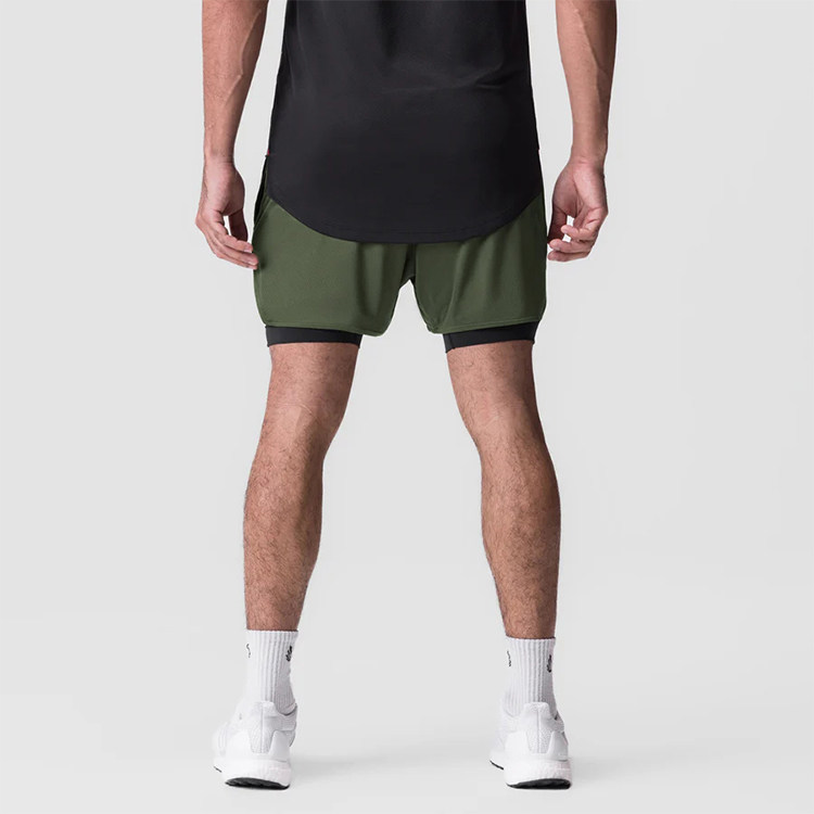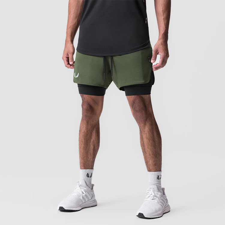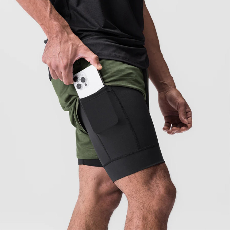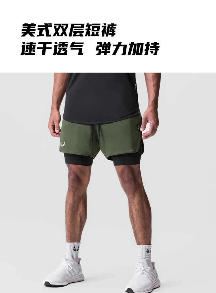 Asrv Summer American-Style Multi-Pocket Sports Shorts for Men, Fake Two-Piece Running Training Track and Field Shorts