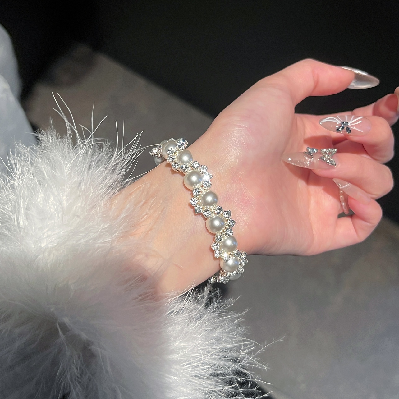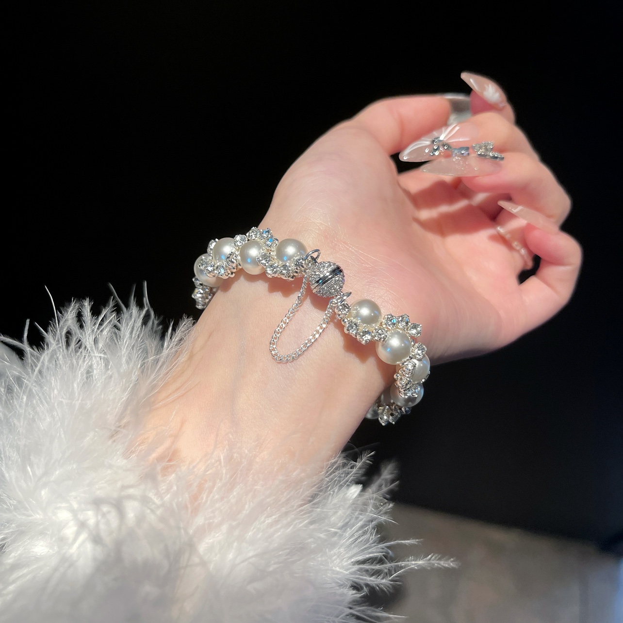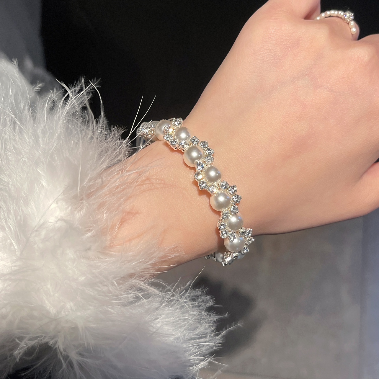 Dinner Time Shijia Pearl Bracelet - Light Luxury, Irregular, Exquisite, Niche, Diamond-Encrusted Jewelry, Versatile and Luxurious for Women