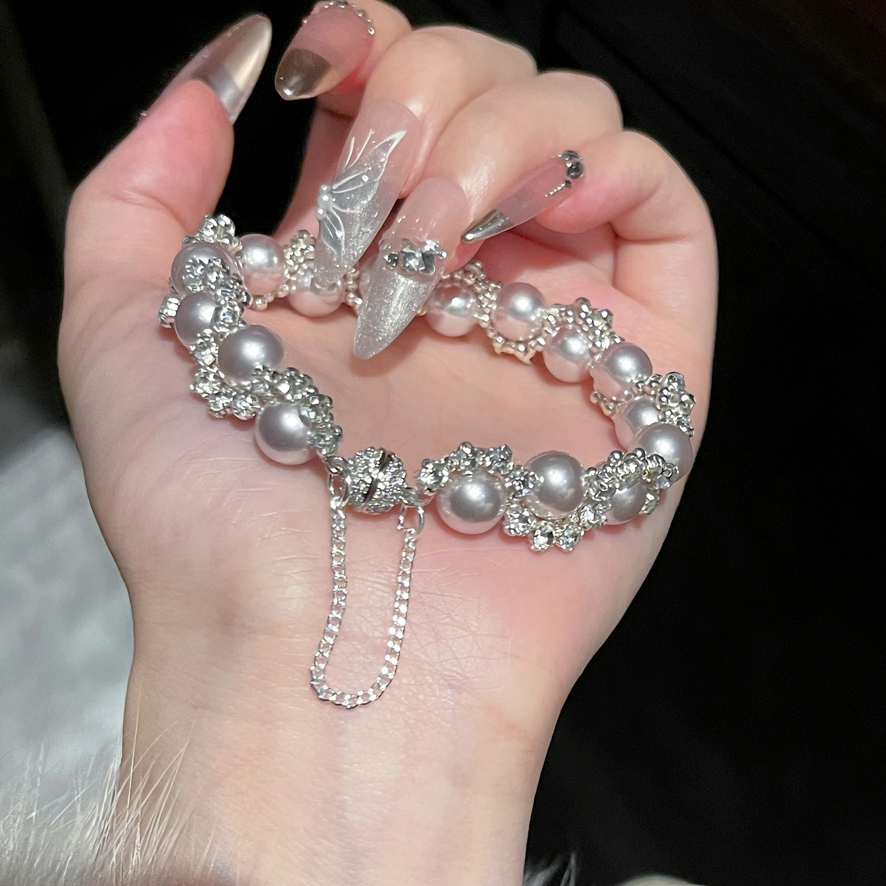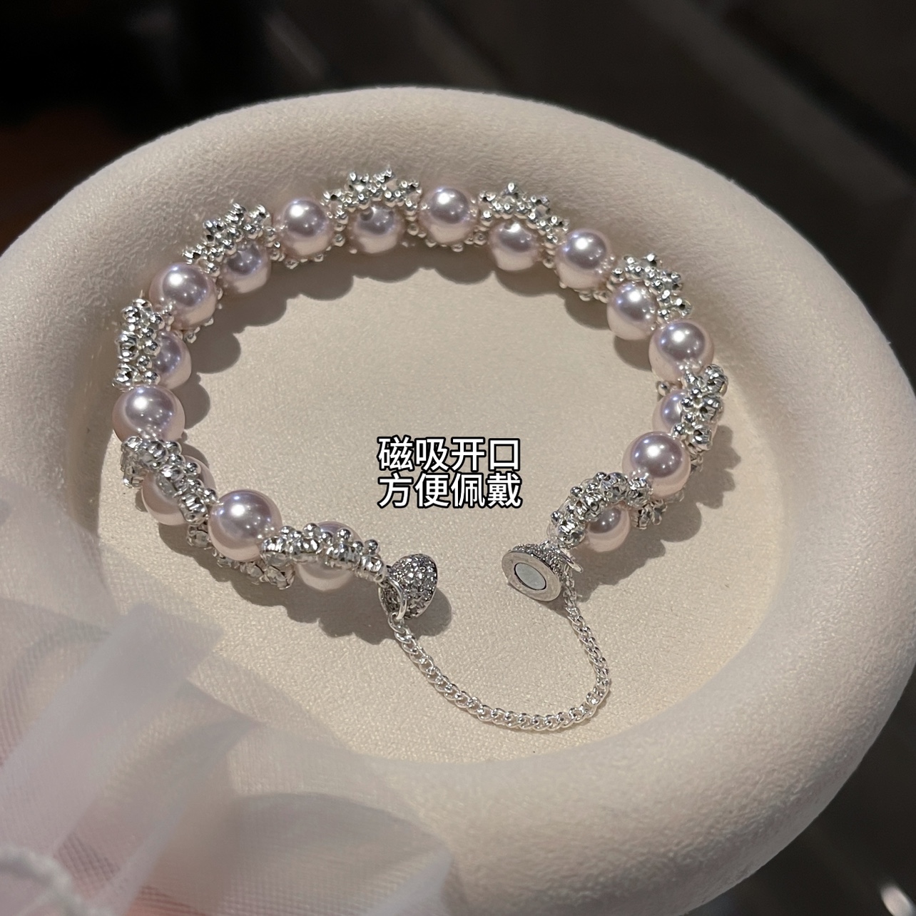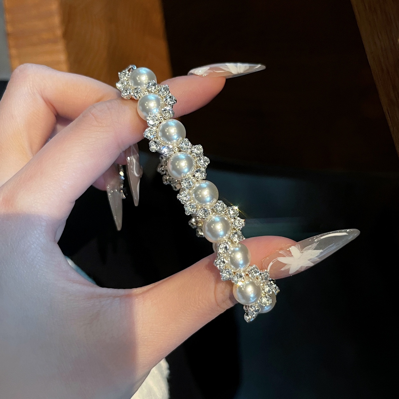 Dinner Time Shijia Pearl Bracelet - Light Luxury, Irregular, Exquisite, Niche, Diamond-Encrusted Jewelry, Versatile and Luxurious for Women