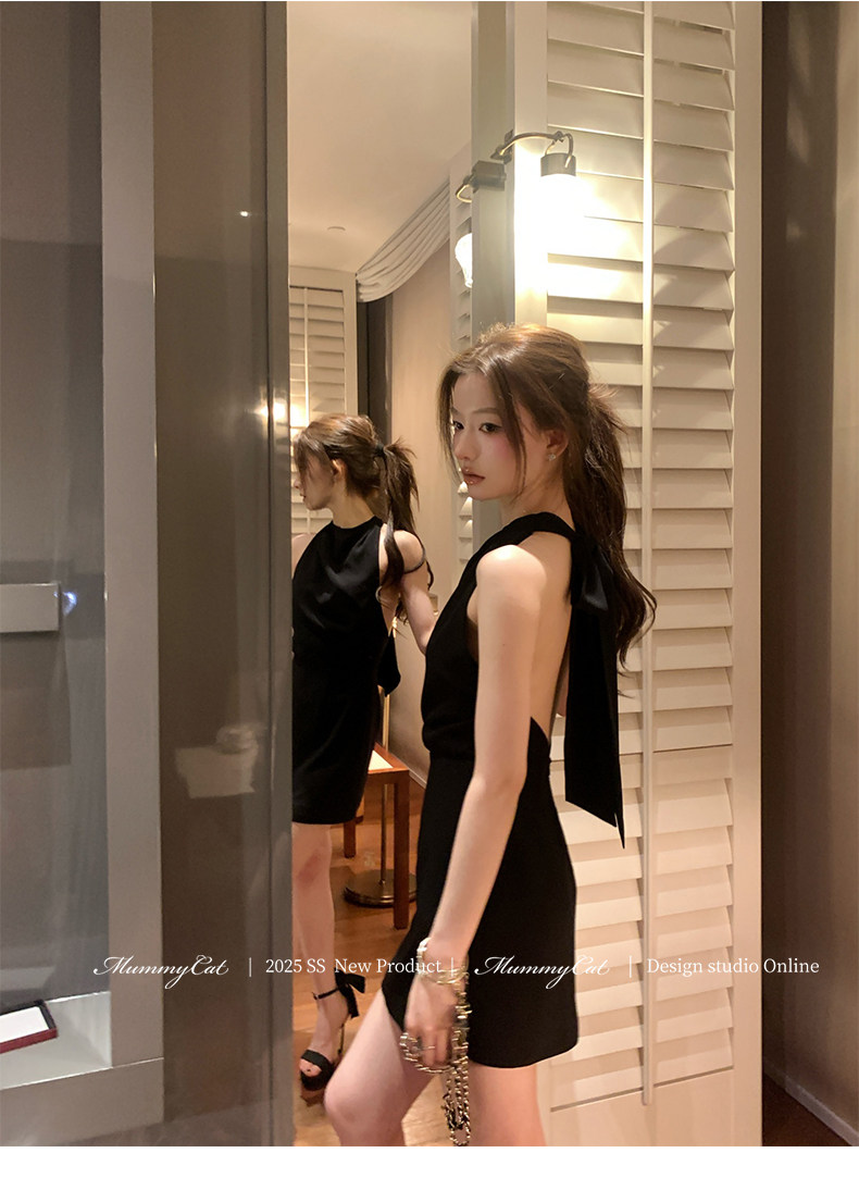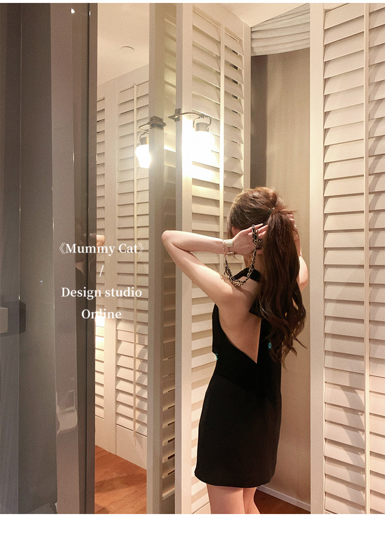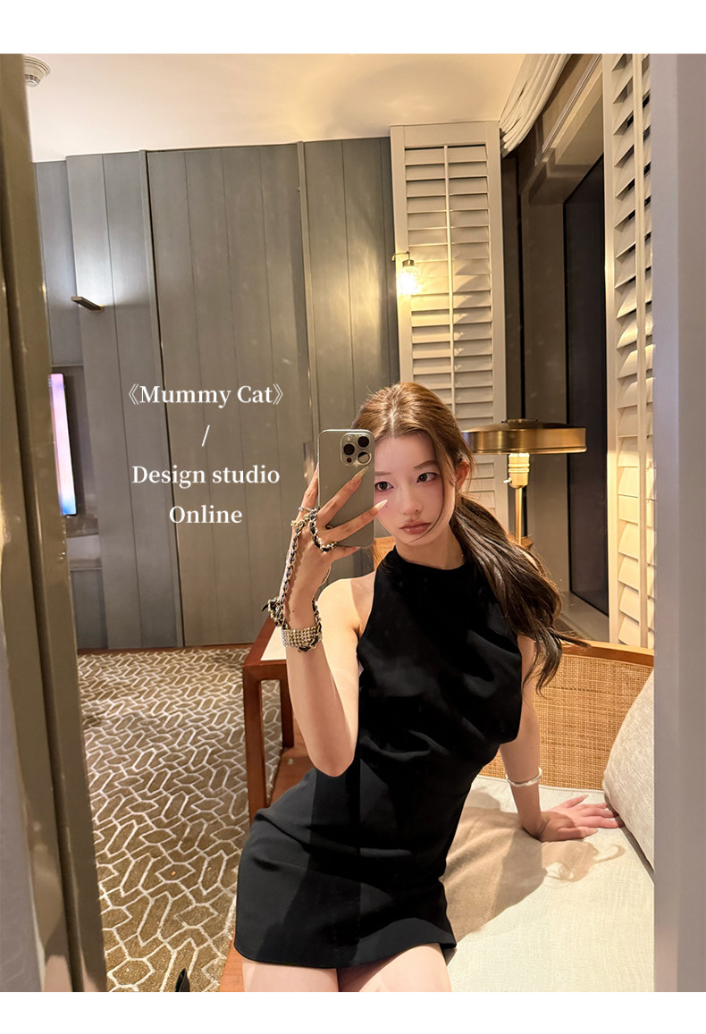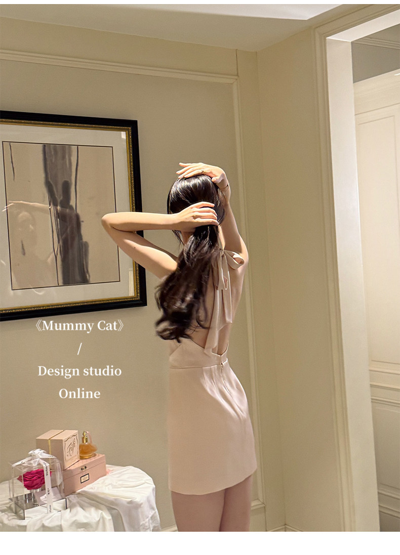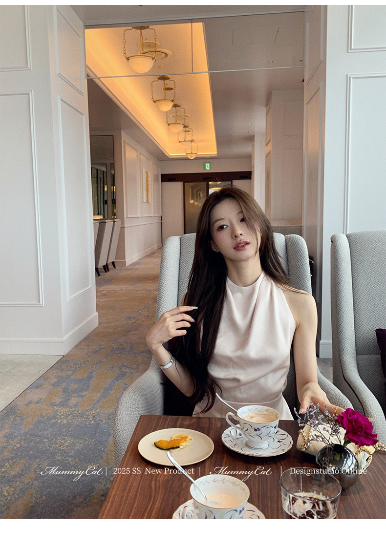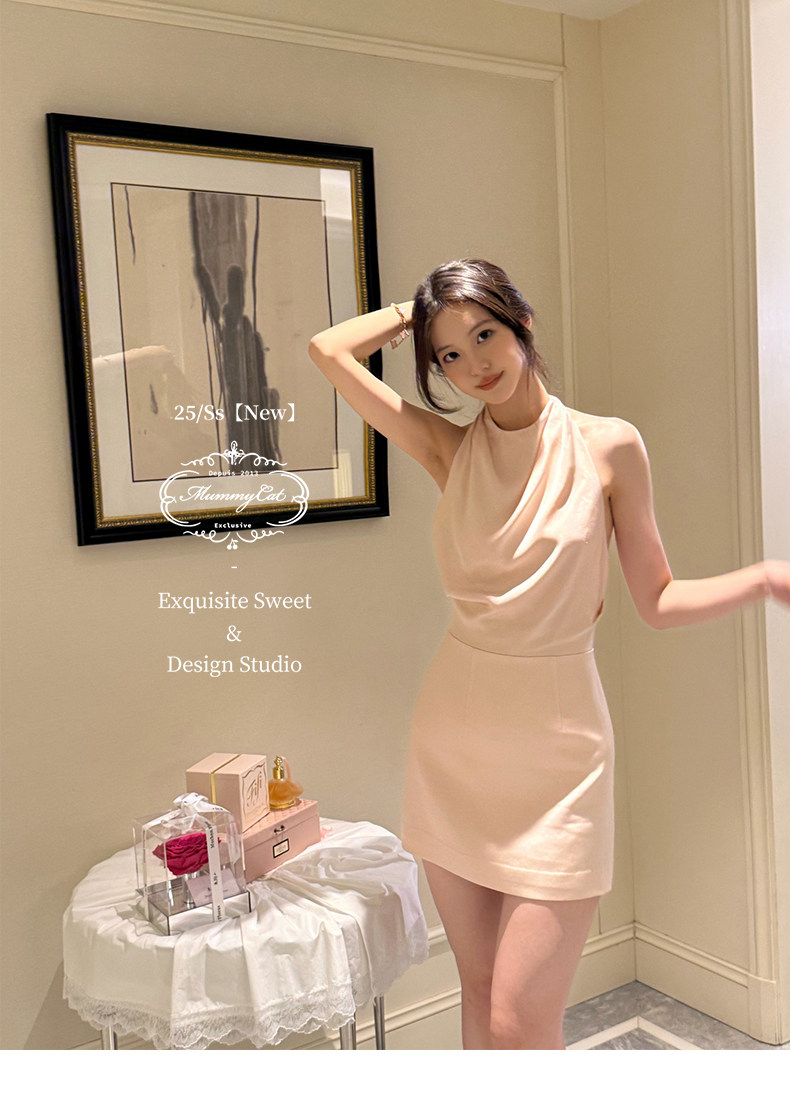 Mummy Cat Lays Eggs Meow【Gorgeous Conspirator】Acetate Swing Collar Sleeveless Halter Neck Backless Elegant Dress