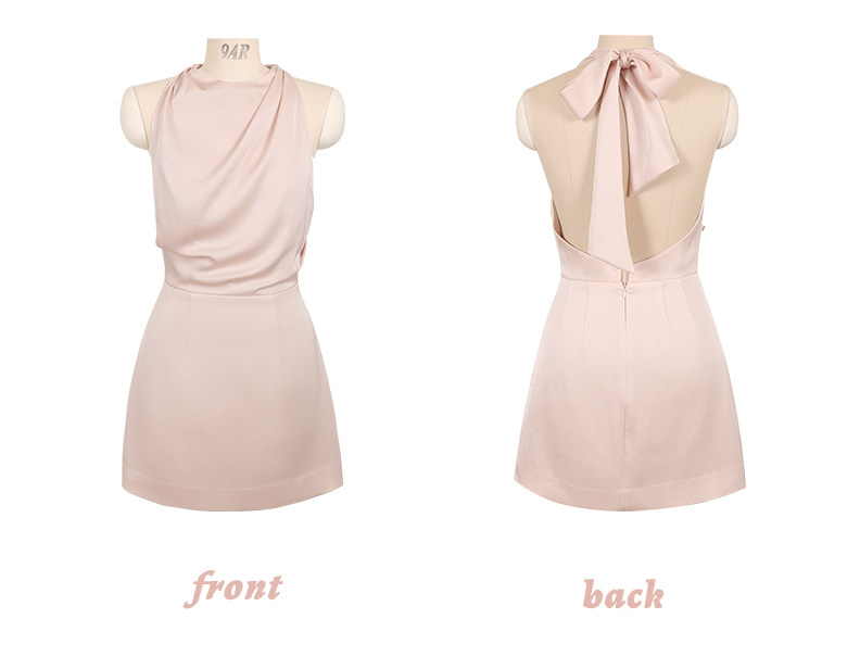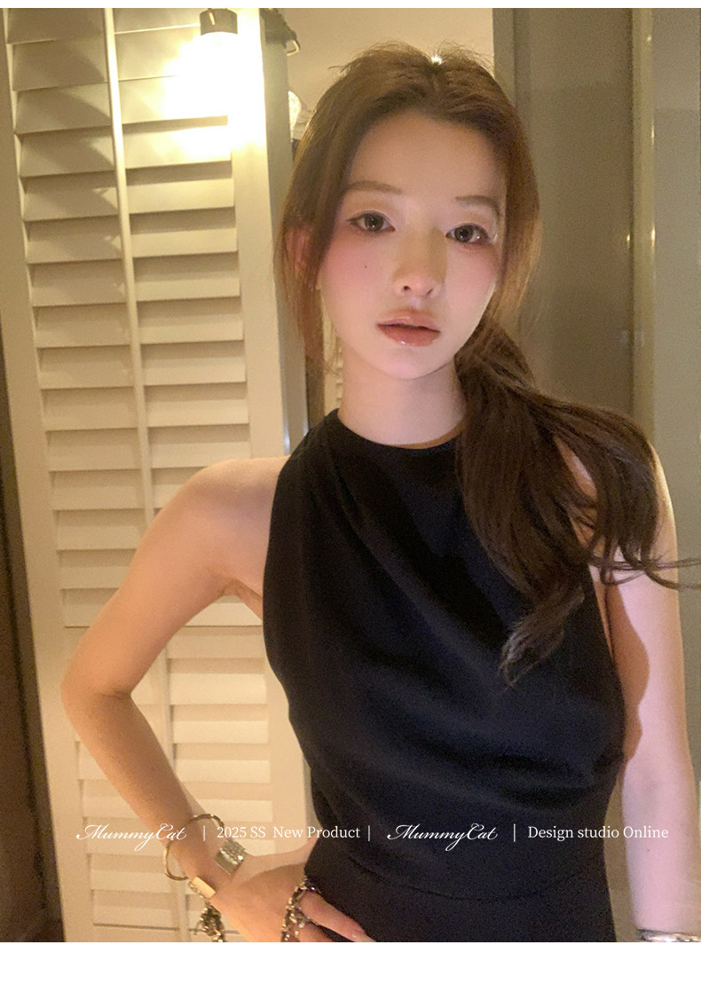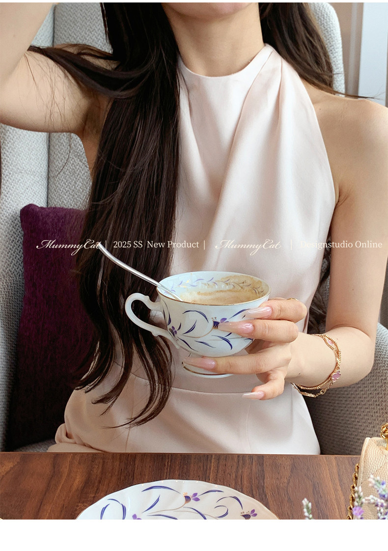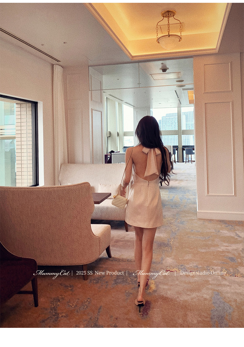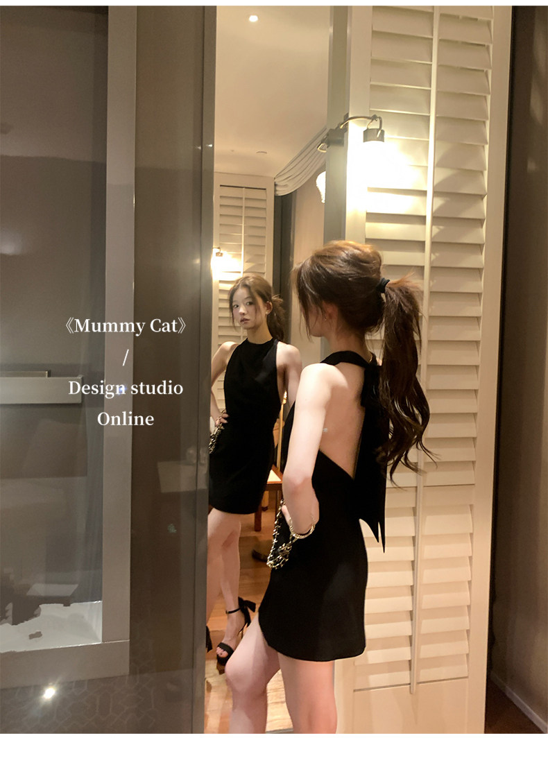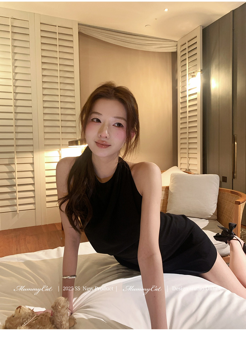 Mummy Cat Lays Eggs Meow【Gorgeous Conspirator】Acetate Swing Collar Sleeveless Halter Neck Backless Elegant Dress