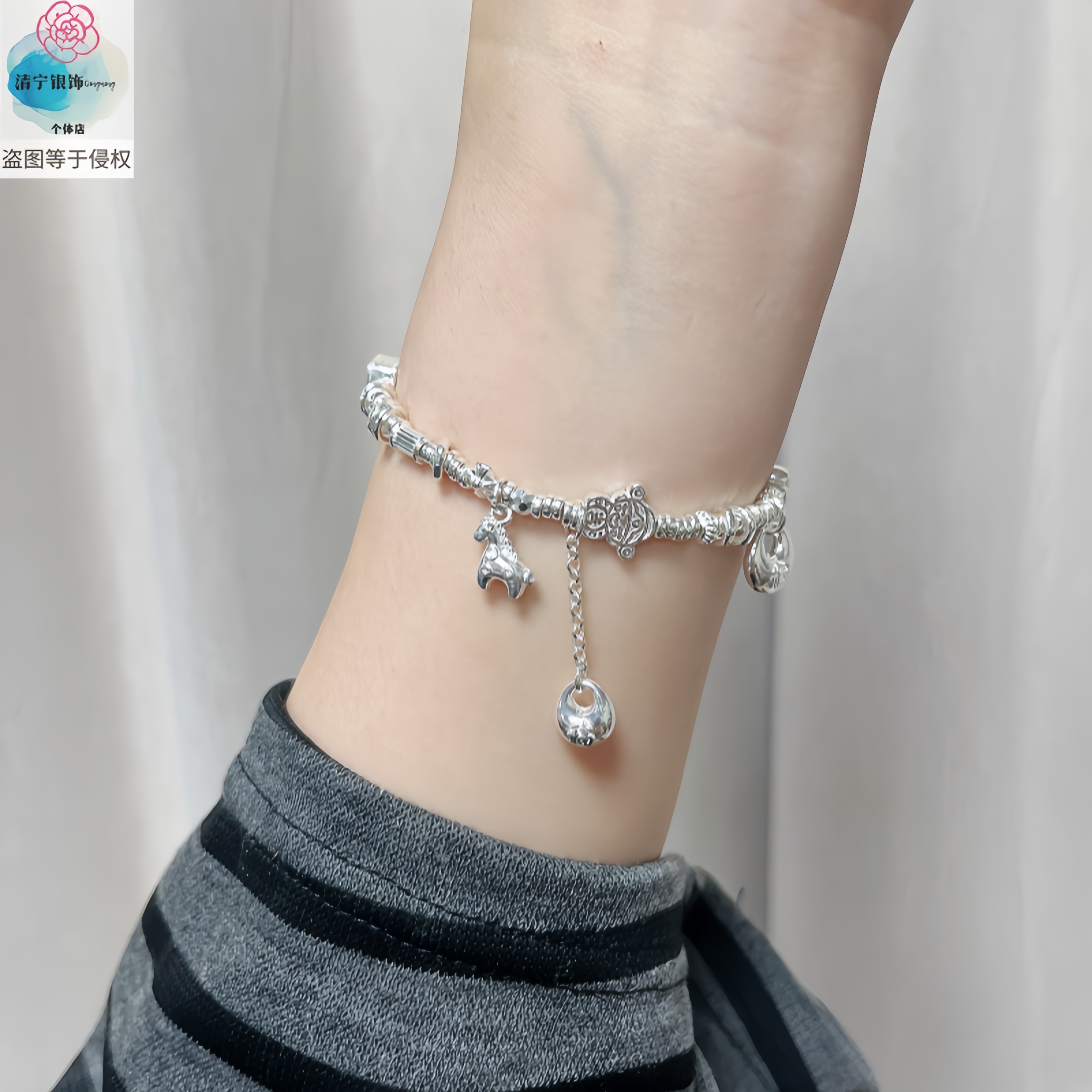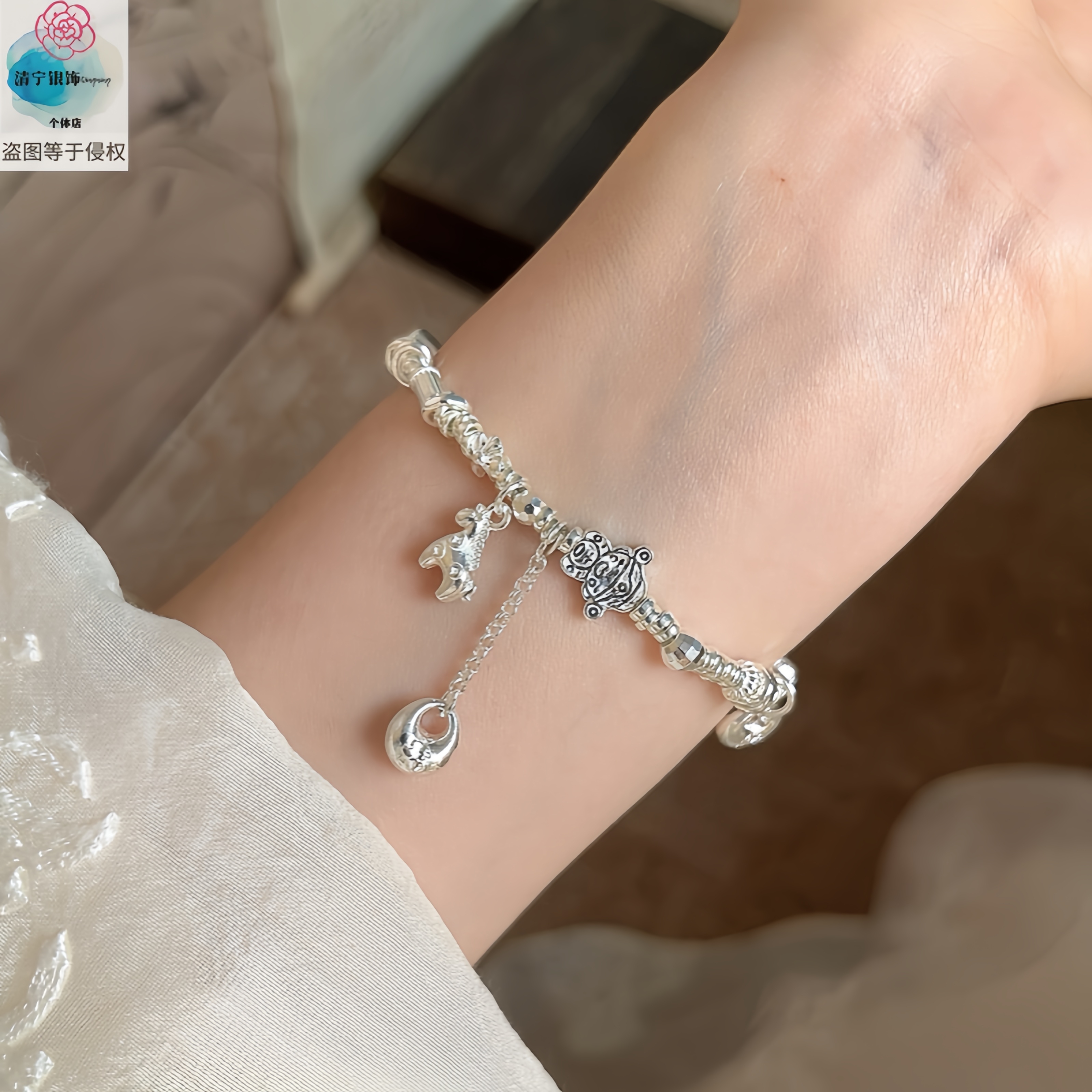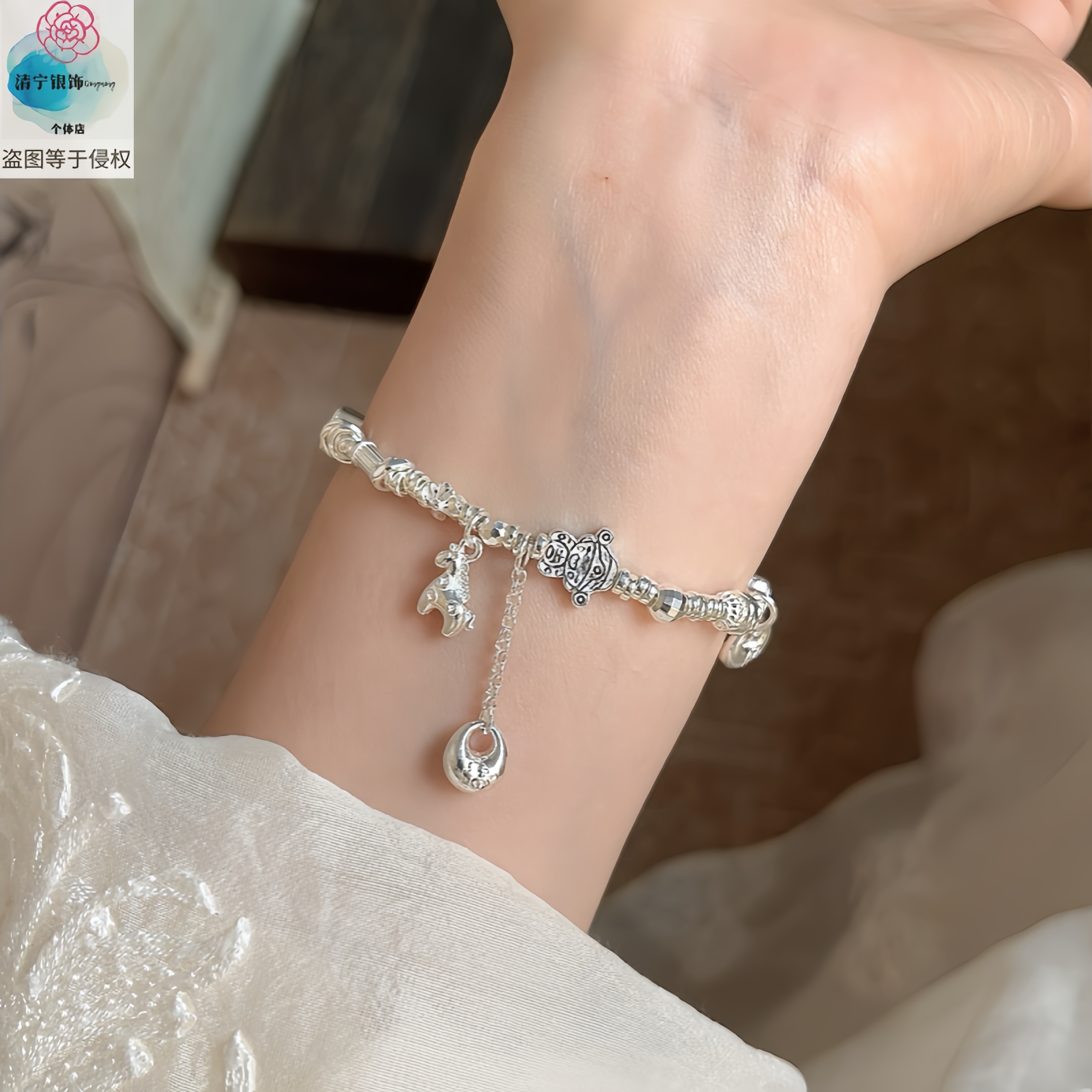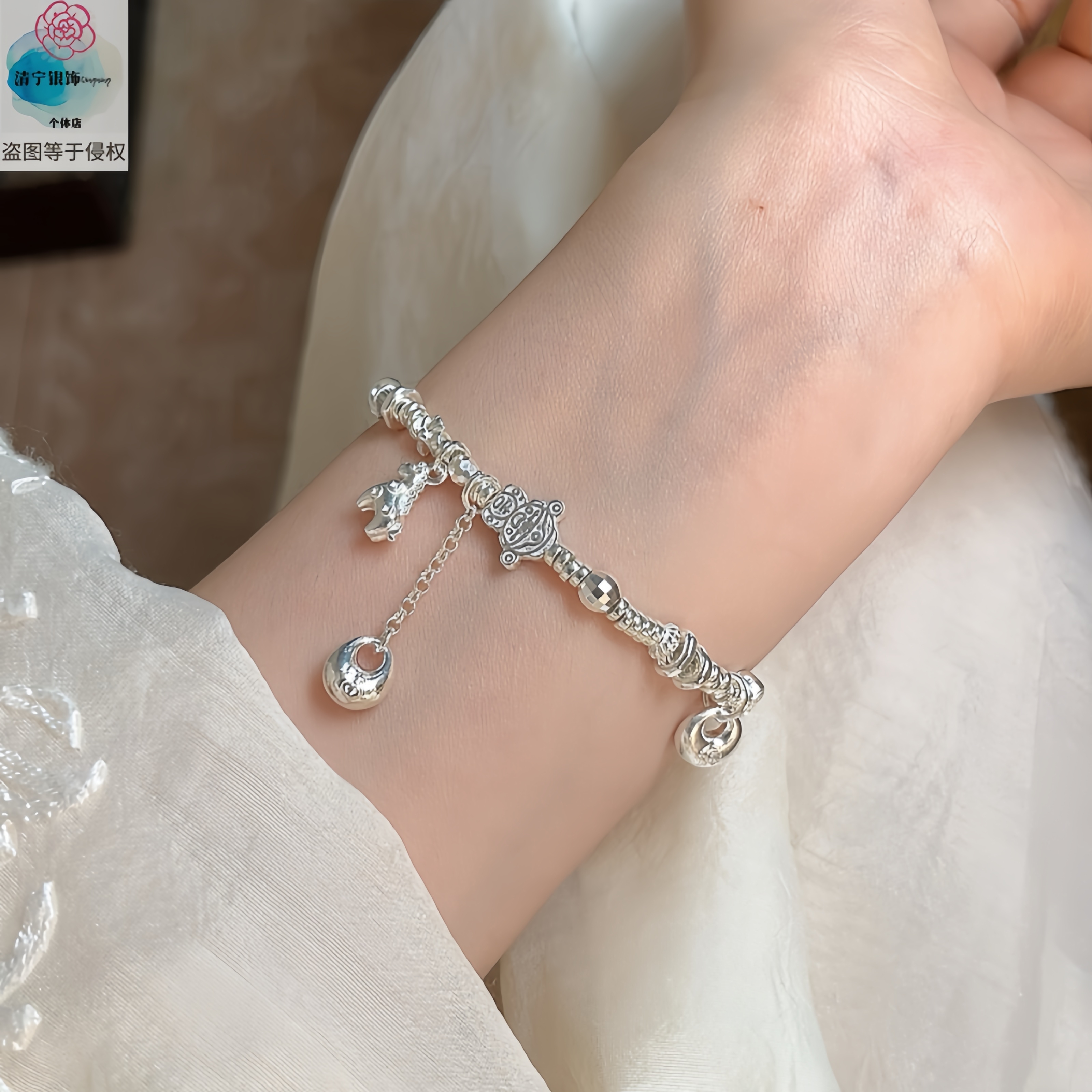 """"If You Are Rich Immediately"," Pure Silver Auspicious Words. Trojan Horse Plate Wrapped with Sterling Silver Bracelet. National Trend. New Chinoiserie Niche Gift for Girlfriend