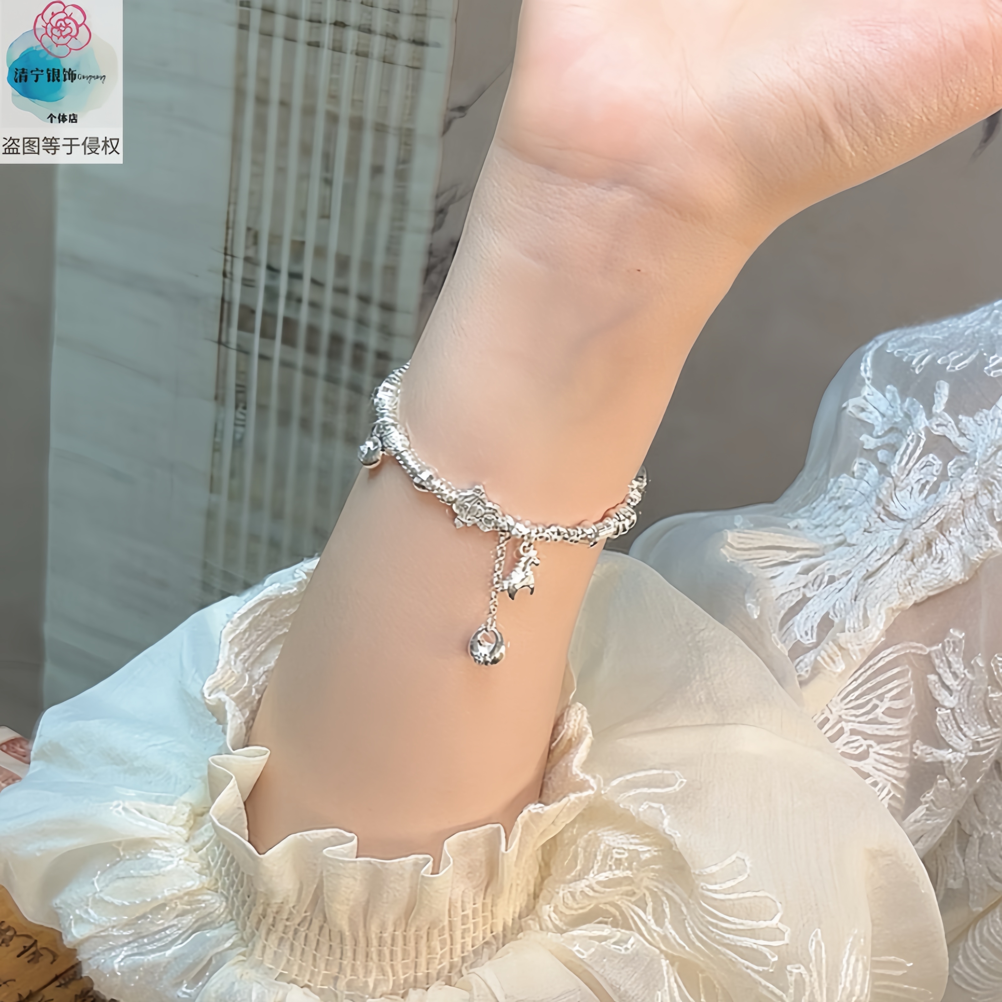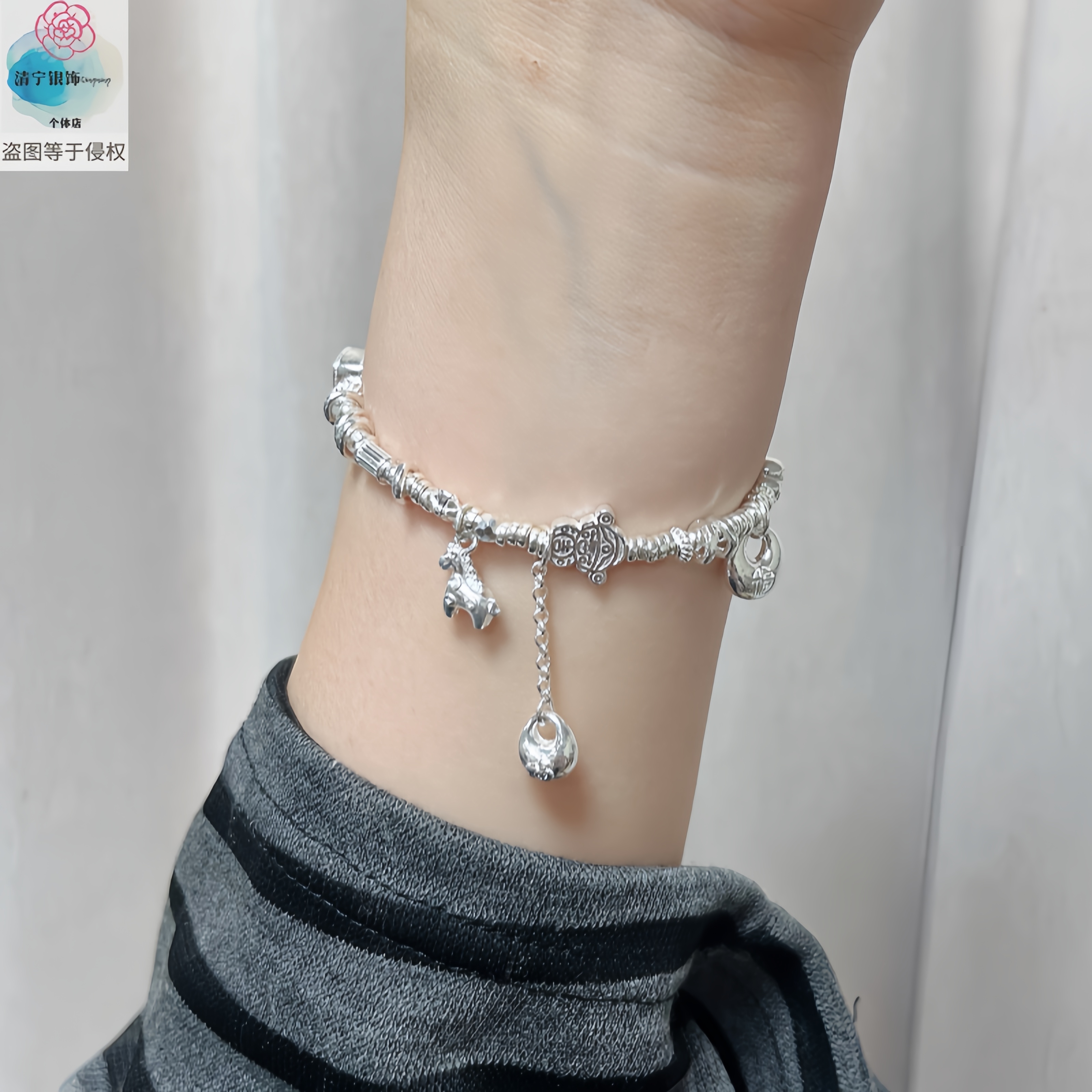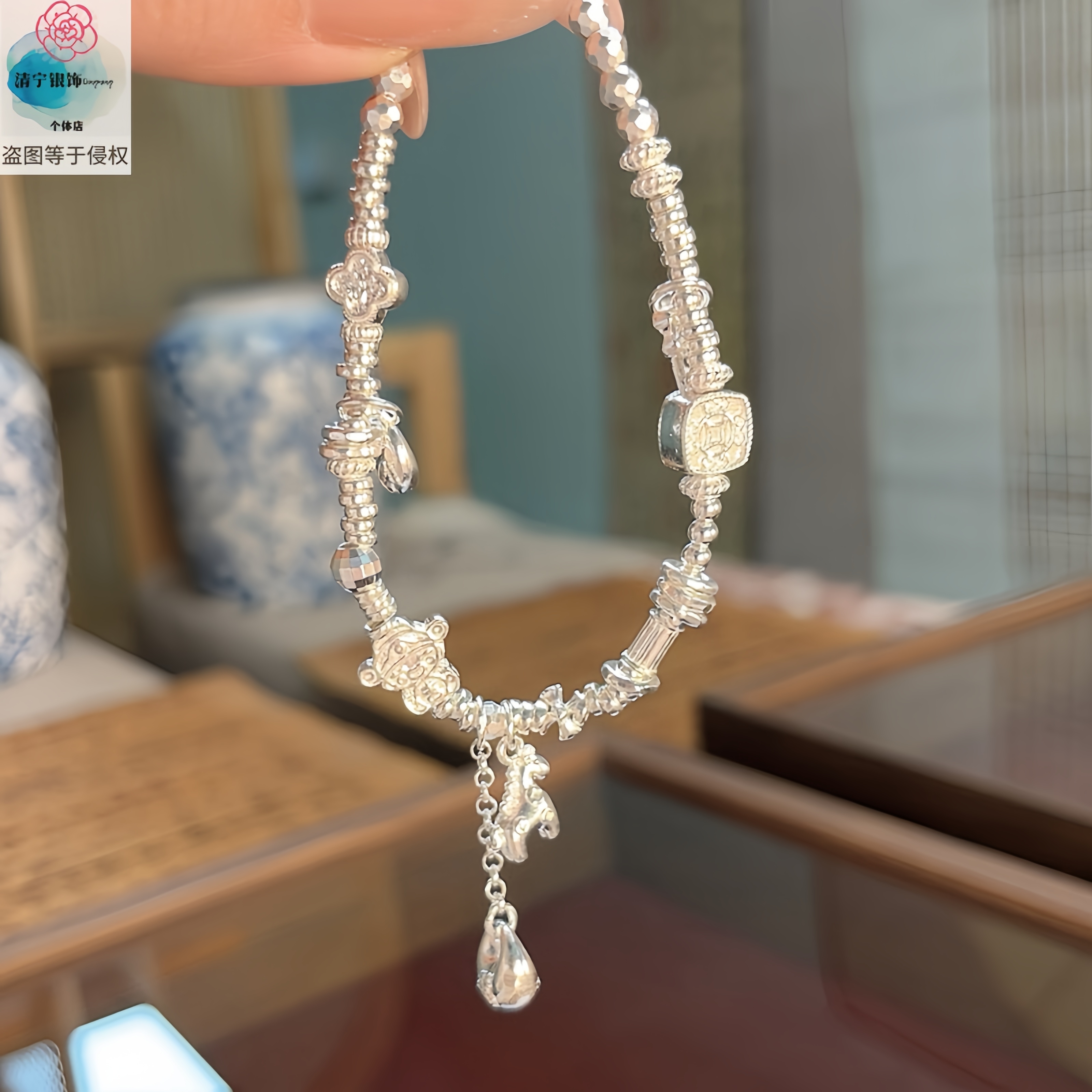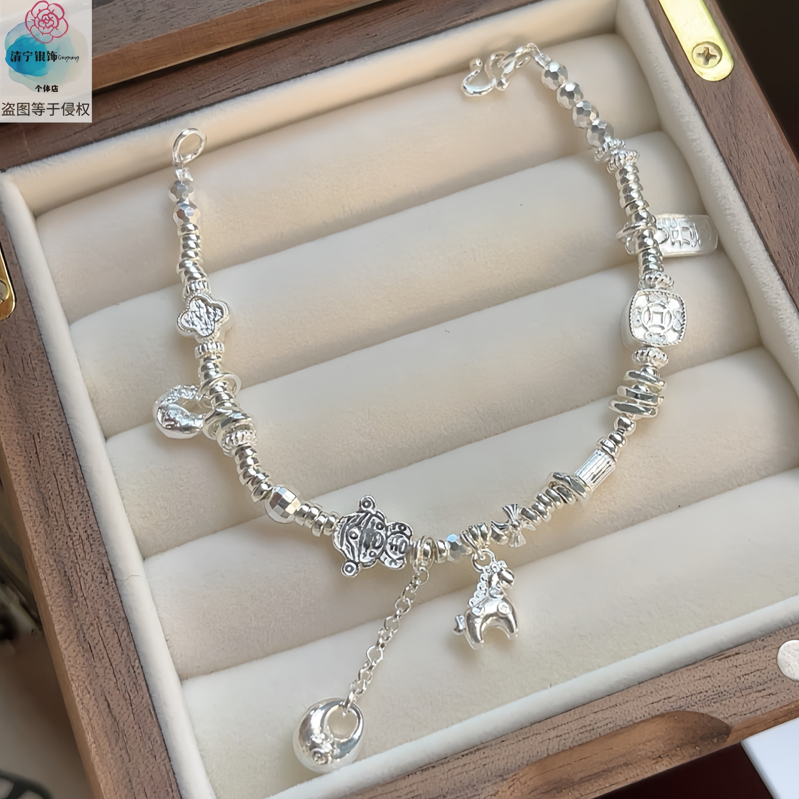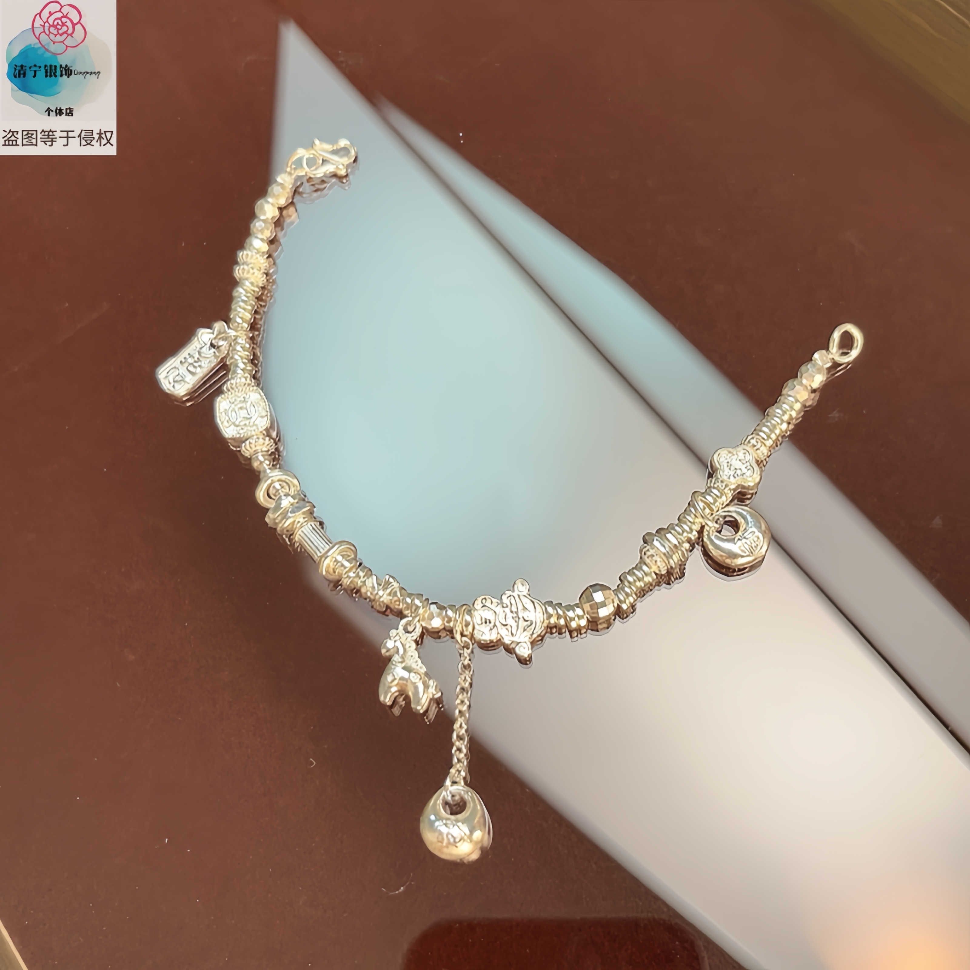 """"If You Are Rich Immediately"," Pure Silver Auspicious Words. Trojan Horse Plate Wrapped with Sterling Silver Bracelet. National Trend. New Chinoiserie Niche Gift for Girlfriend