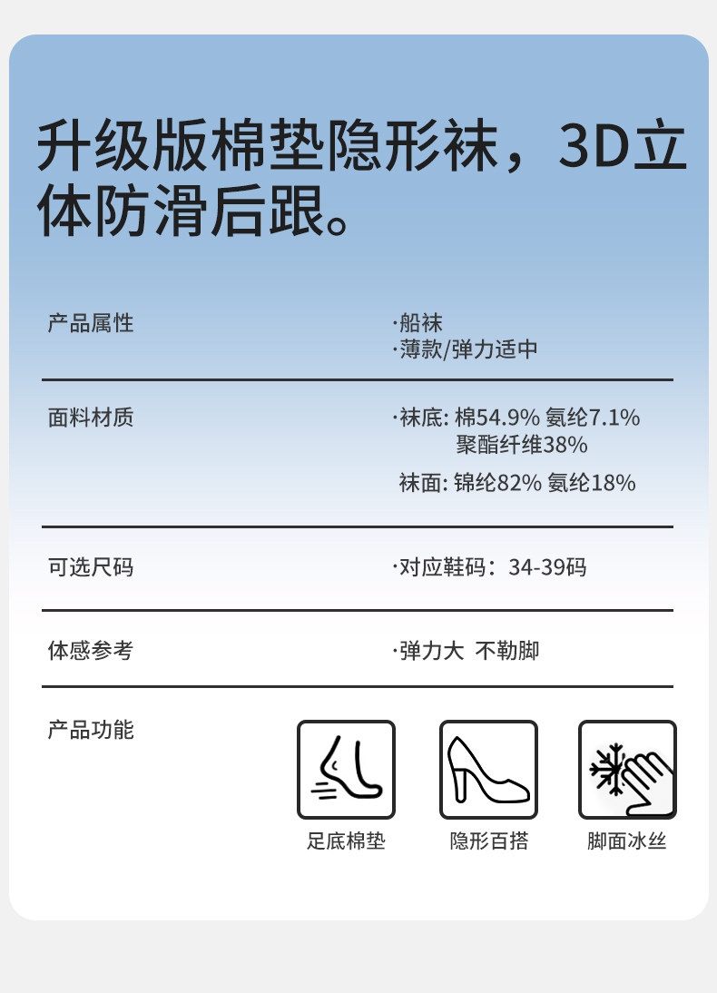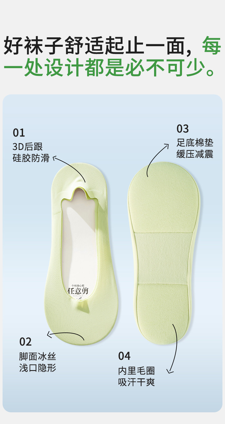 High Heel Socks, Invisible Socks, Non-Slip, Won'T Slip Off, Summer Thin Sponge Bottom, Shock-Absorbing, Shallow Mouth, Seamless Ice Silk Boat Socks
