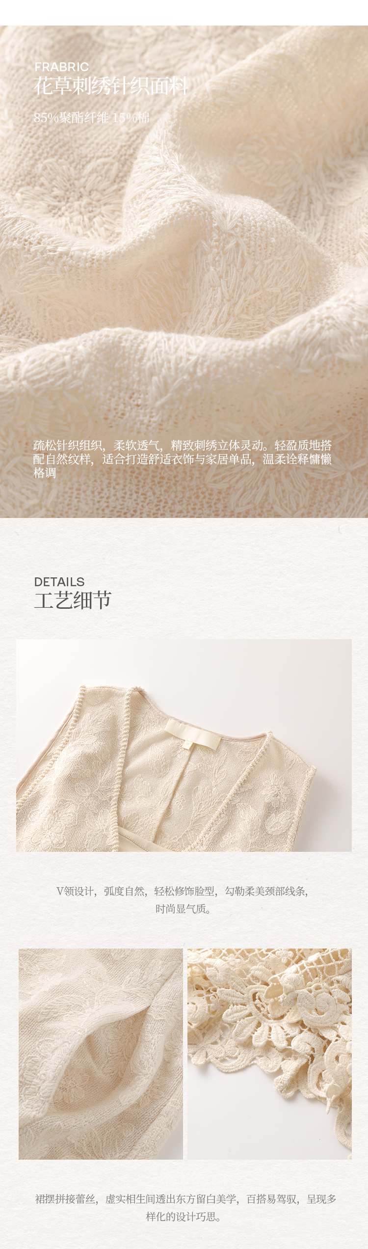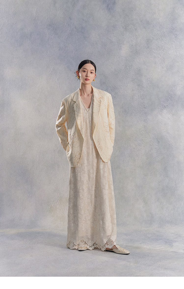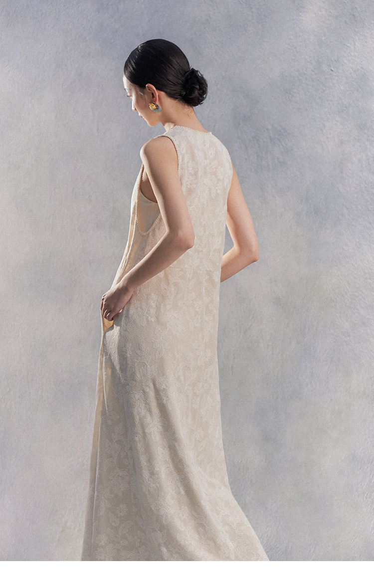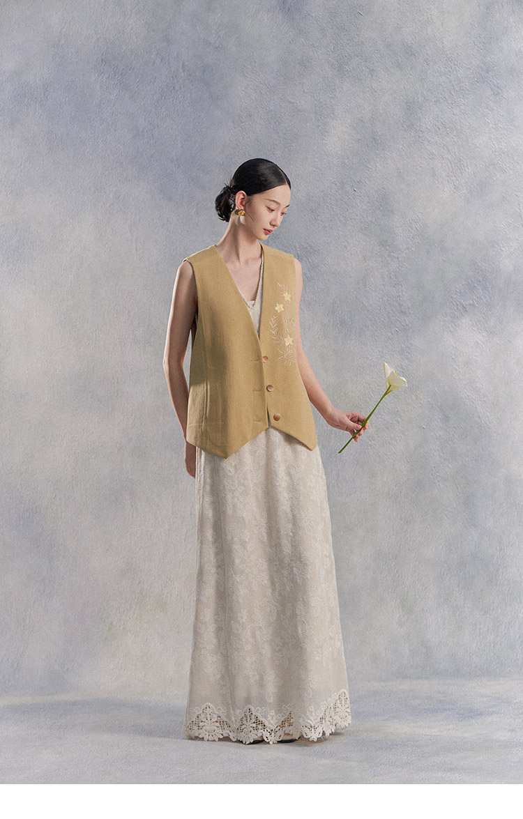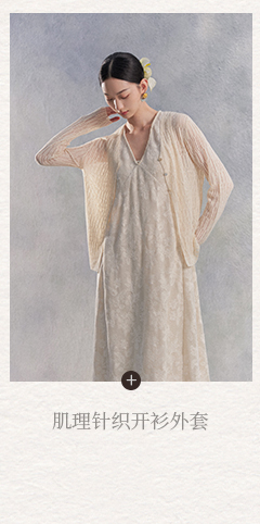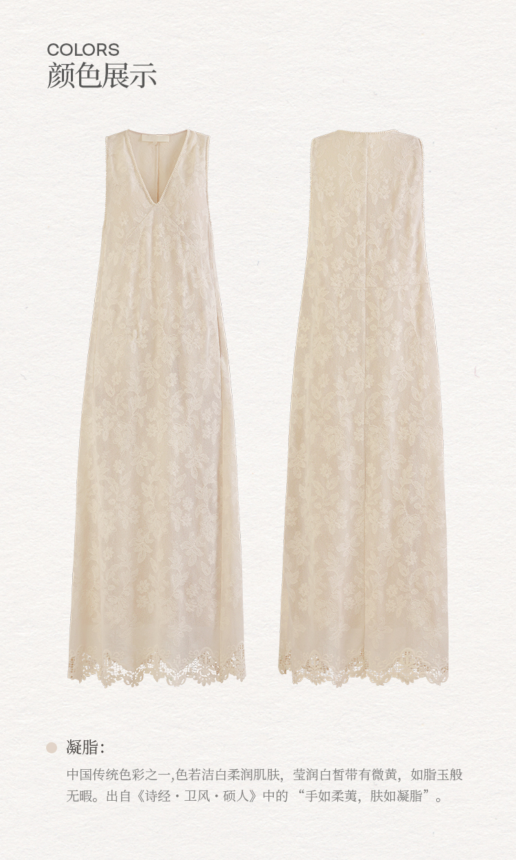 Nian Shier [Xiaoya·Qianbian] Grass and Plant Embroidery Knitted V-Neck Long Dress with Beaded Lace Chinese-Style Dress