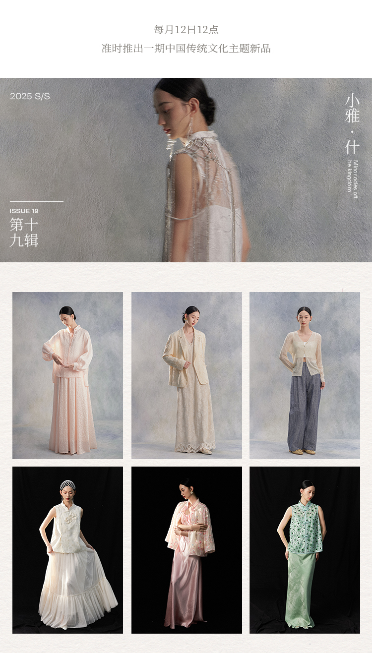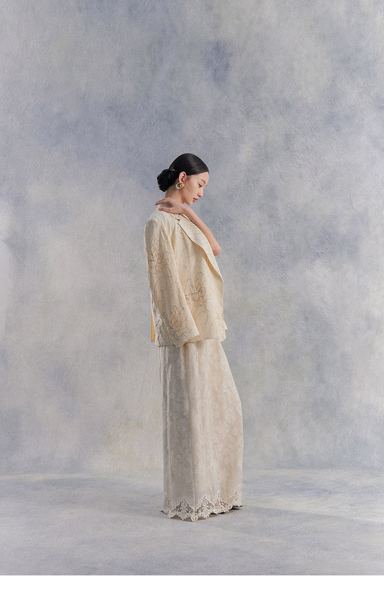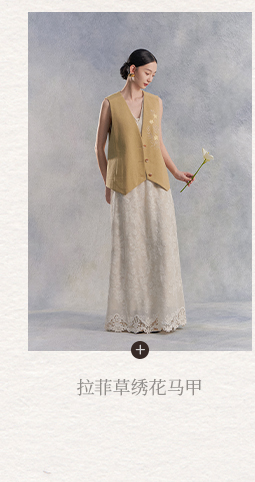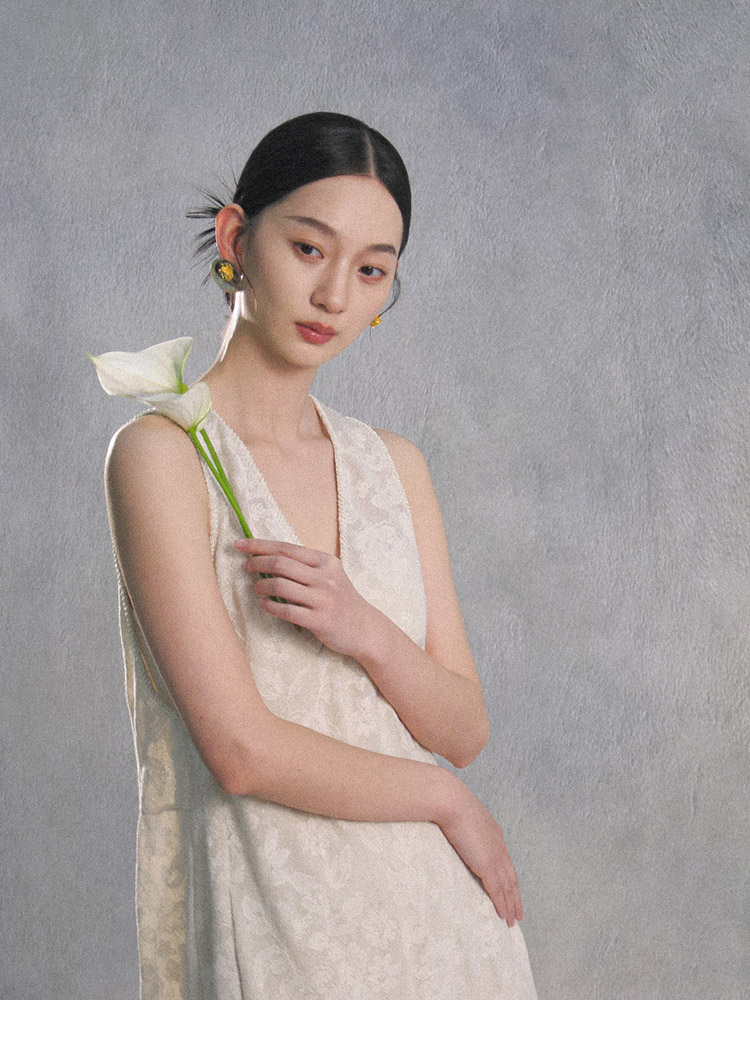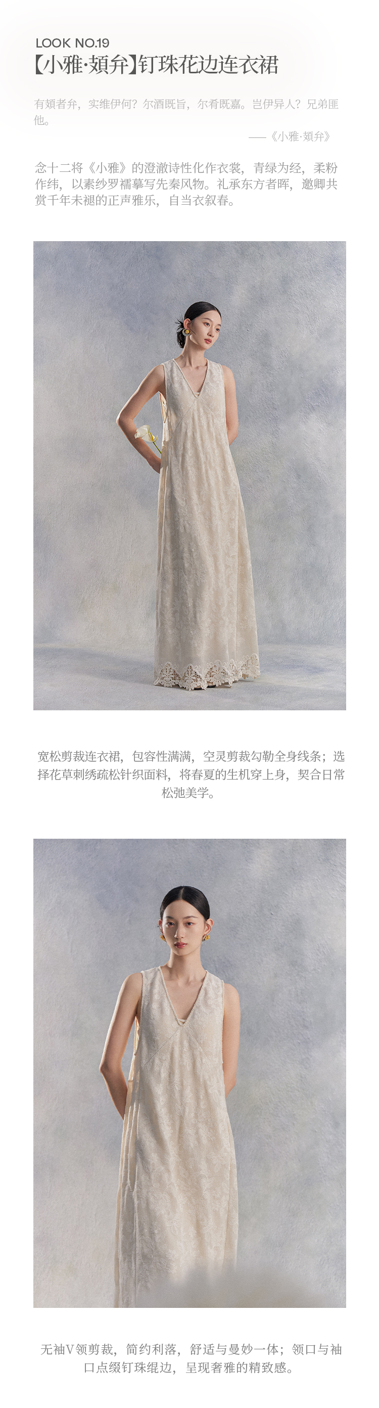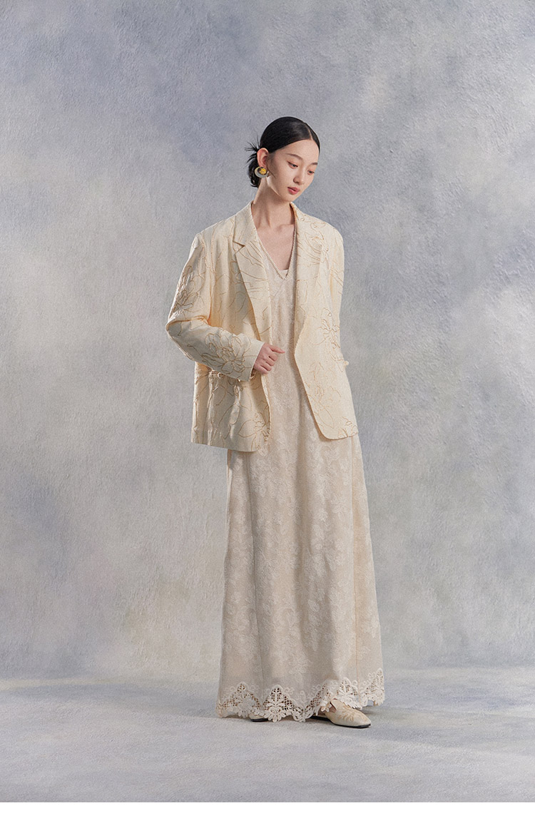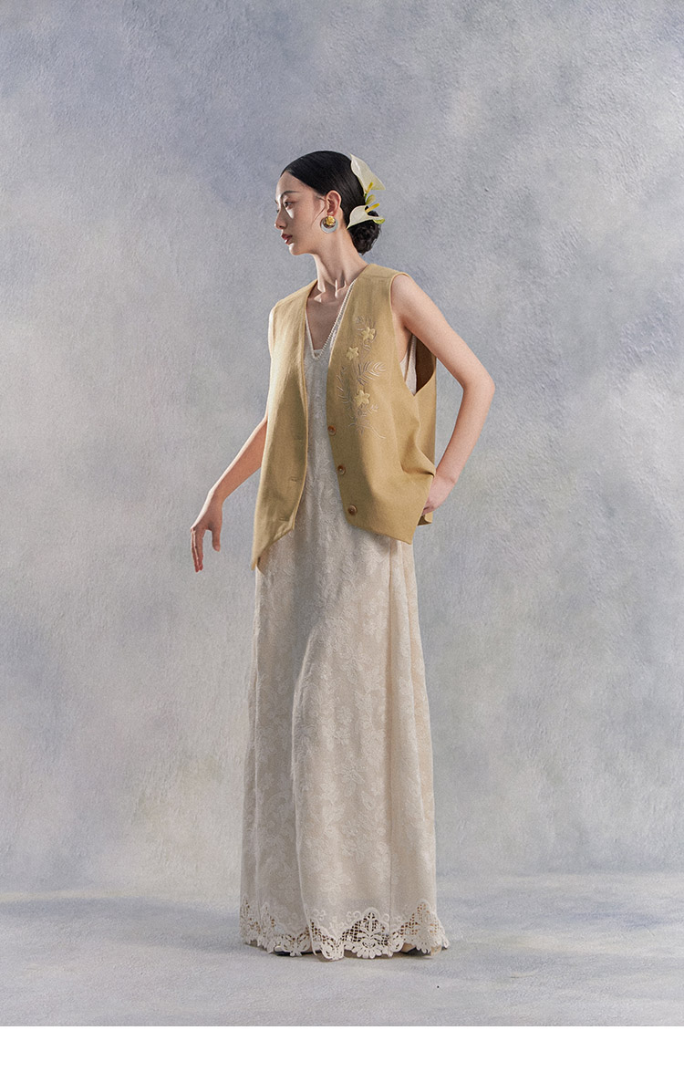 Nian Shier [Xiaoya·Qianbian] Grass and Plant Embroidery Knitted V-Neck Long Dress with Beaded Lace Chinese-Style Dress