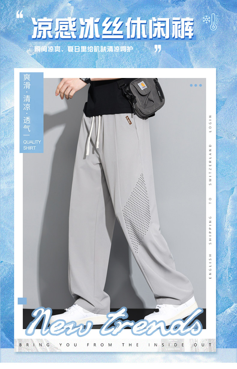 Ice Silk Scimitar Pants for Men, Summer Thin Sports Pants, Quick-Drying Sun Protection Summer Pants, Loose Straight Casual Long Pants