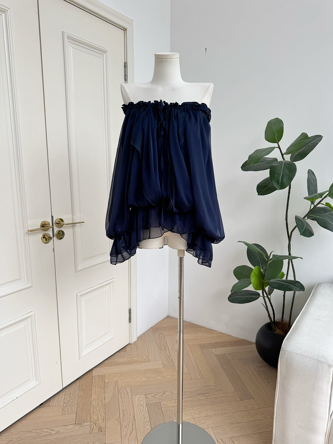 Mid-September Tiancai Blues* Mature Korean-Style Off-Shoulder Long-Sleeve Chiffon Loose and Gentle Design Flowing Top