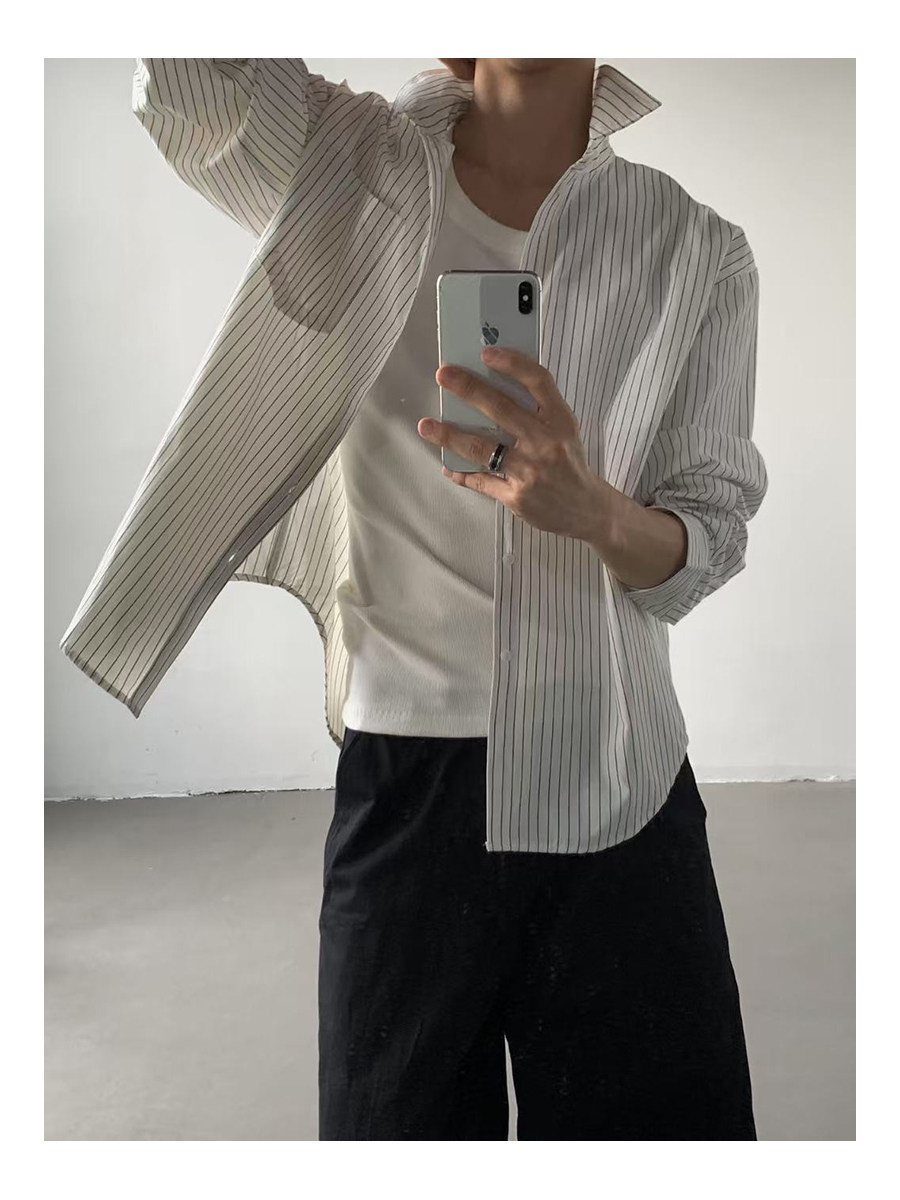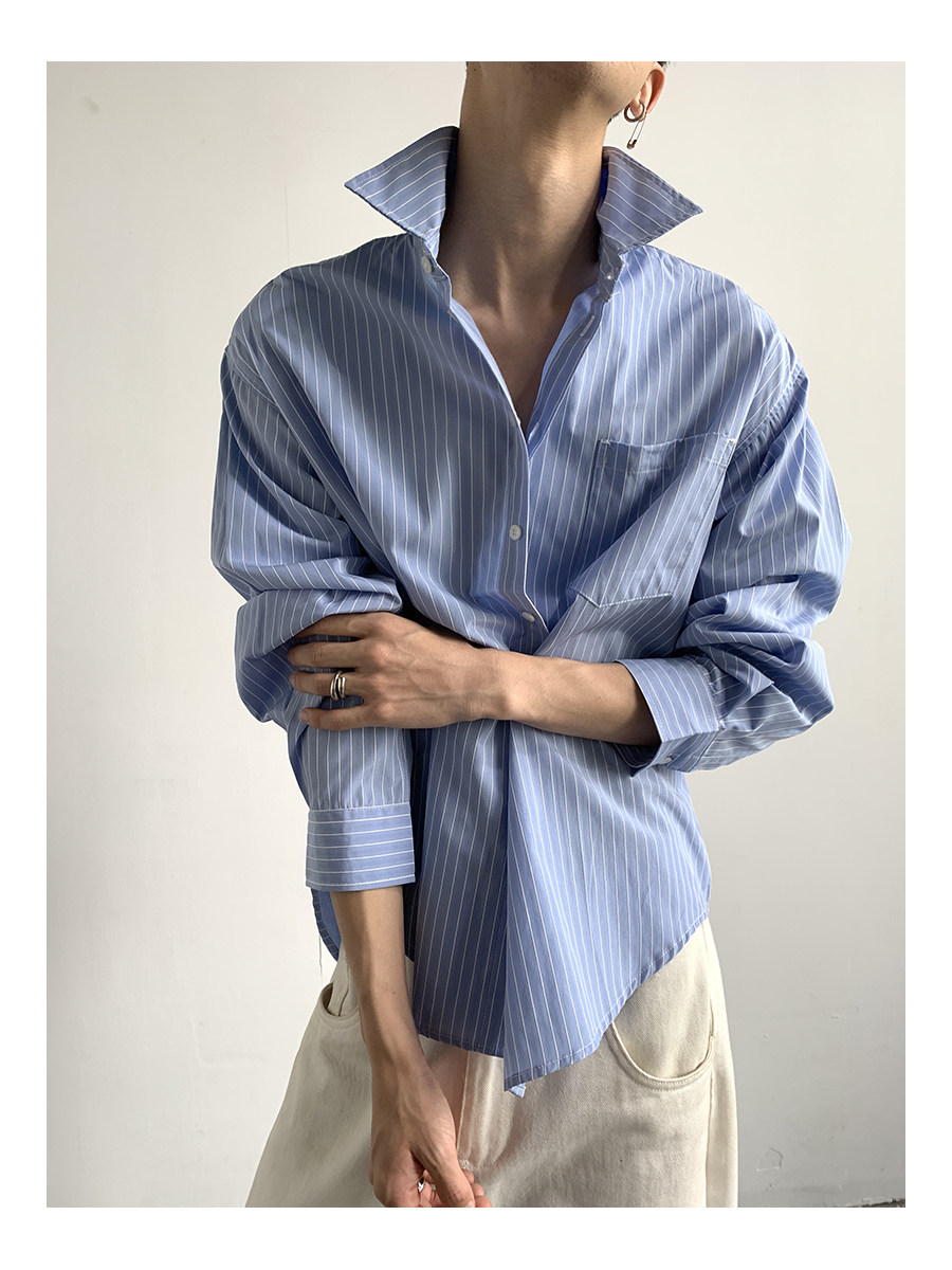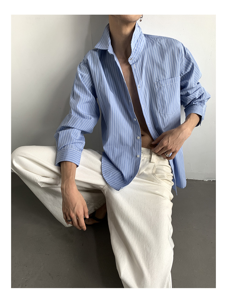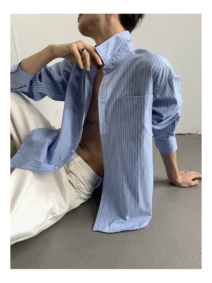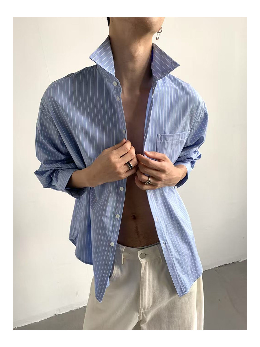 Mion Long-Termism Korean Style Casual Striped Shirt Design, Lazy Style Long-Sleeved Shirt for Men and Women