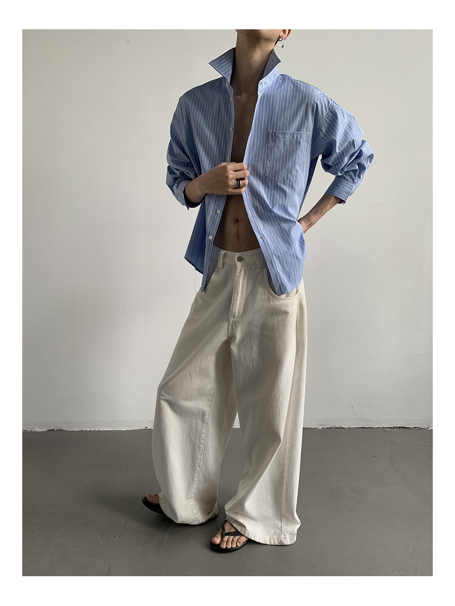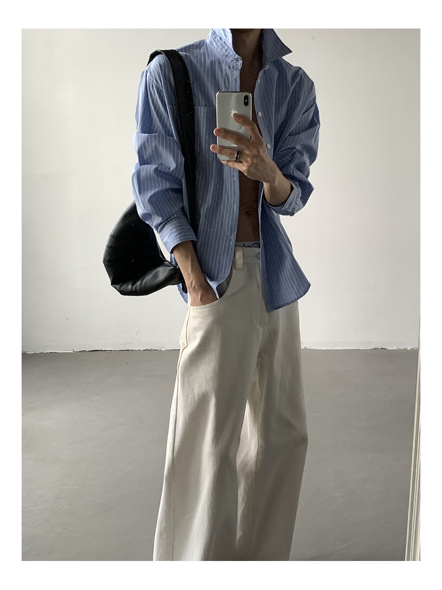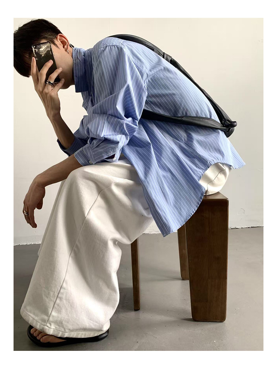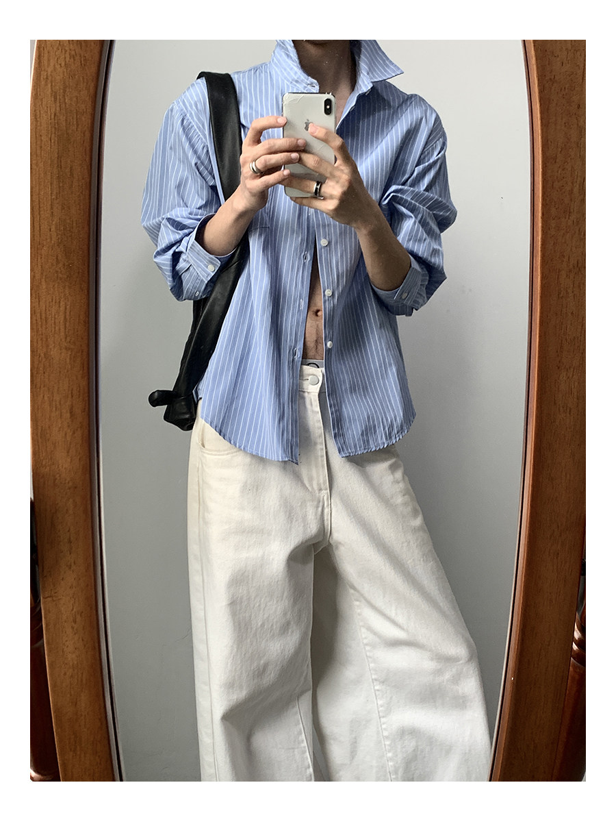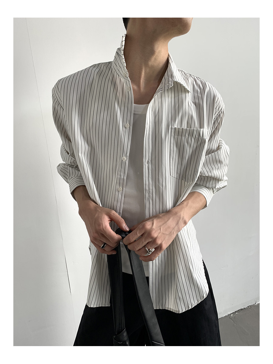 Mion Long-Termism Korean Style Casual Striped Shirt Design, Lazy Style Long-Sleeved Shirt for Men and Women