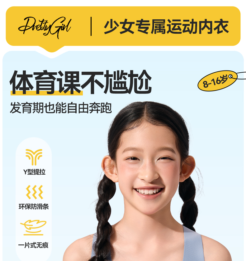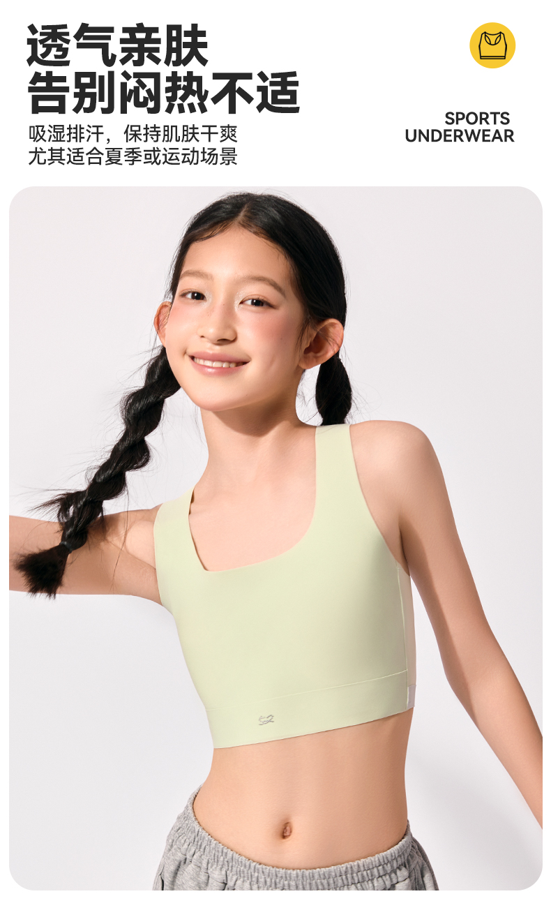 P52 Developmental Stage Girls' Underwear for Students, High School Girls, Sports Shockproof First Stage Girls' Underwear, Children's Bra