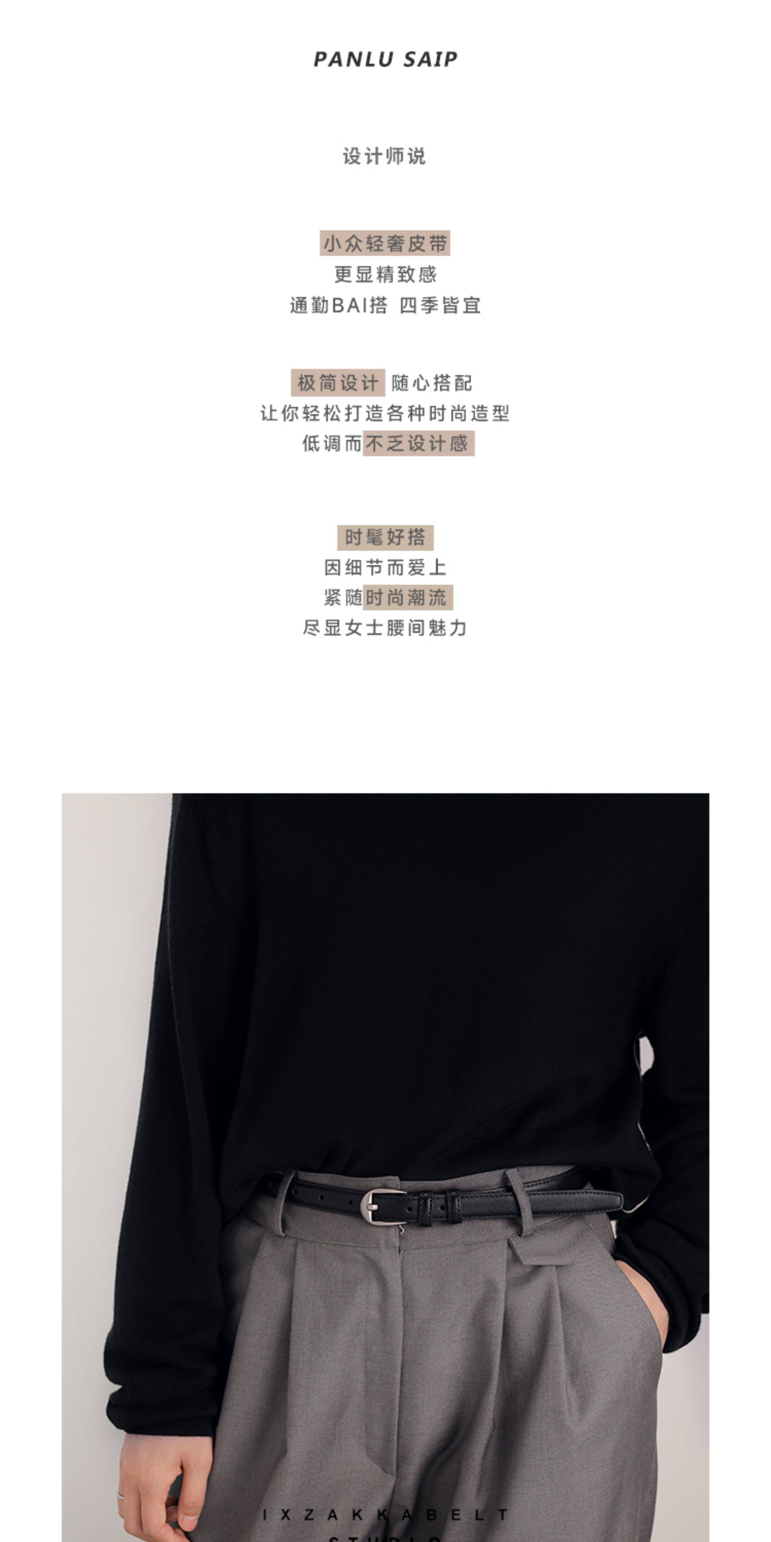 Yuppie Fashionable Commuter Style ~ Black Small Belt 2025 Spring New Skirt Accessory ins Simple Versatile Belt