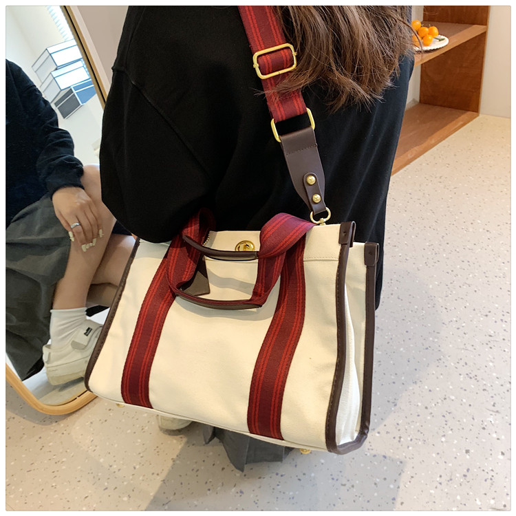 Red Canvas Tote Bag for Women, Large Capacity, 2025 New Trendy Style, Suitable for College Students, Shoulder Bag, Crossbody Bag