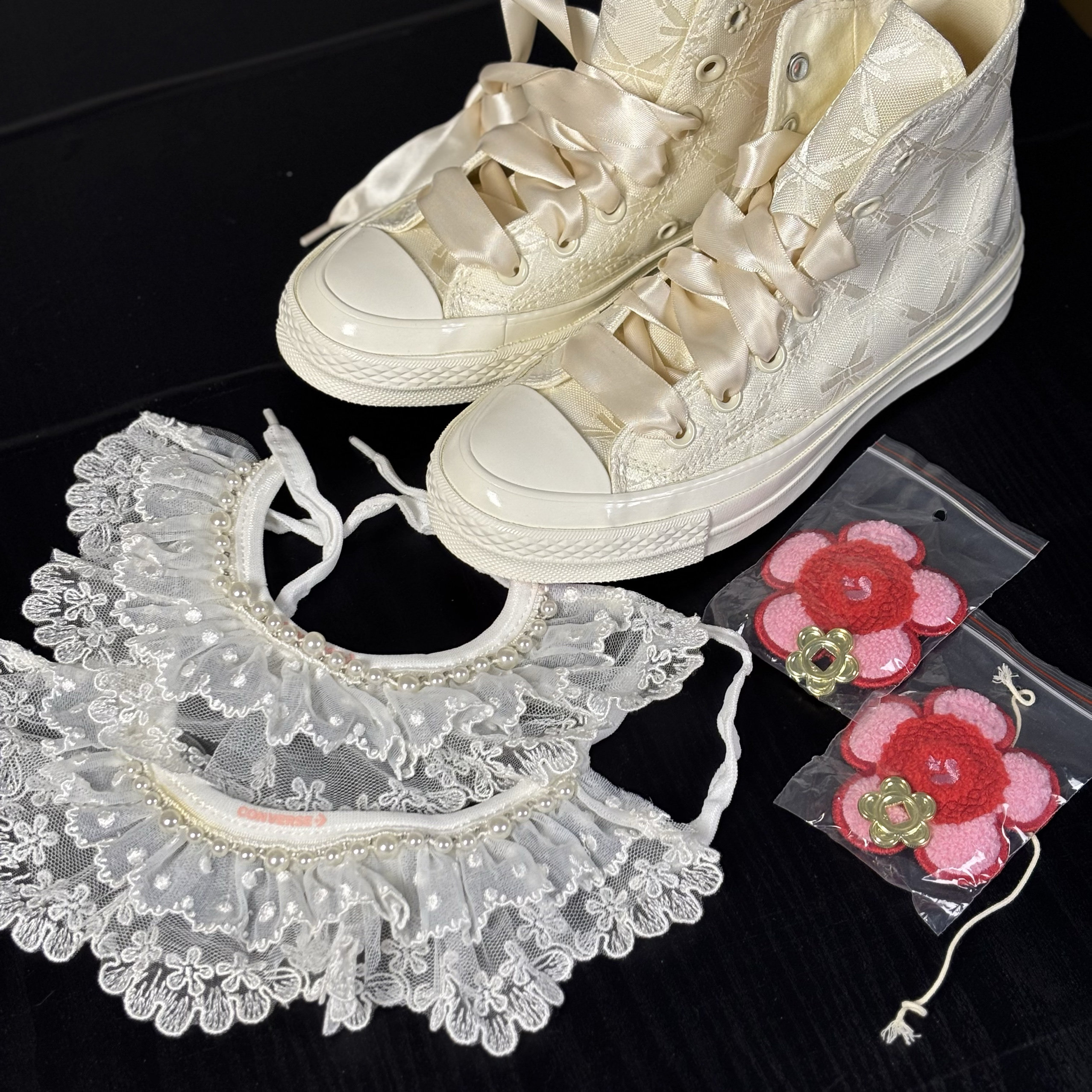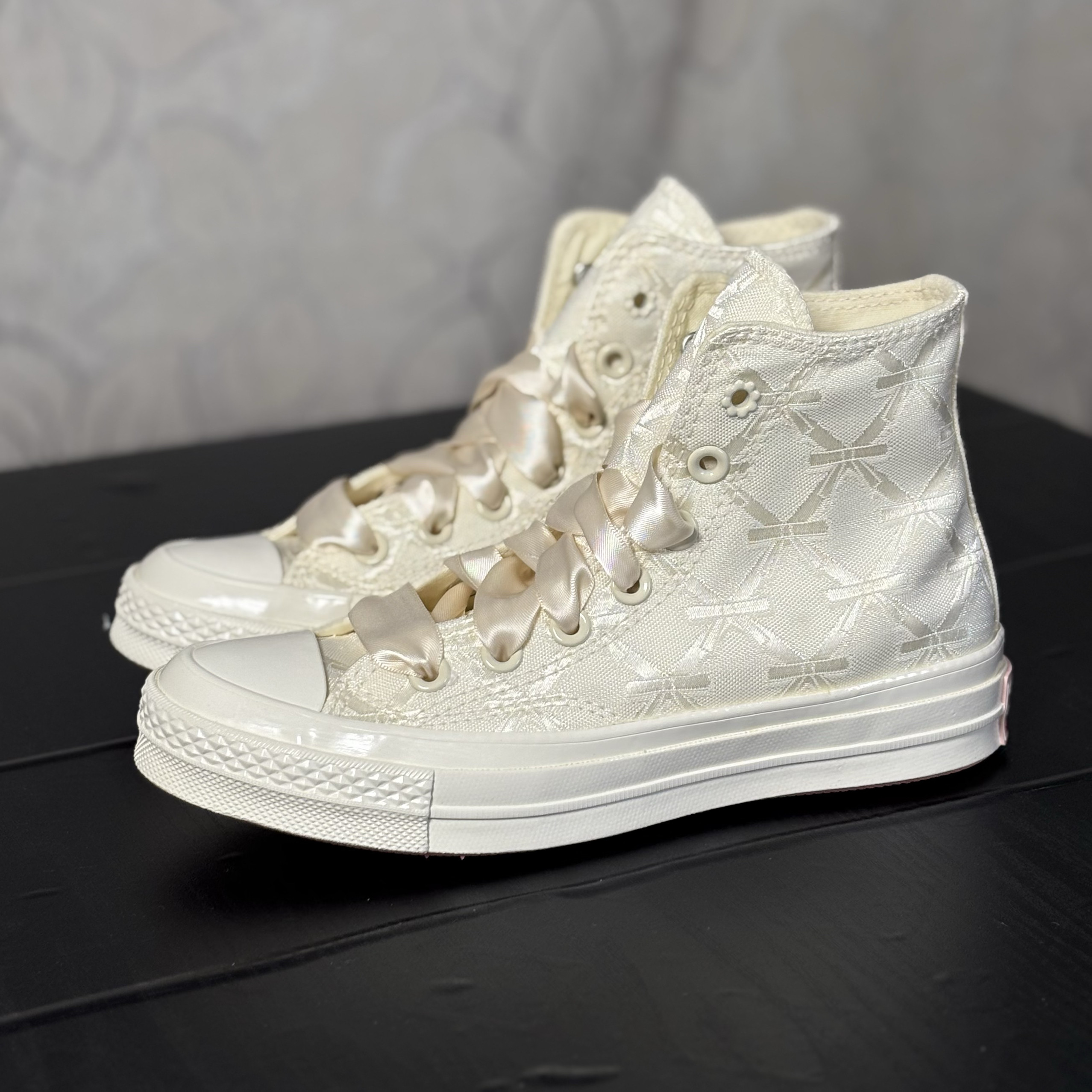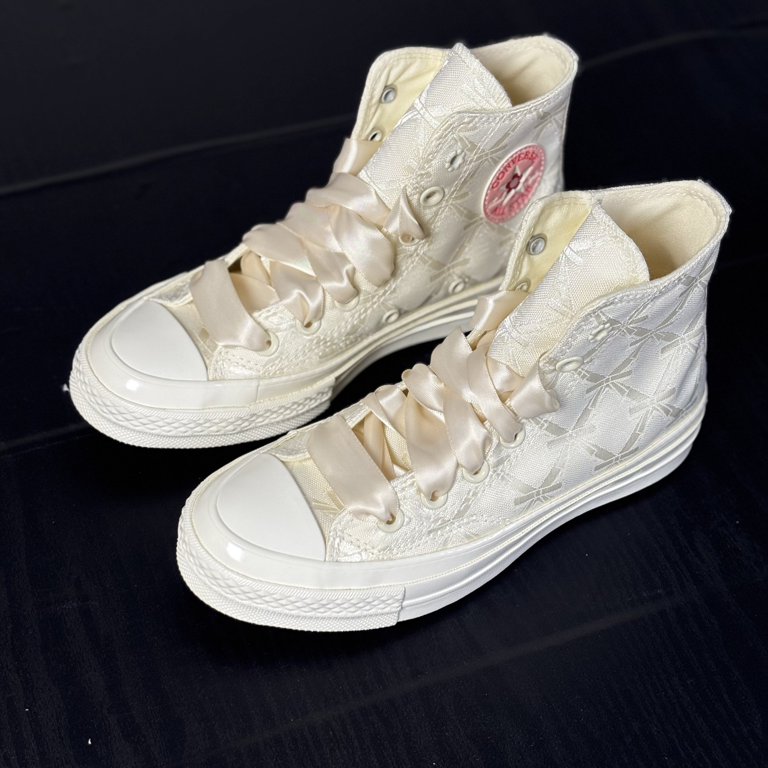Converse 1970S Beige Lace Pearl Floral Design Wedding Shoes Women's High-Top Canvas Shoes A11616C N Warehouse
