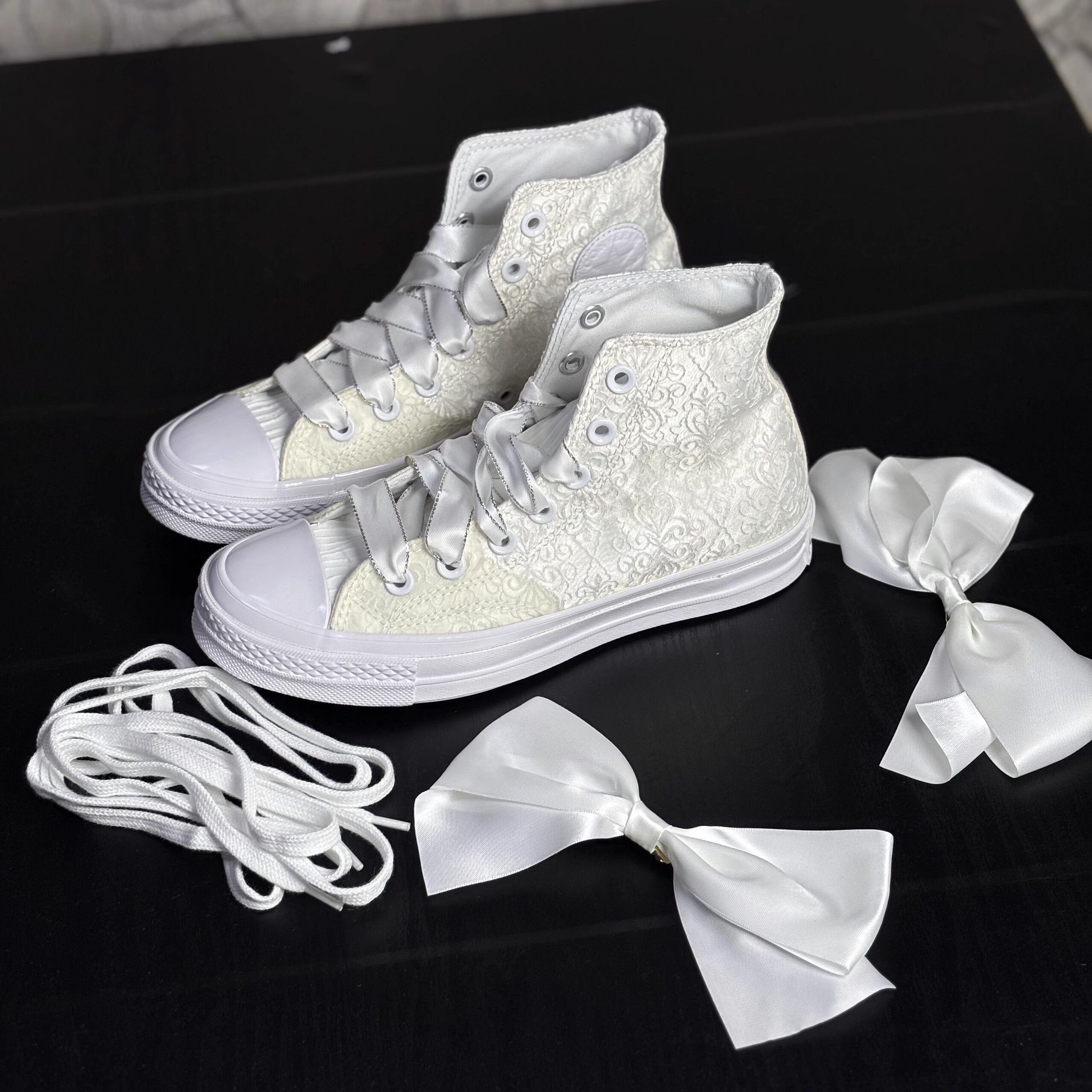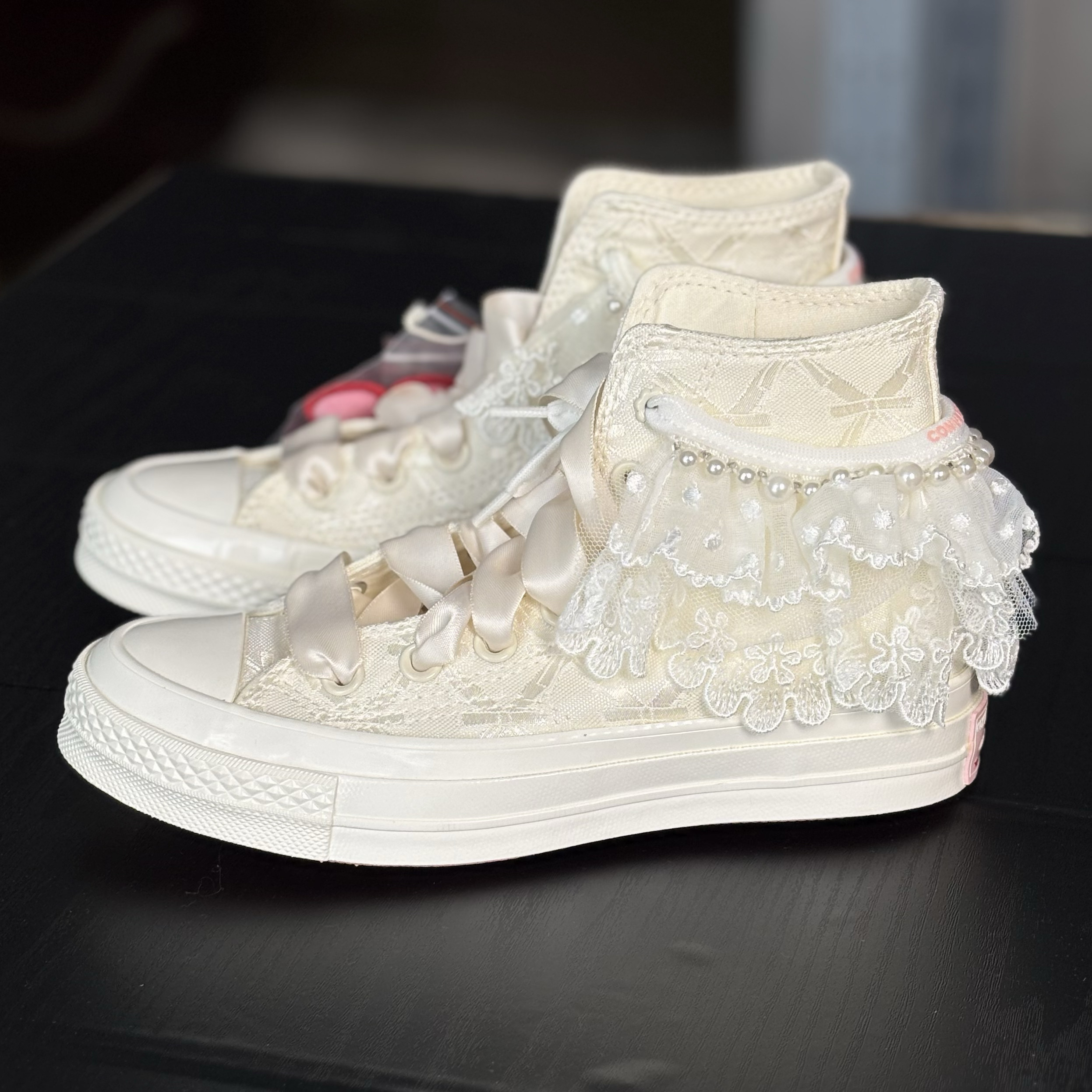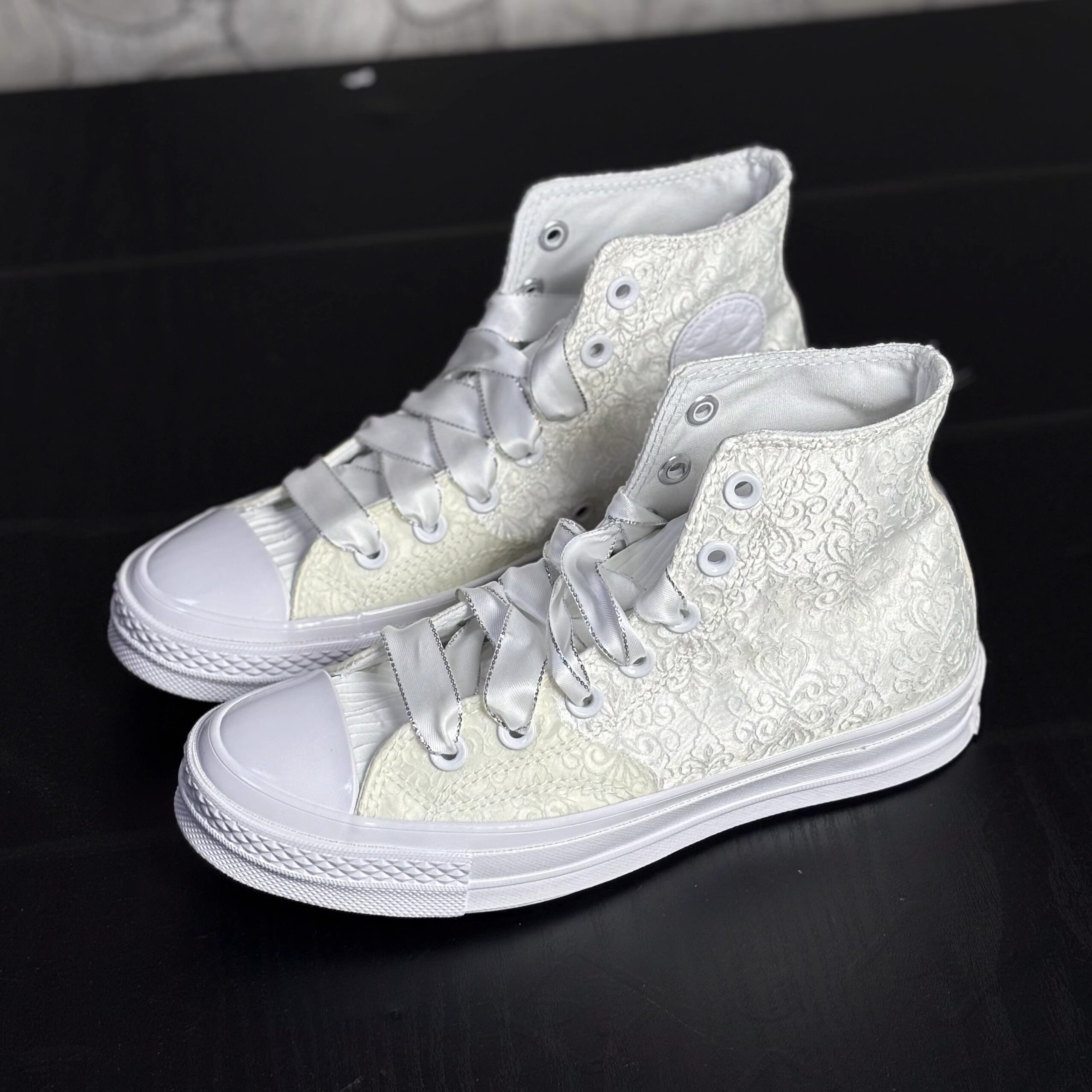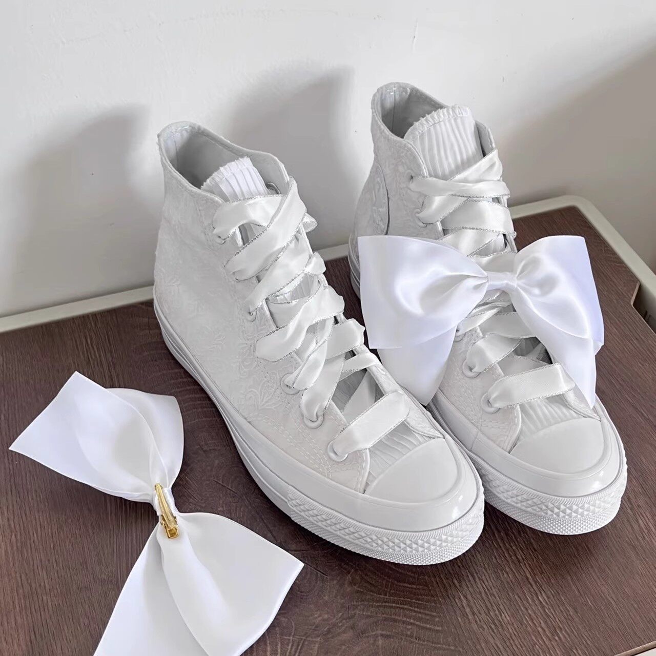 Converse 1970S Beige Lace Pearl Floral Design Wedding Shoes Women's High-Top Canvas Shoes A11616C N Warehouse