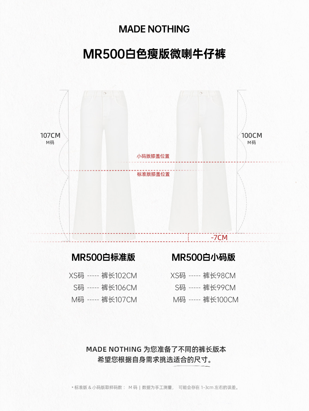 Made Nothing Mid-Waist Mr500 New White High-End Flare Slim-Fit Slightly Flared Stretch Jeans for Women