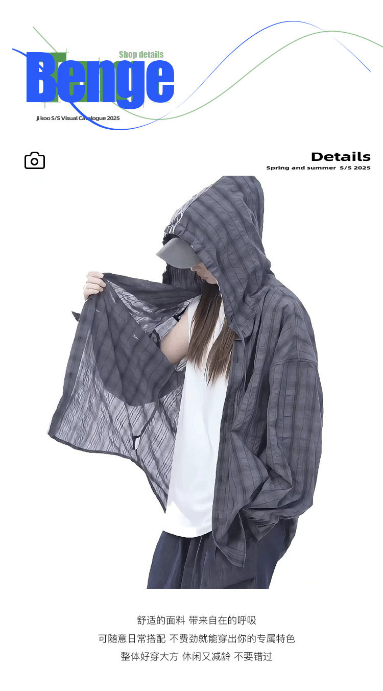 Hooded Sun Protection Shirt, Women's Cardigan, Summer Lightweight Jacket, Loose and Lazy Style, Large Size Blouse Top