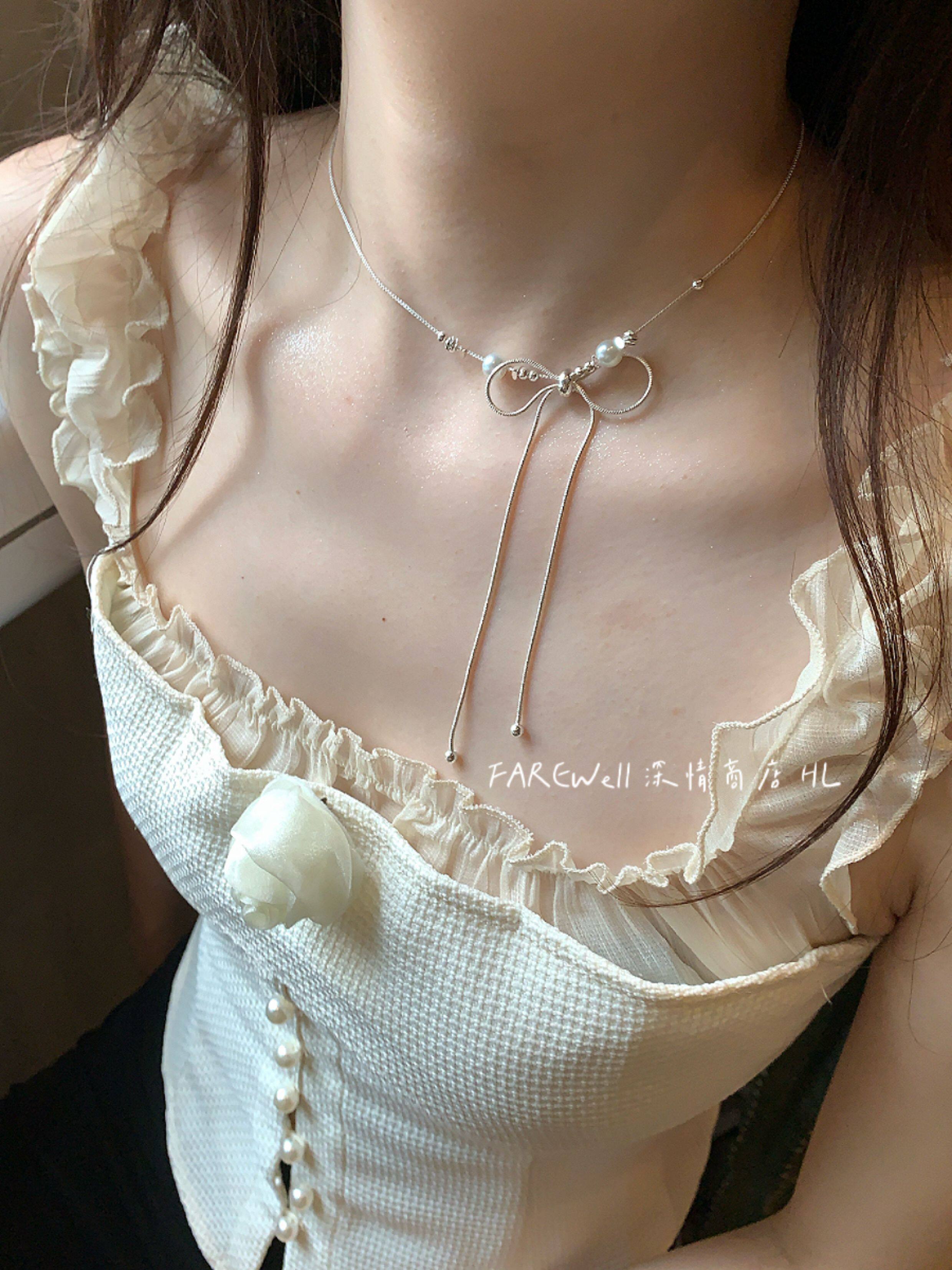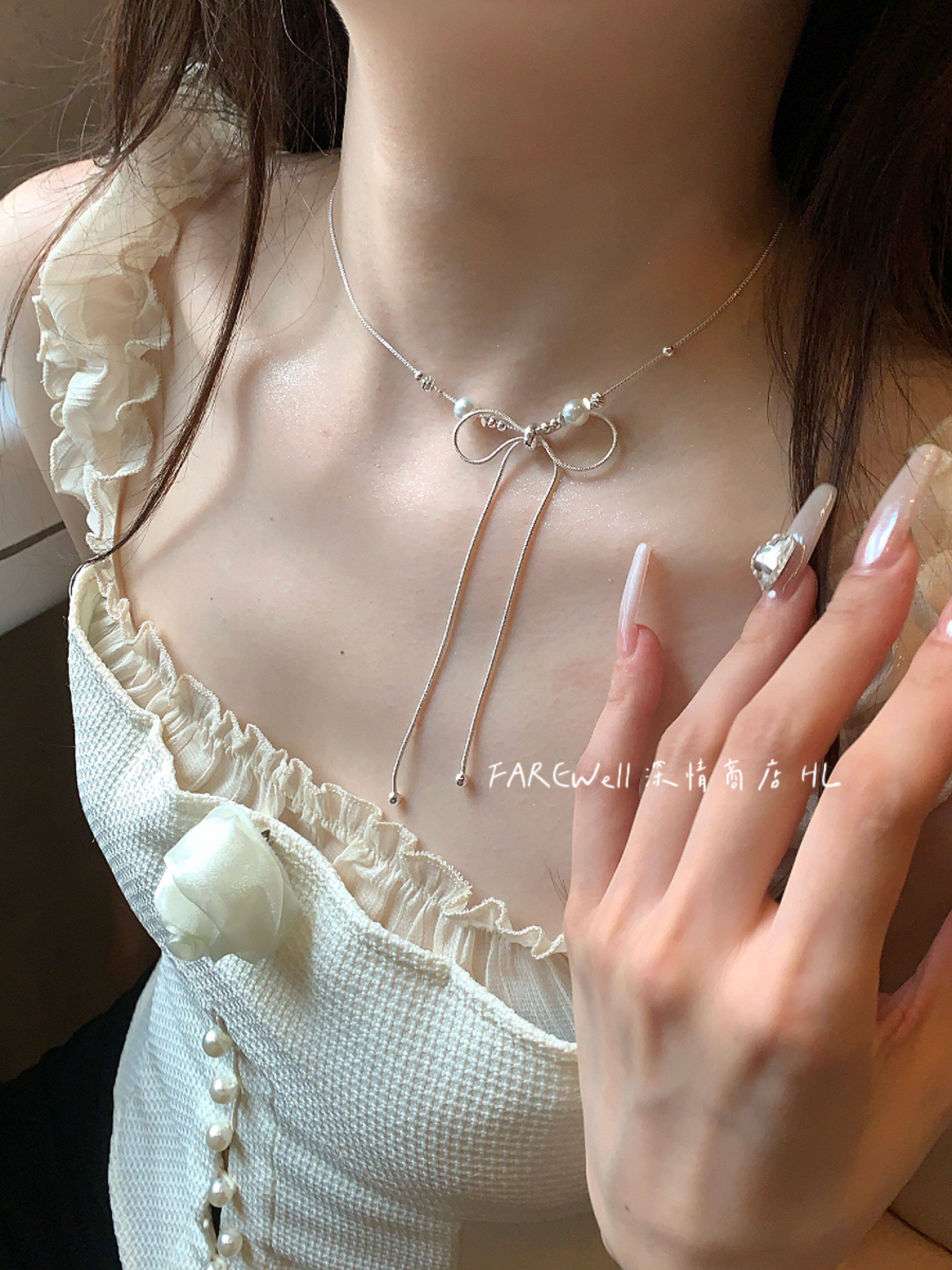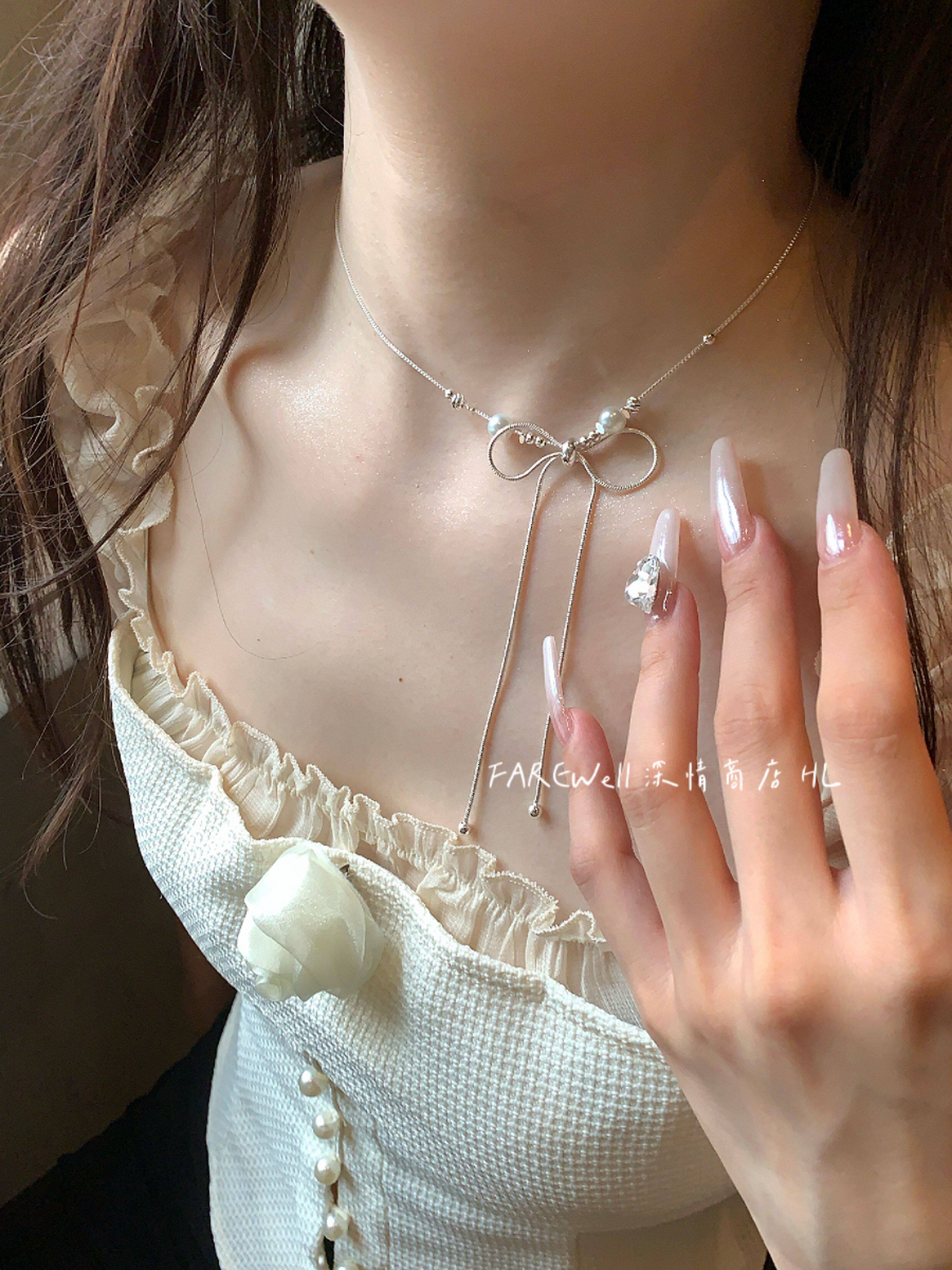 Super Beautiful ins Bowknot Necklace, Light Luxury Niche Women's Clavicle Chain, 2026 New Popular Choker, Snake Bone Chain Accessory