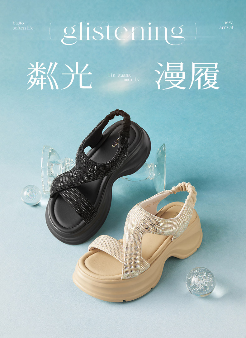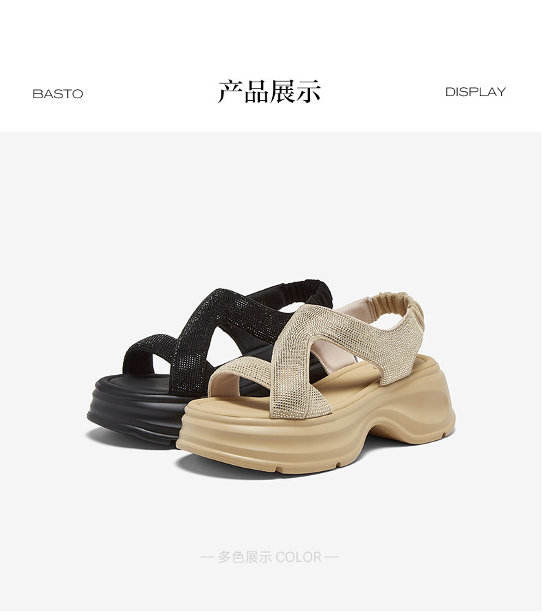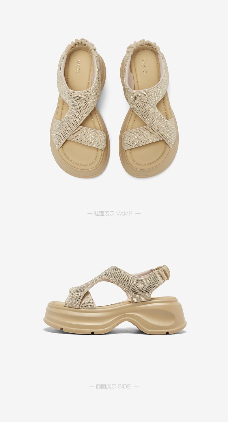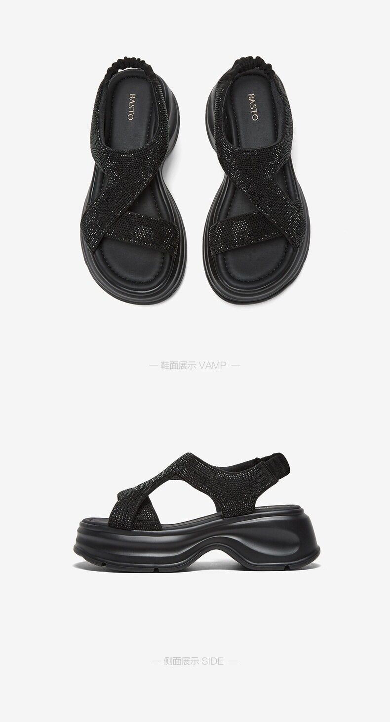 Bestu 2025 Summer New Fashion Rhinestone Thick-Soled Height-Increasing Sandals for Women Casual Sandals Bp731Bl5