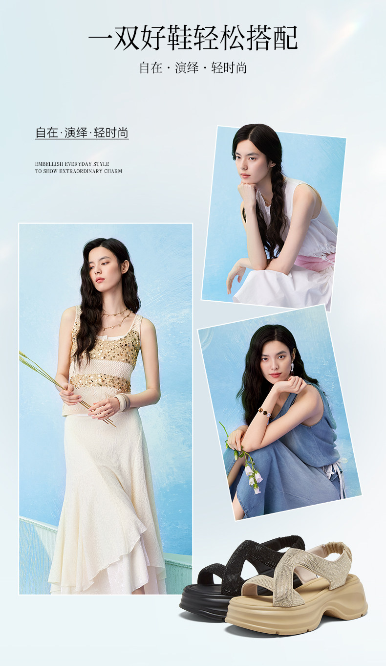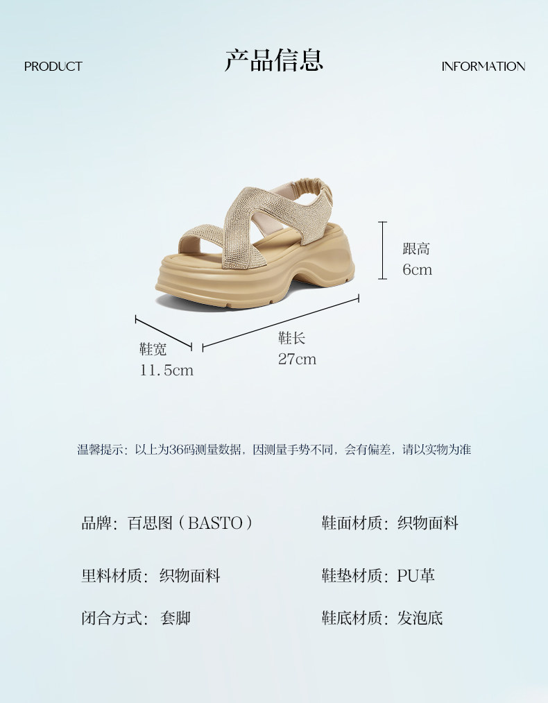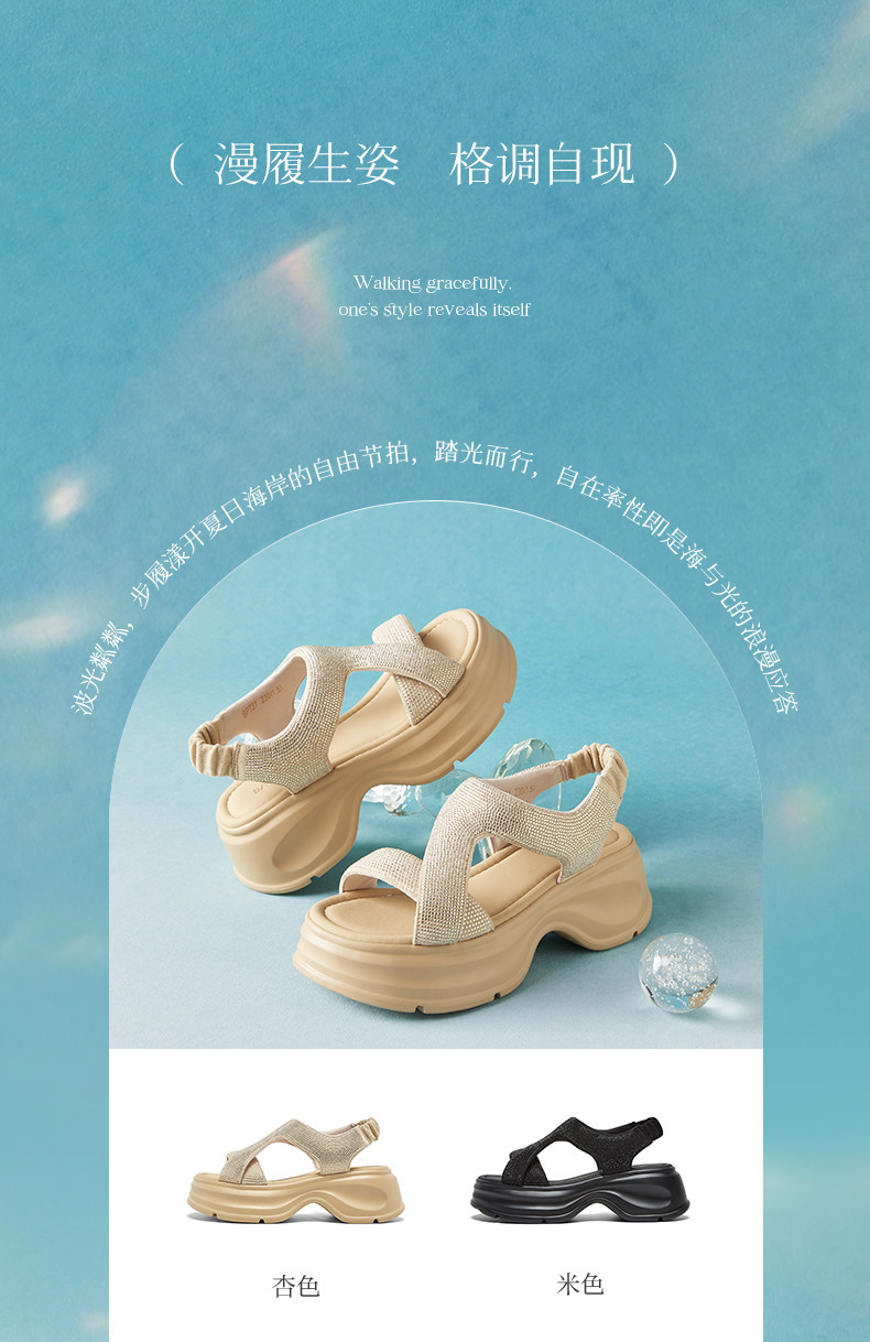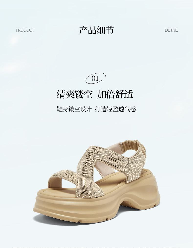 Bestu 2025 Summer New Fashion Rhinestone Thick-Soled Height-Increasing Sandals for Women Casual Sandals Bp731Bl5