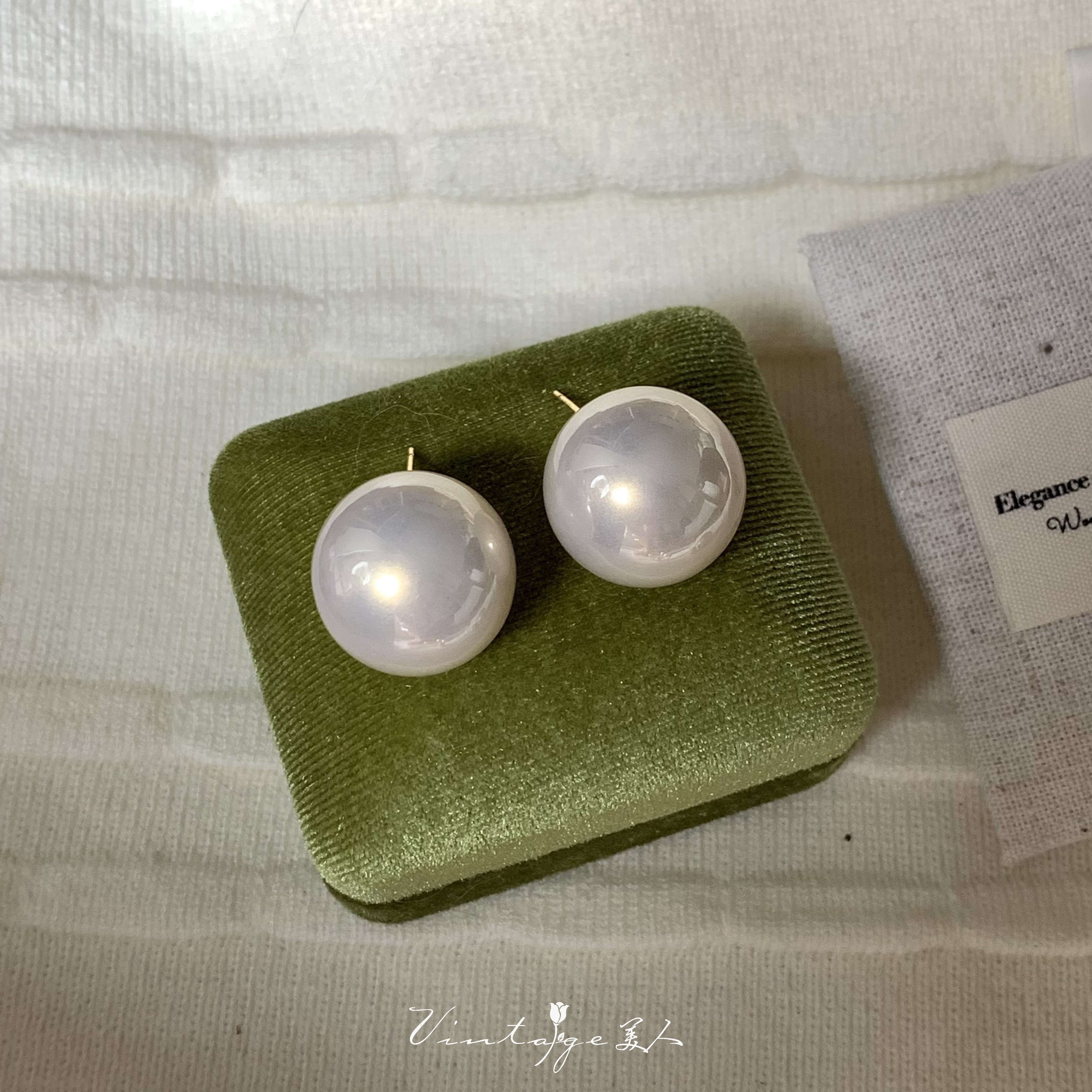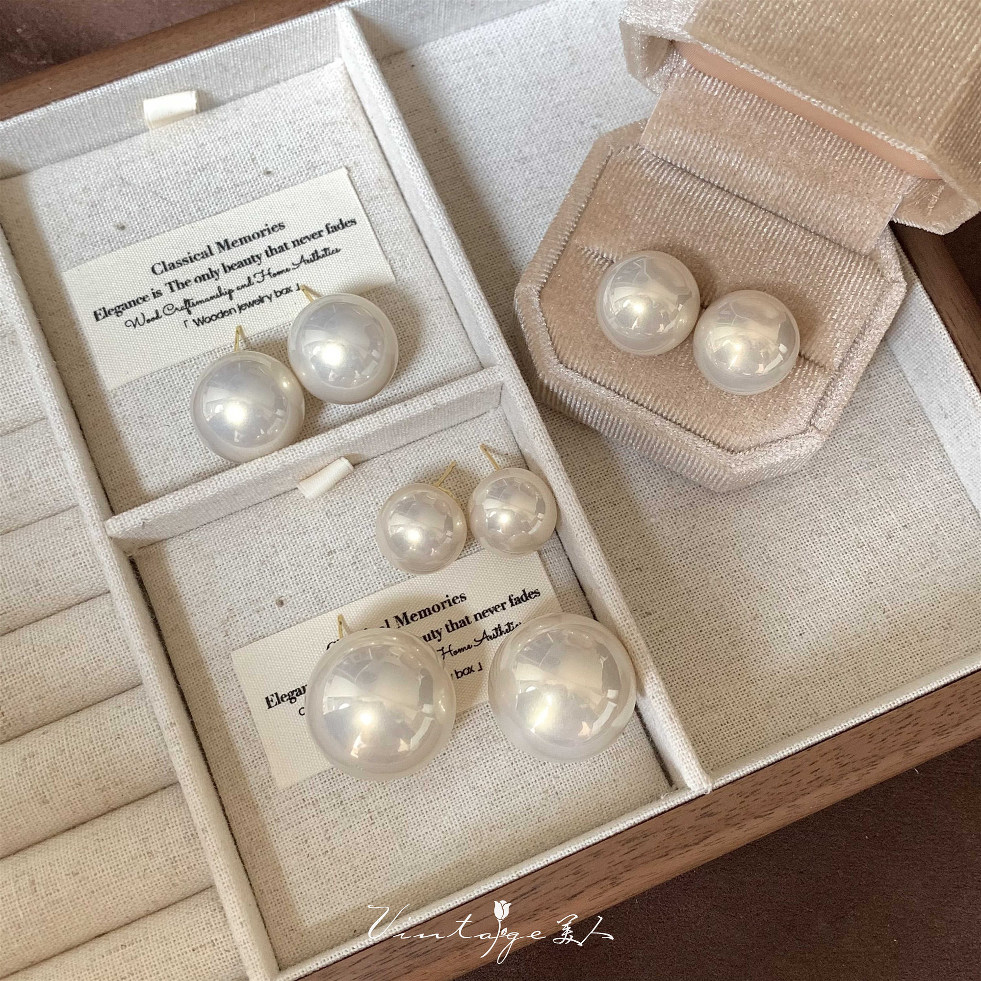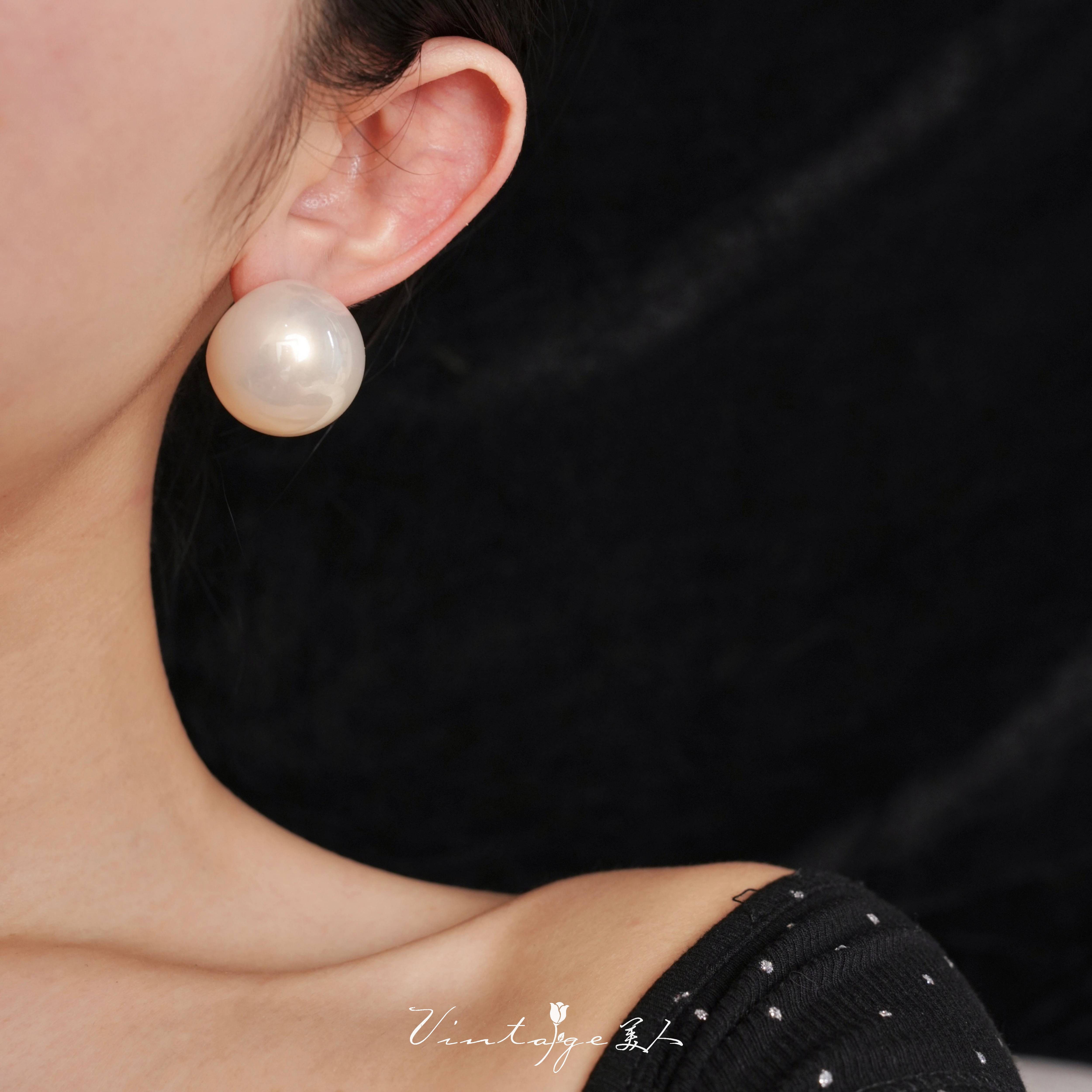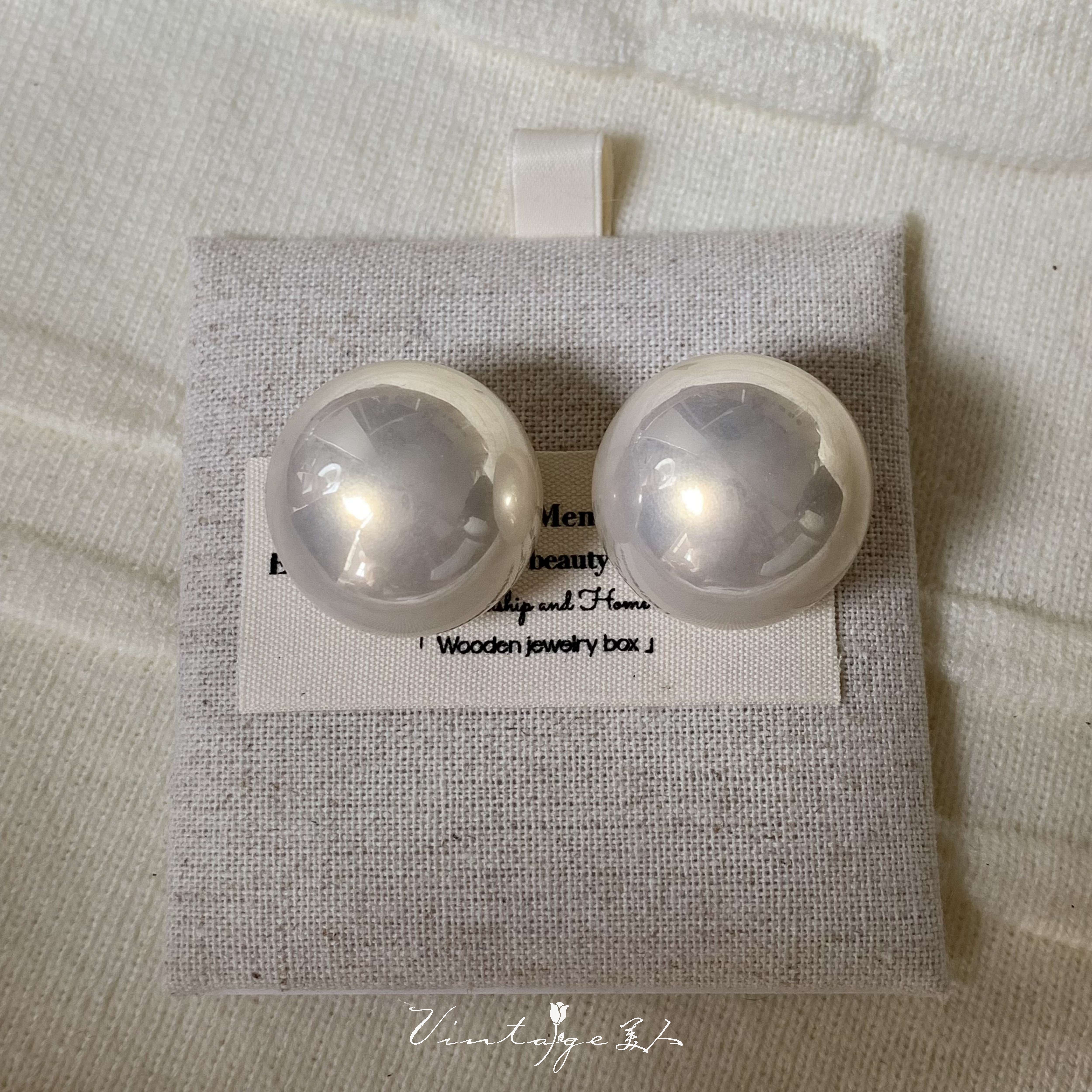 Venus ins Blogger French Retro Classic Versatile Elegant High-End Half-Round Large Pearl Earrings/Ear Clips