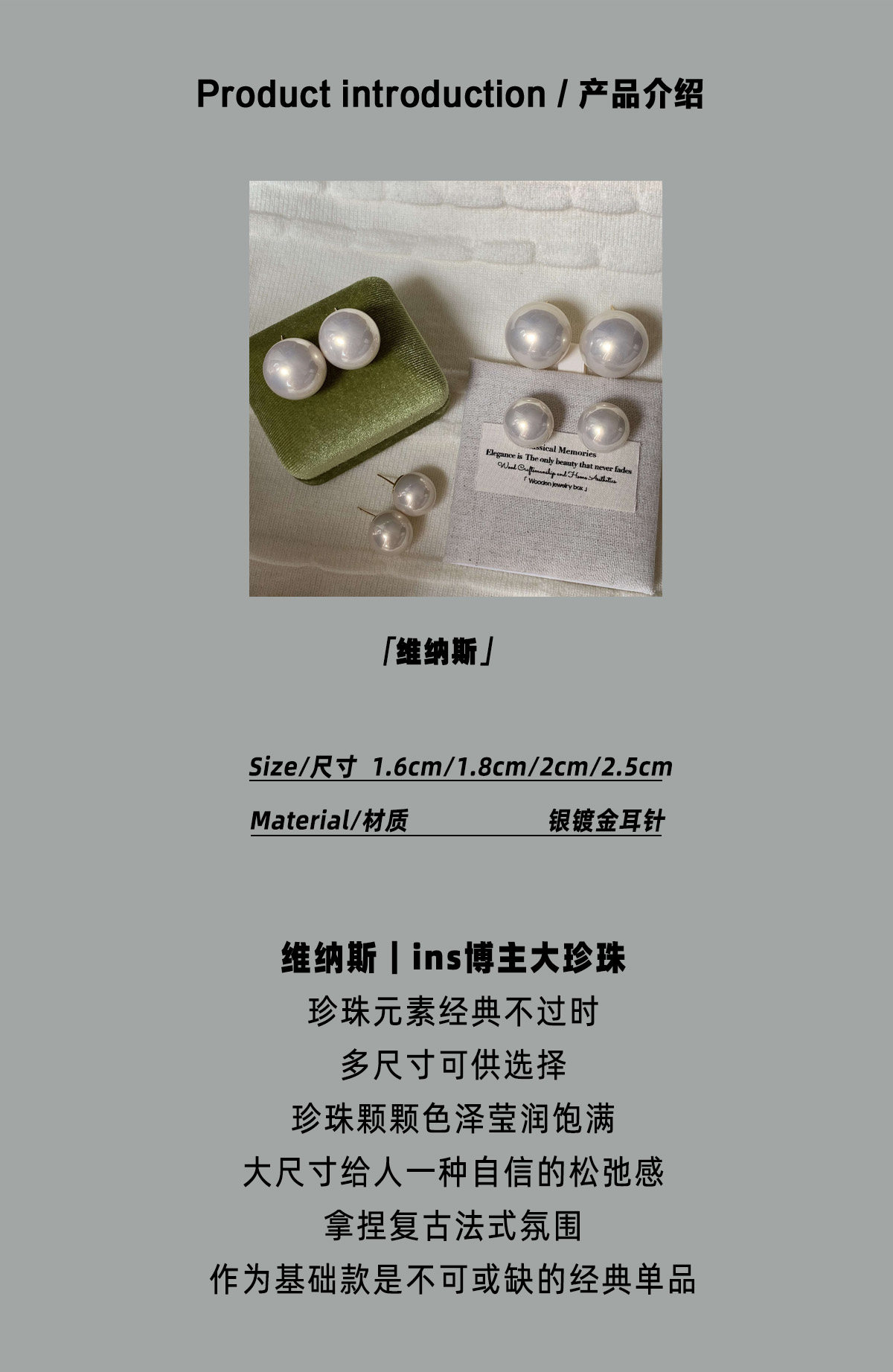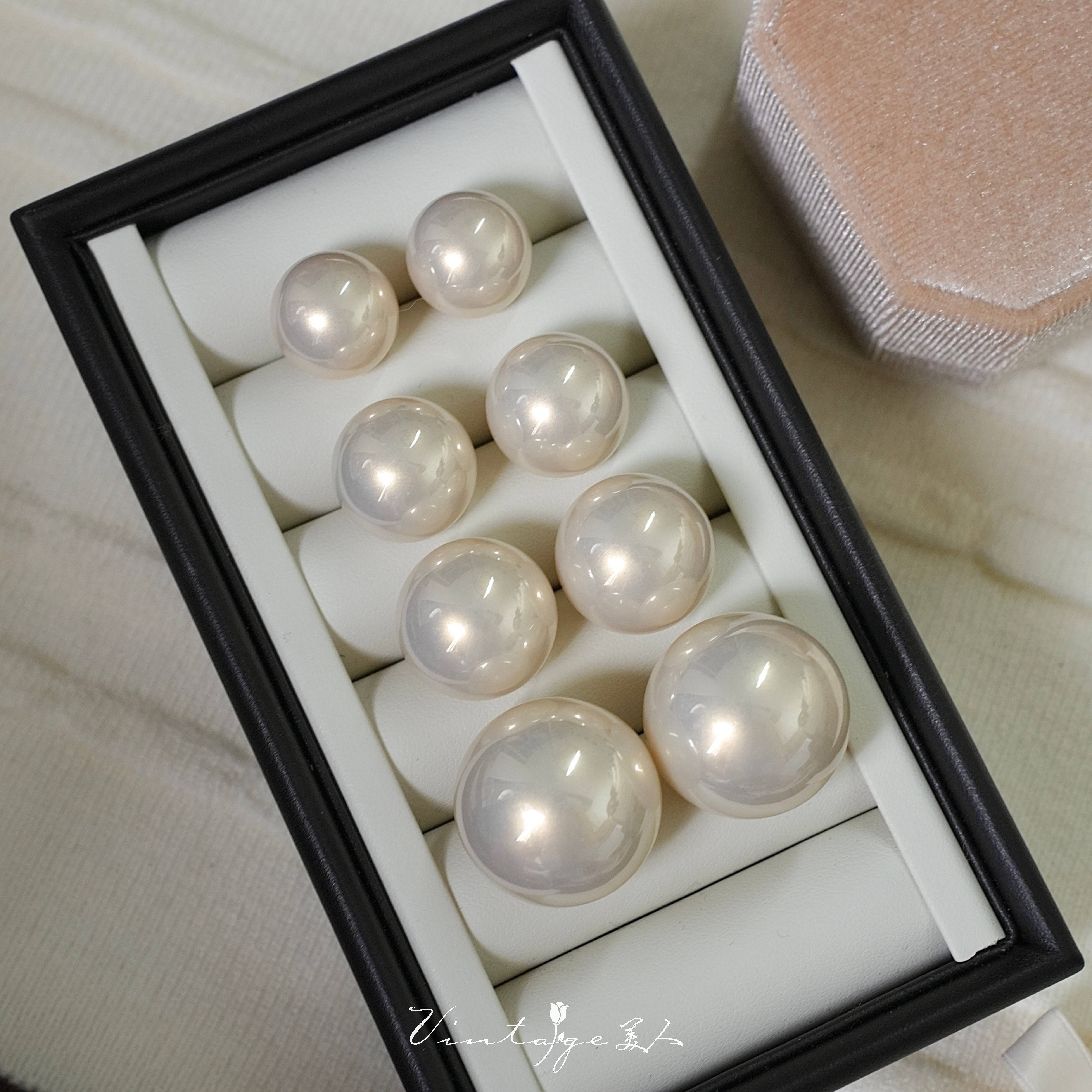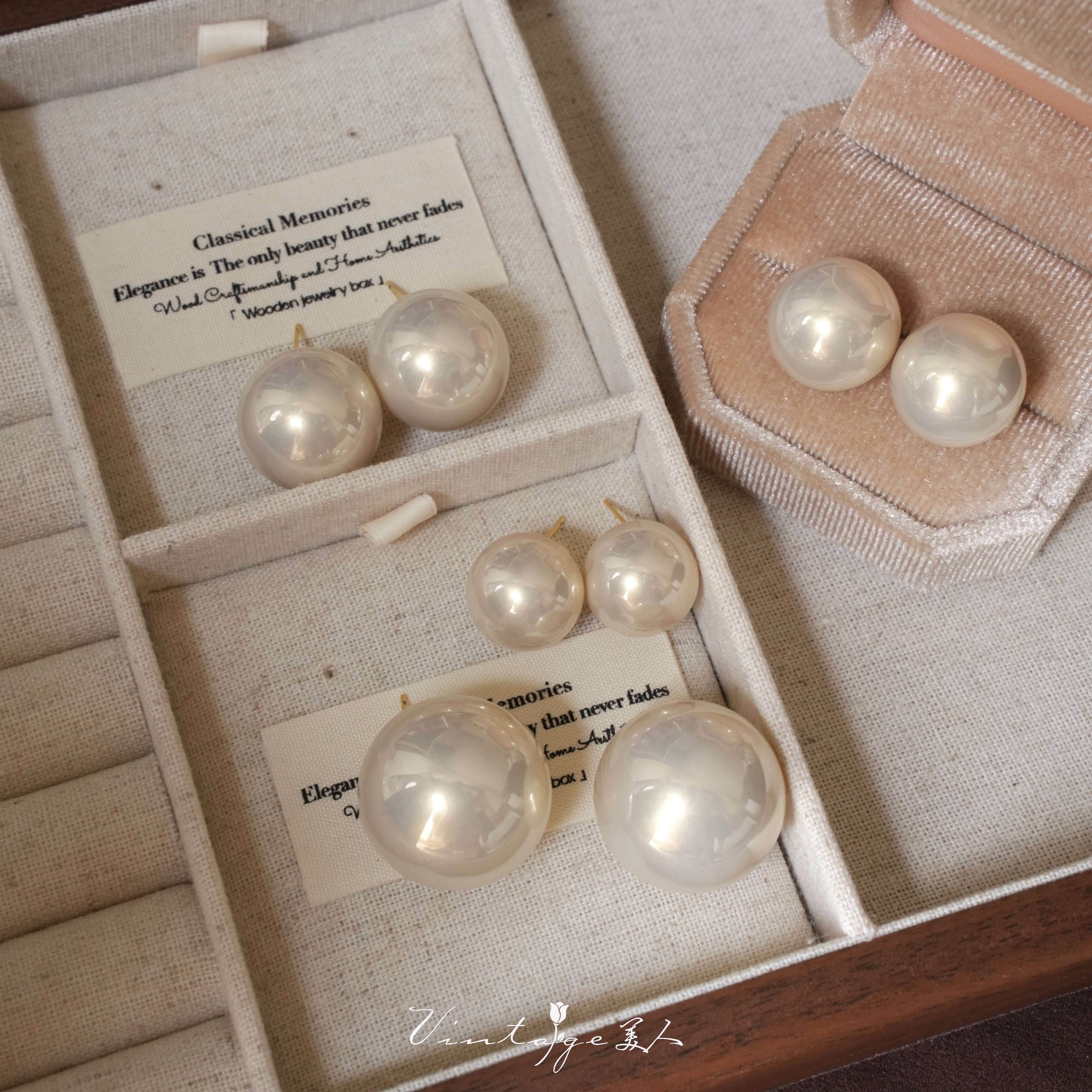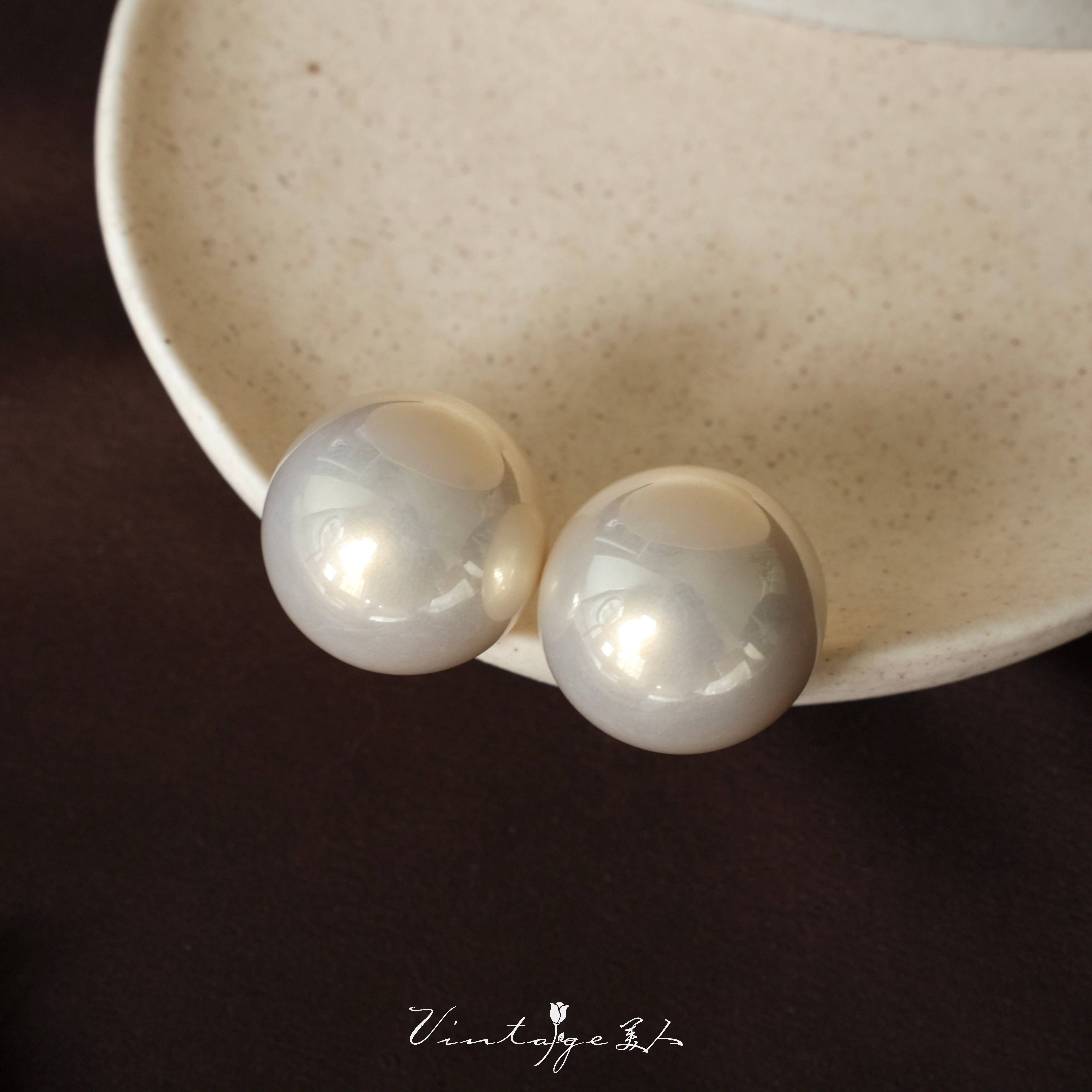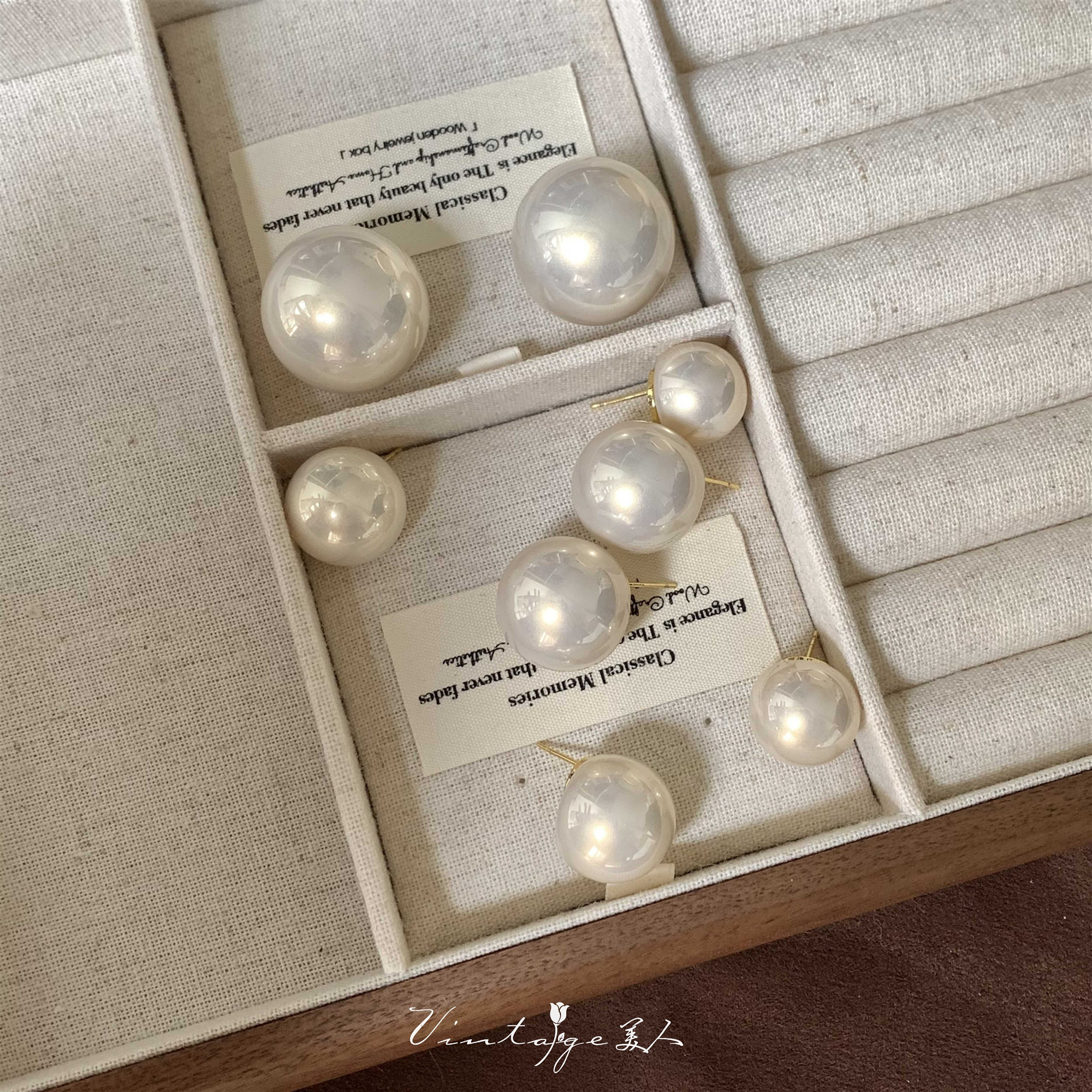 Venus ins Blogger French Retro Classic Versatile Elegant High-End Half-Round Large Pearl Earrings/Ear Clips