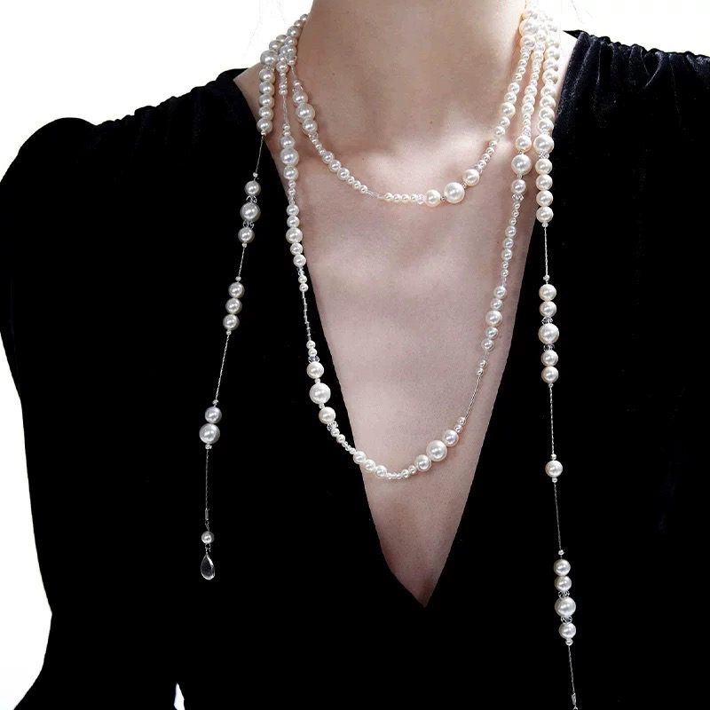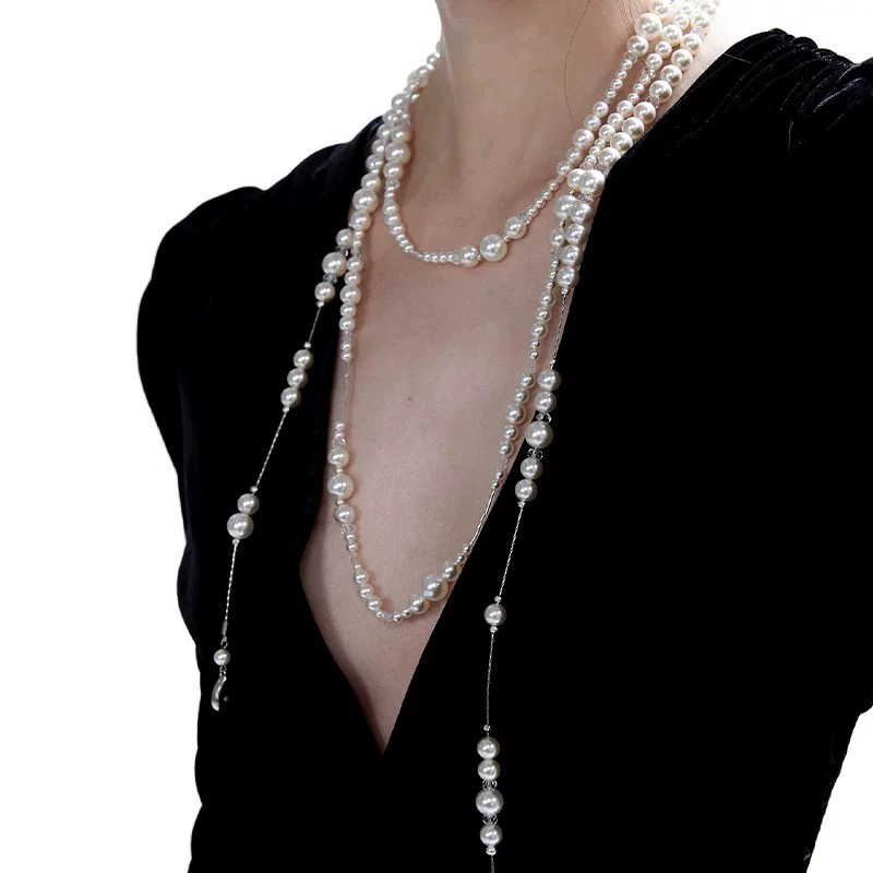Wang Sulong's Original Long Broken Pearl Necklace for Women, Multi-Layered Choker, Starry Sky Vintage Long Necklace
