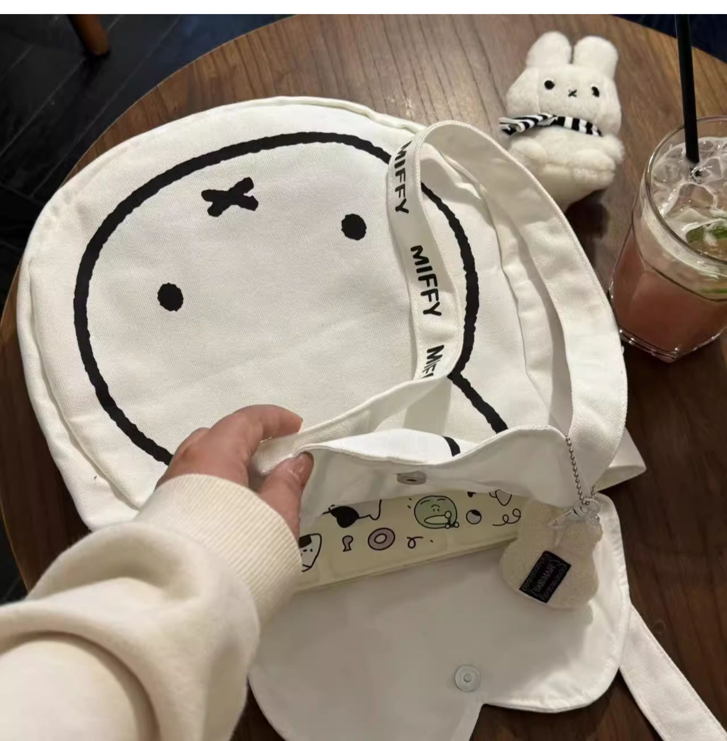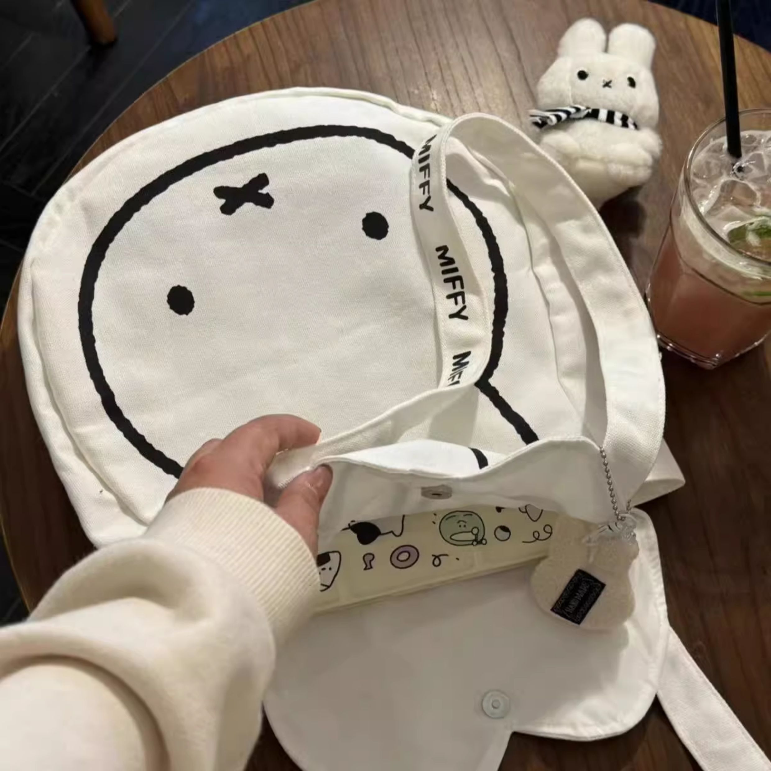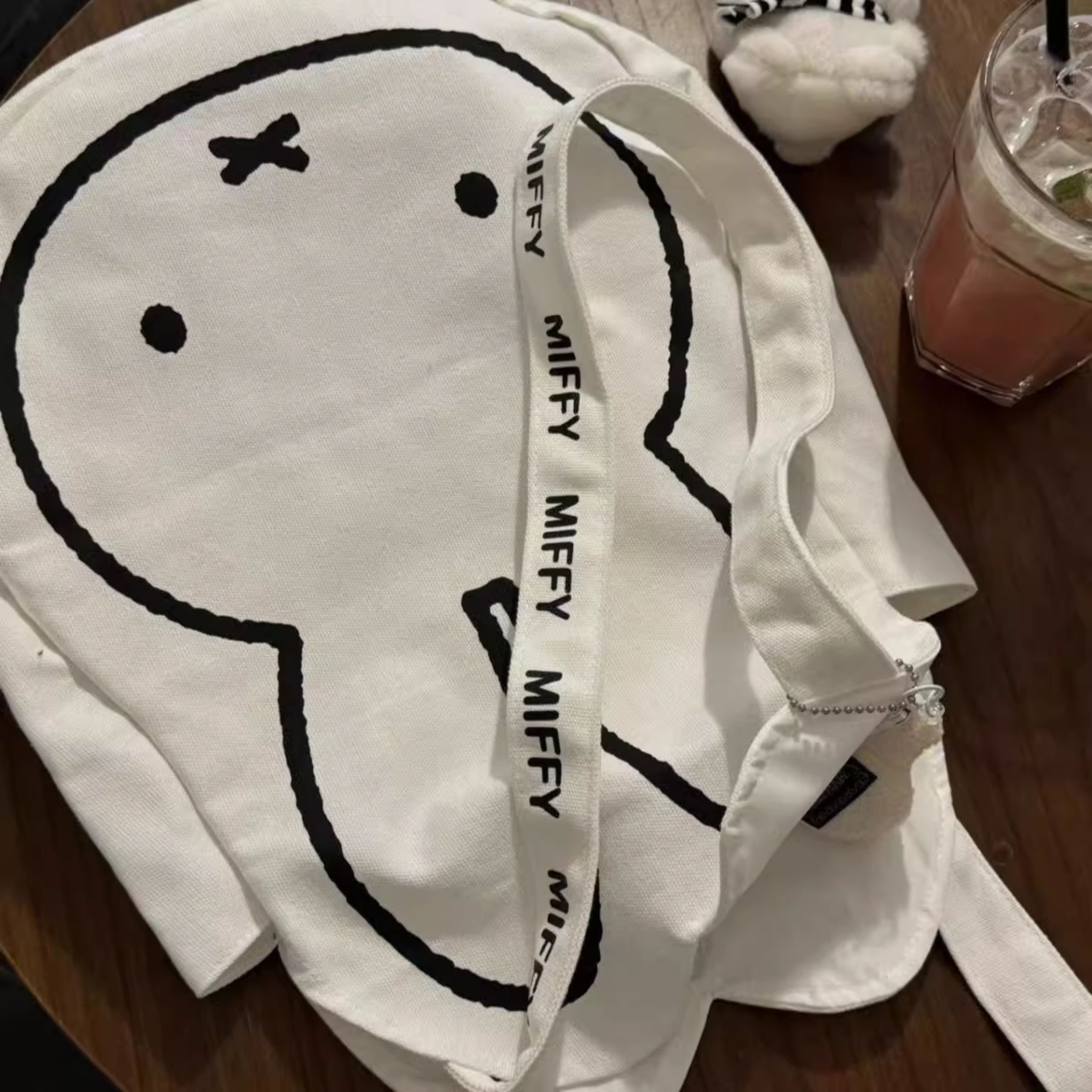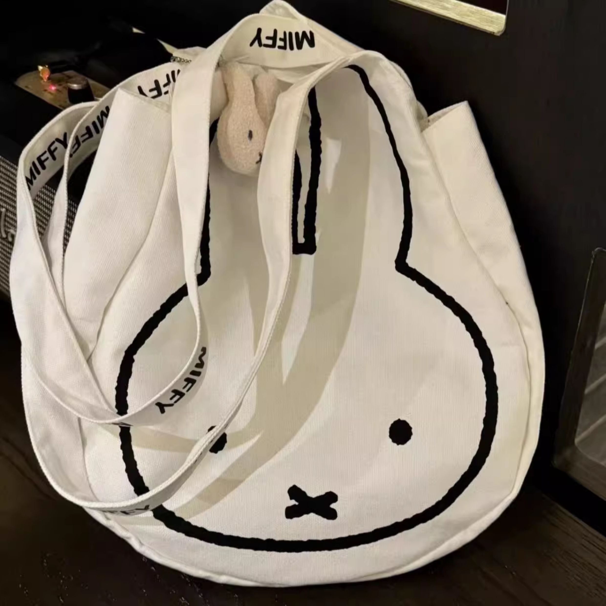 2025 New Cute Miffy Canvas Bag, Versatile Summer Shoulder Bag for Women, Large Capacity Printed Commuter Tote Bag