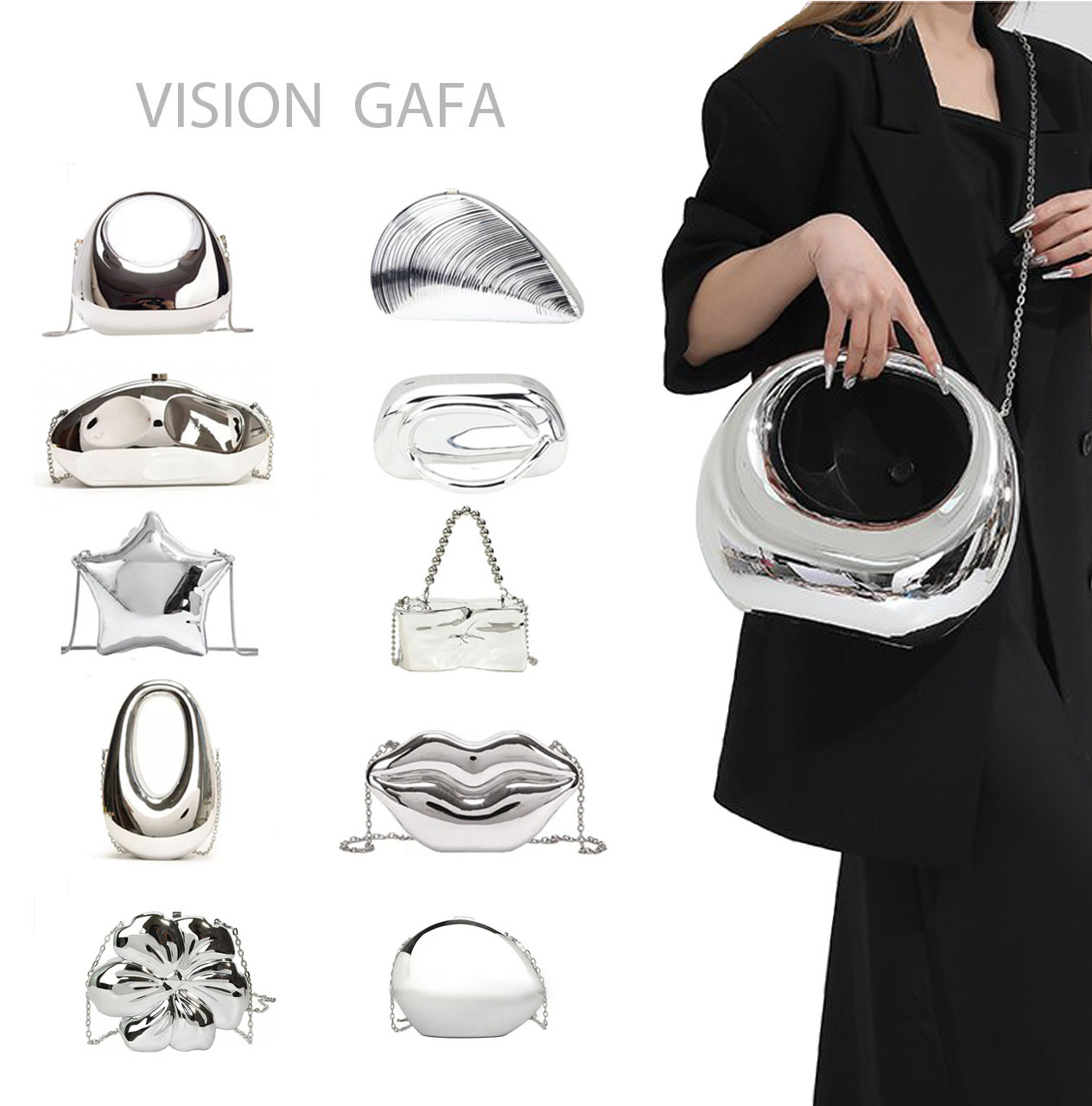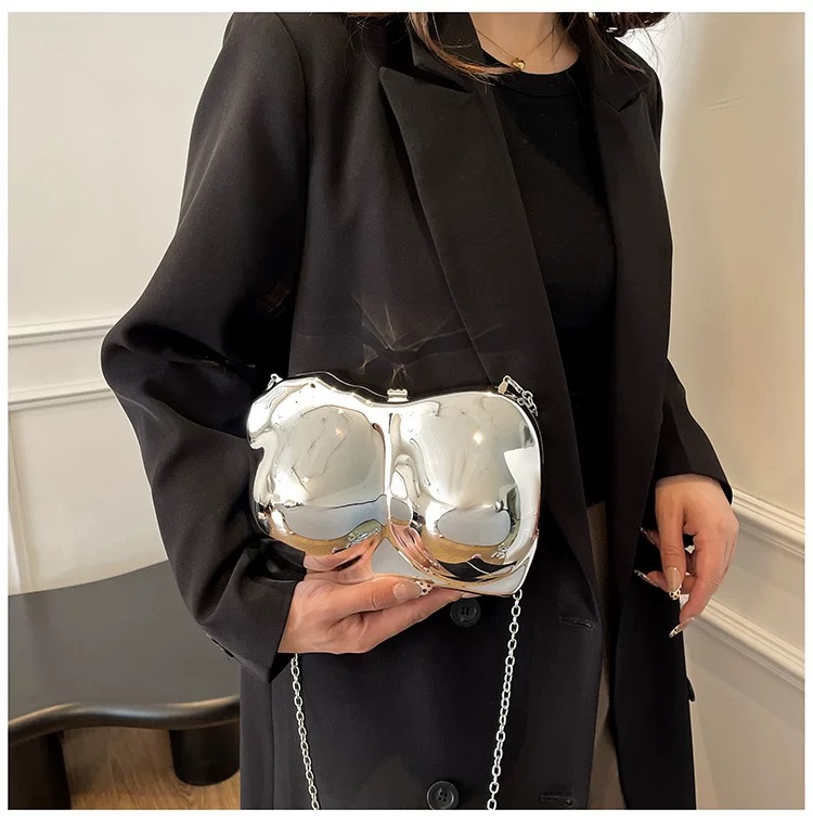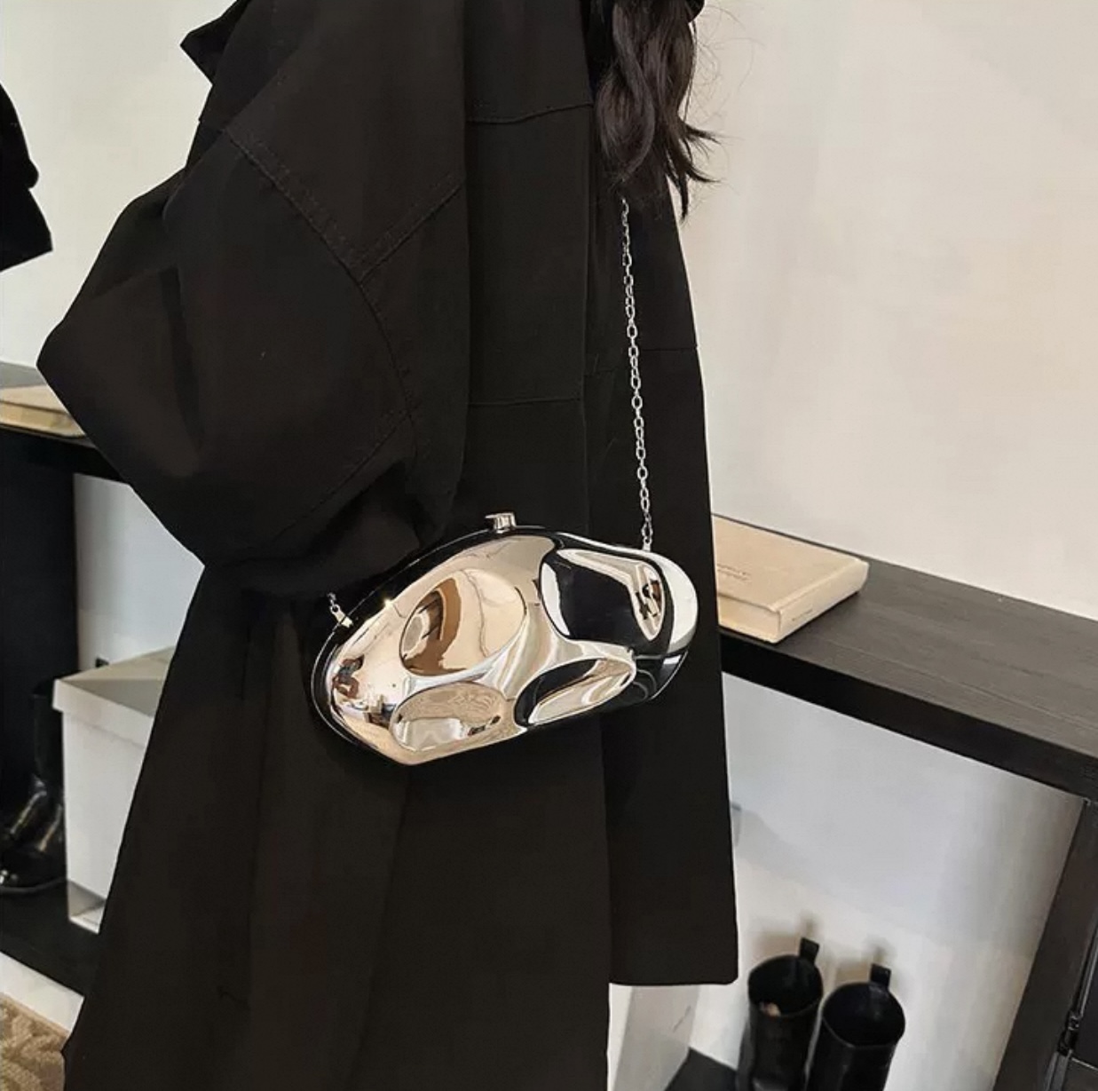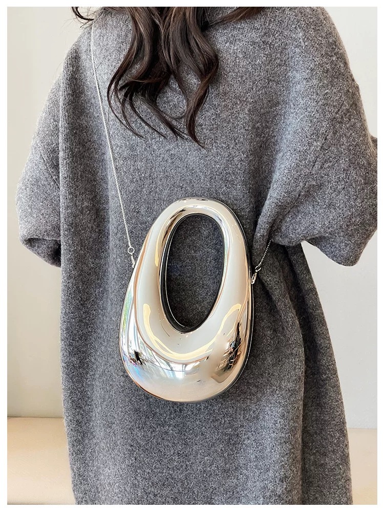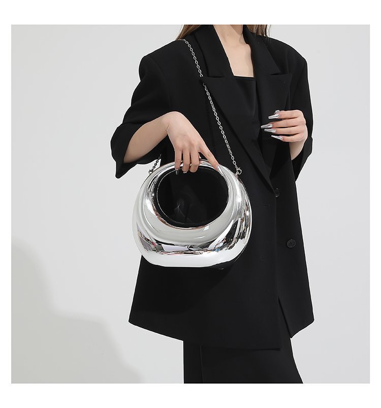 New Foreign Trade Clutch Bag for Storing Mobile Phones, Lipstick, and Keys, Silver Metal, Birthday Gift-Like, Portable Crossbody Bag